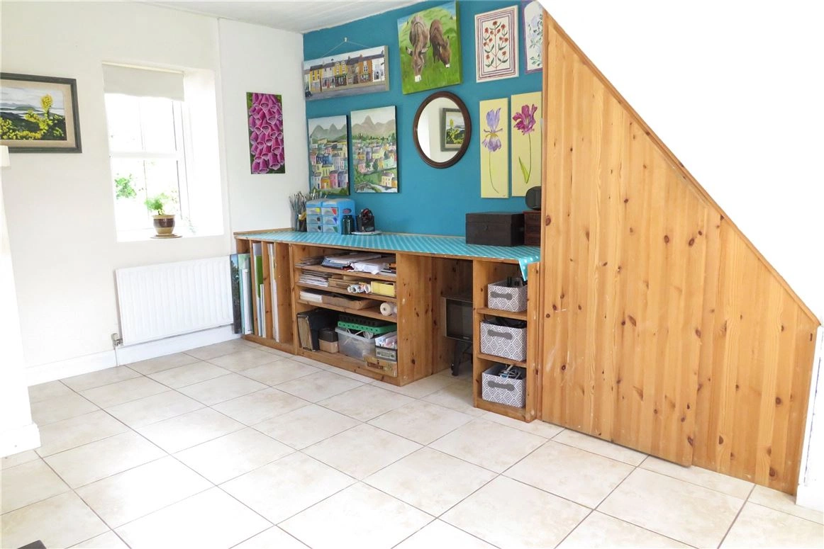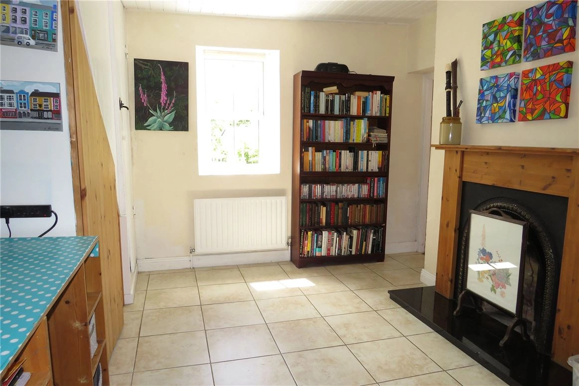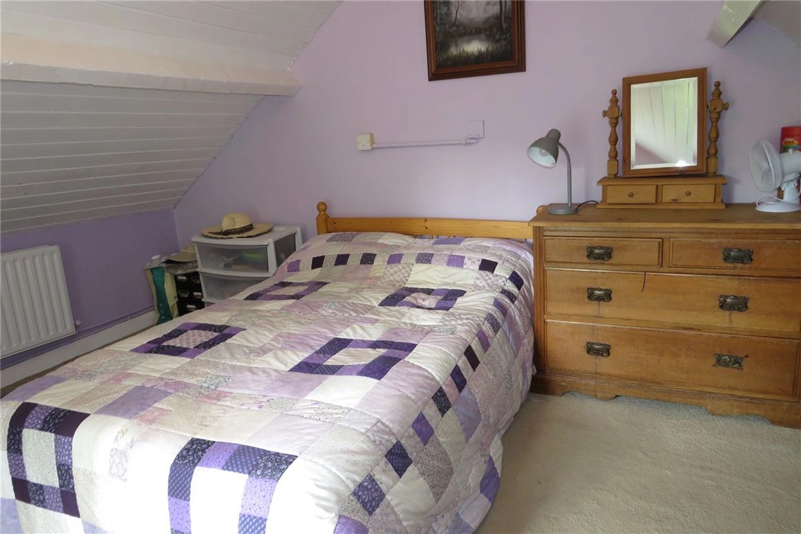 The main family bathroom consists of vinyl flooring, a bath with an electric shower, semi-tiled walls and a hot press. A second bedroom can be found upstairs.