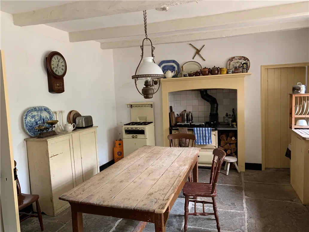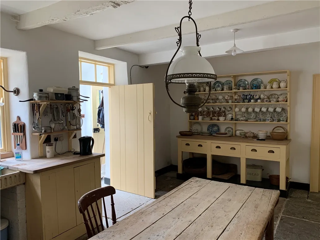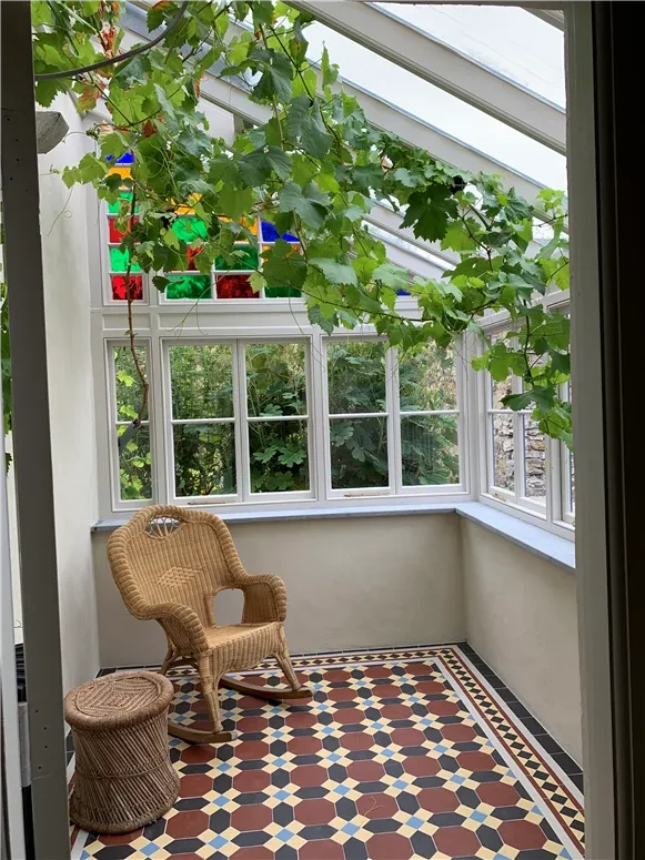 Further inside is the kitchen, a room of great character with stone-flagged flooring and a period dresser, with a pantry and larder off to one side. A door connects this room with the rear porch and courtyard whilst a new timber conservatory with ornate tile flooring overlooks the rear gardens.