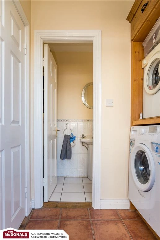 A utility room is conveniently located off the kitchen, with a washing machine, dryer and downstairs bathroom.