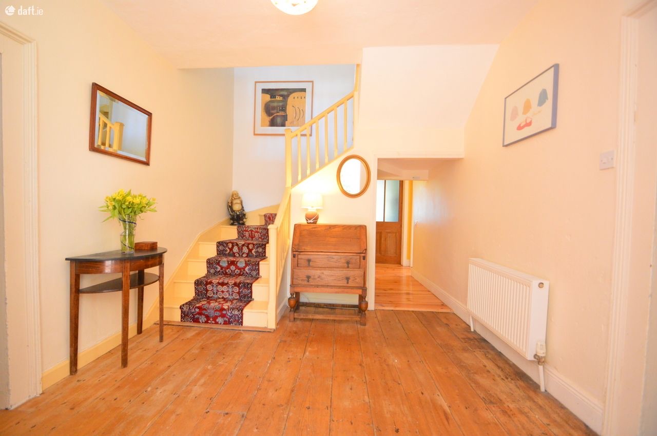 You enter the home into a large porch with original tiles and windows that look out onto the garden. This leads to a generous entrance hall with original wooden flooring. On either side of this space are two large reception rooms – a living room and a dining room, both with original features such as fireplaces, sash windows, and picture rails.