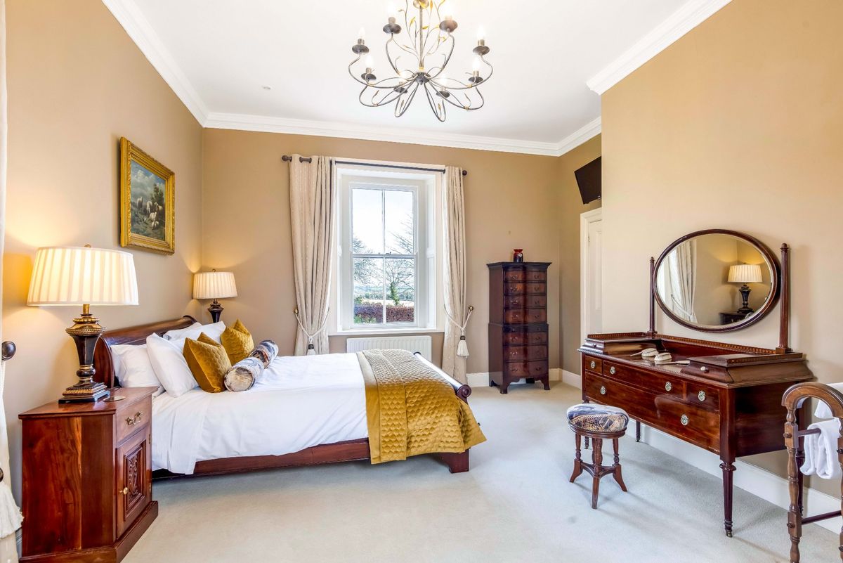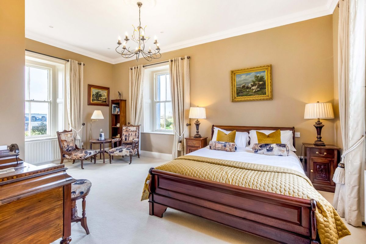 Outside, the 9 acres of grounds have been beautifully maintained, and comprise mature, landscaped gardens, a greenhouse, a man-made lake, a lawn tennis court, as well as paddocks.