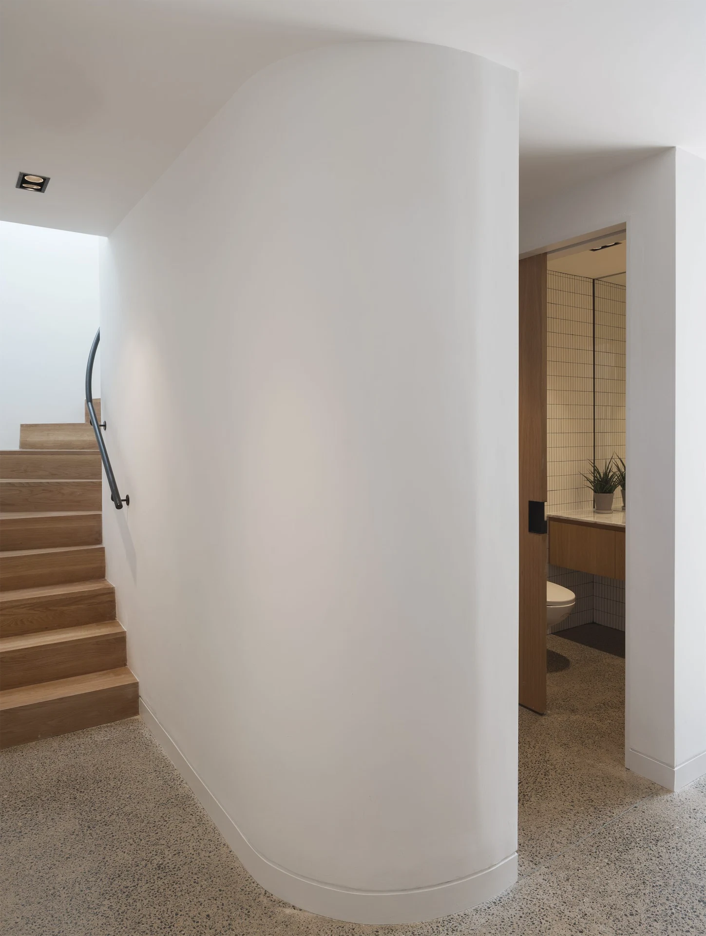 A curved wall in the lower hall invites you up the oak staircase, another feature Lucy particularly loves. “We like a curve,” she laughs. “Anywhere we can get a curve in, we will.” The decision to move the staircase to the centre of the house opened up the first floor and allowed for a third bedroom, a huge coup in terms of space. “I wanted to create a house that represented my architecture and interior style, which leans towards bright, sunny and minimal aesthetics,” notes Lucy.