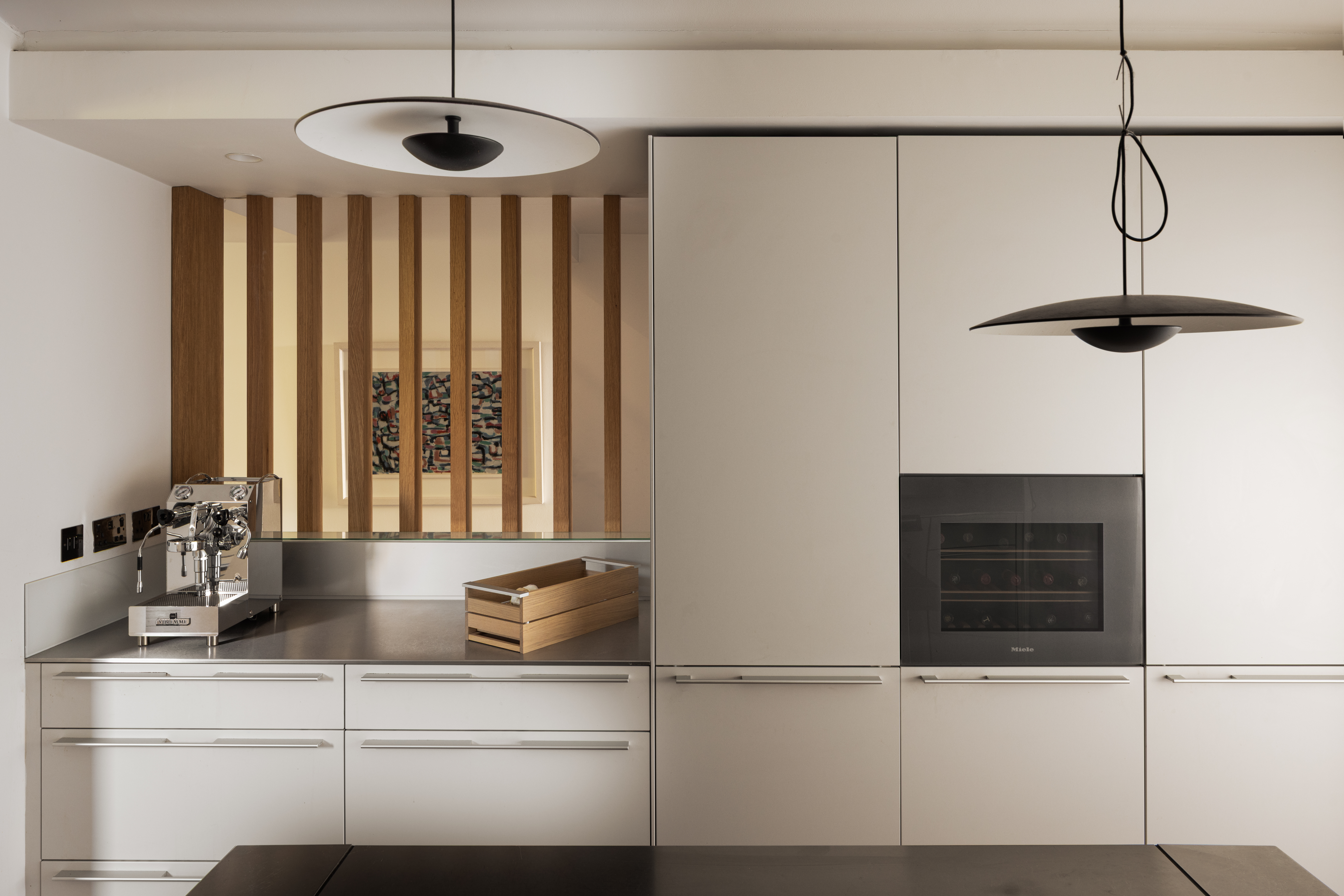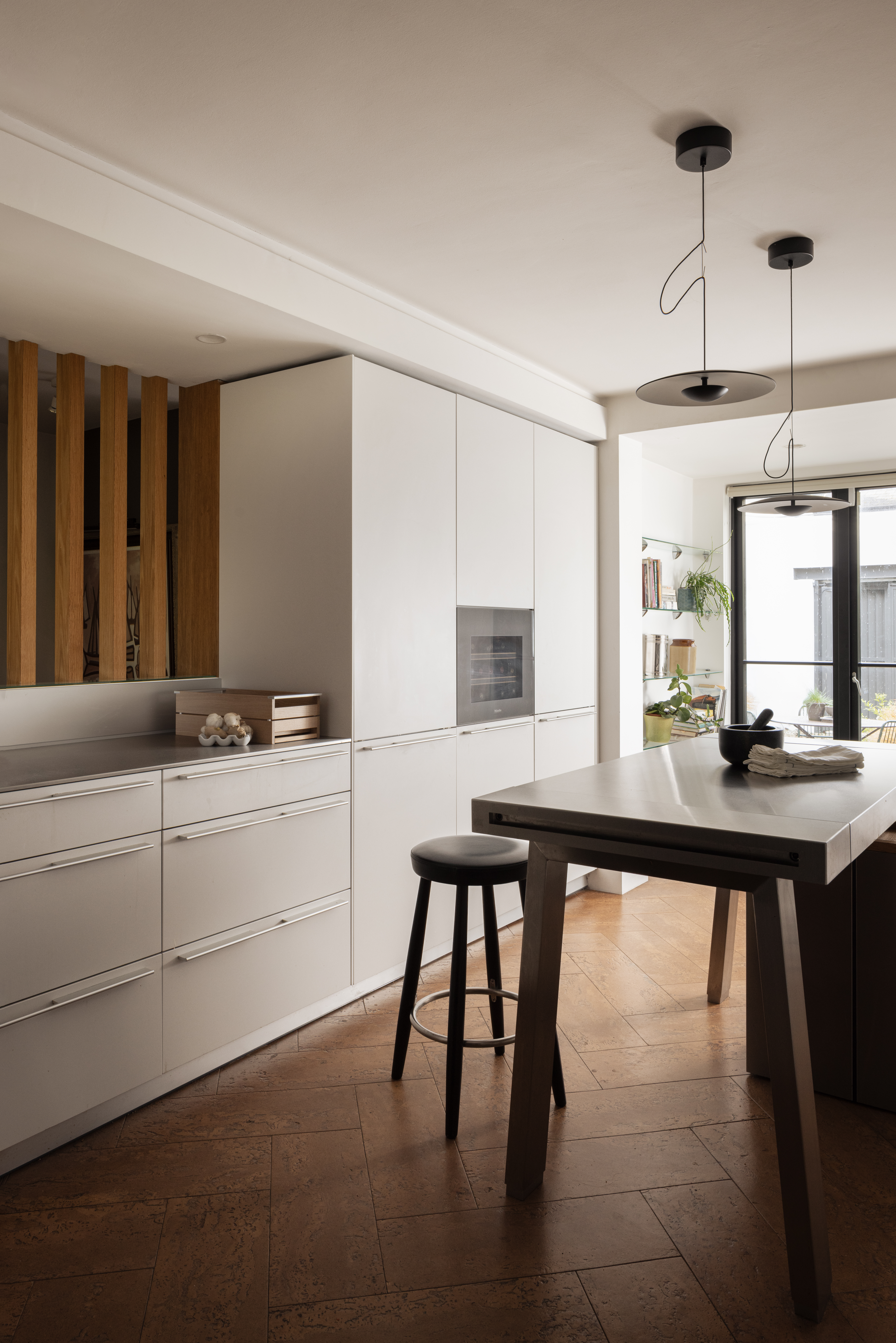Notable details in this home include how the structural changes feel natural to the space. “The lowered ceiling plane in the dining area is a quiet but precise piece of problem-solving, concealing what needs to be hidden while shaping the experience of the room,” notes Garbhan.