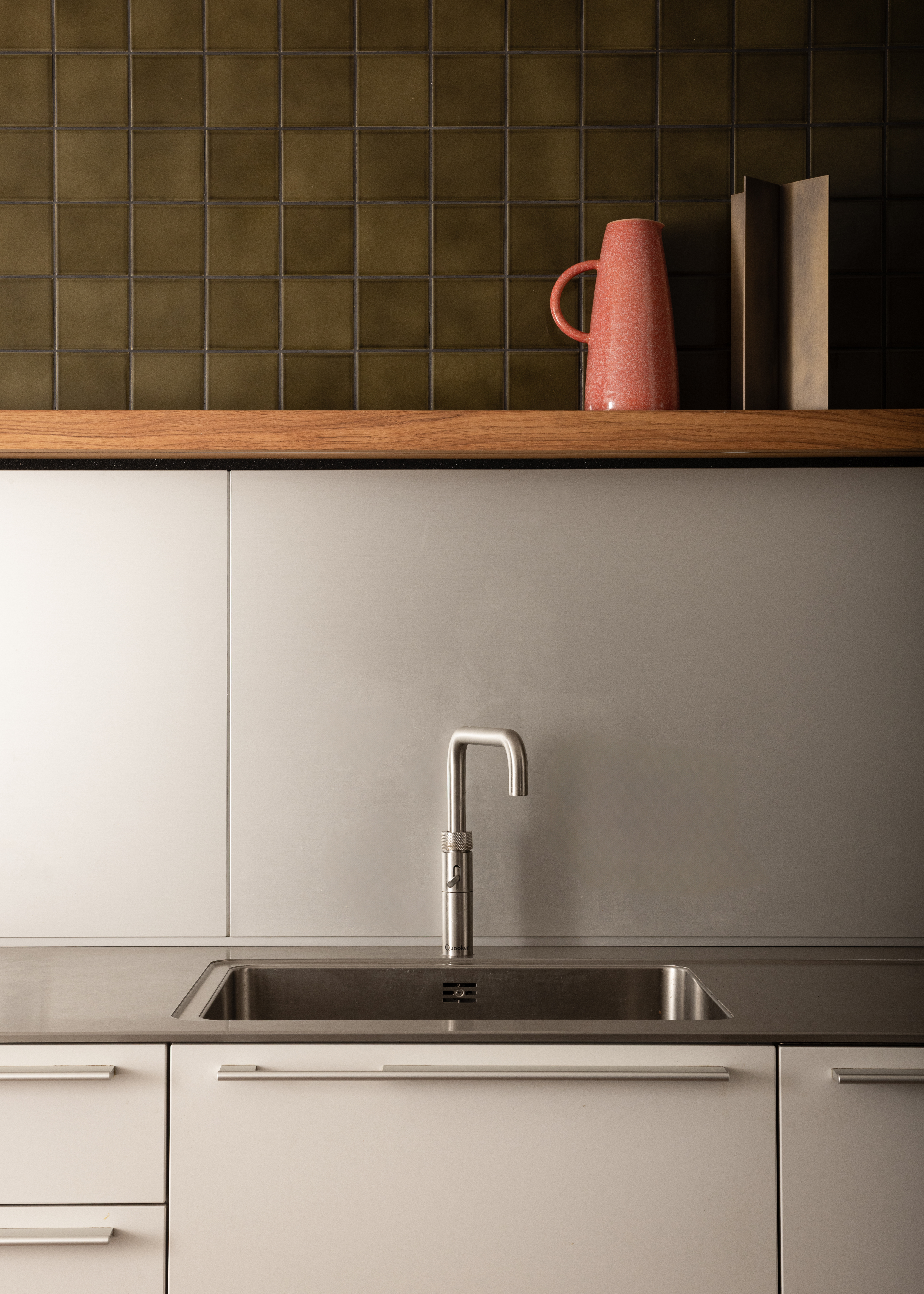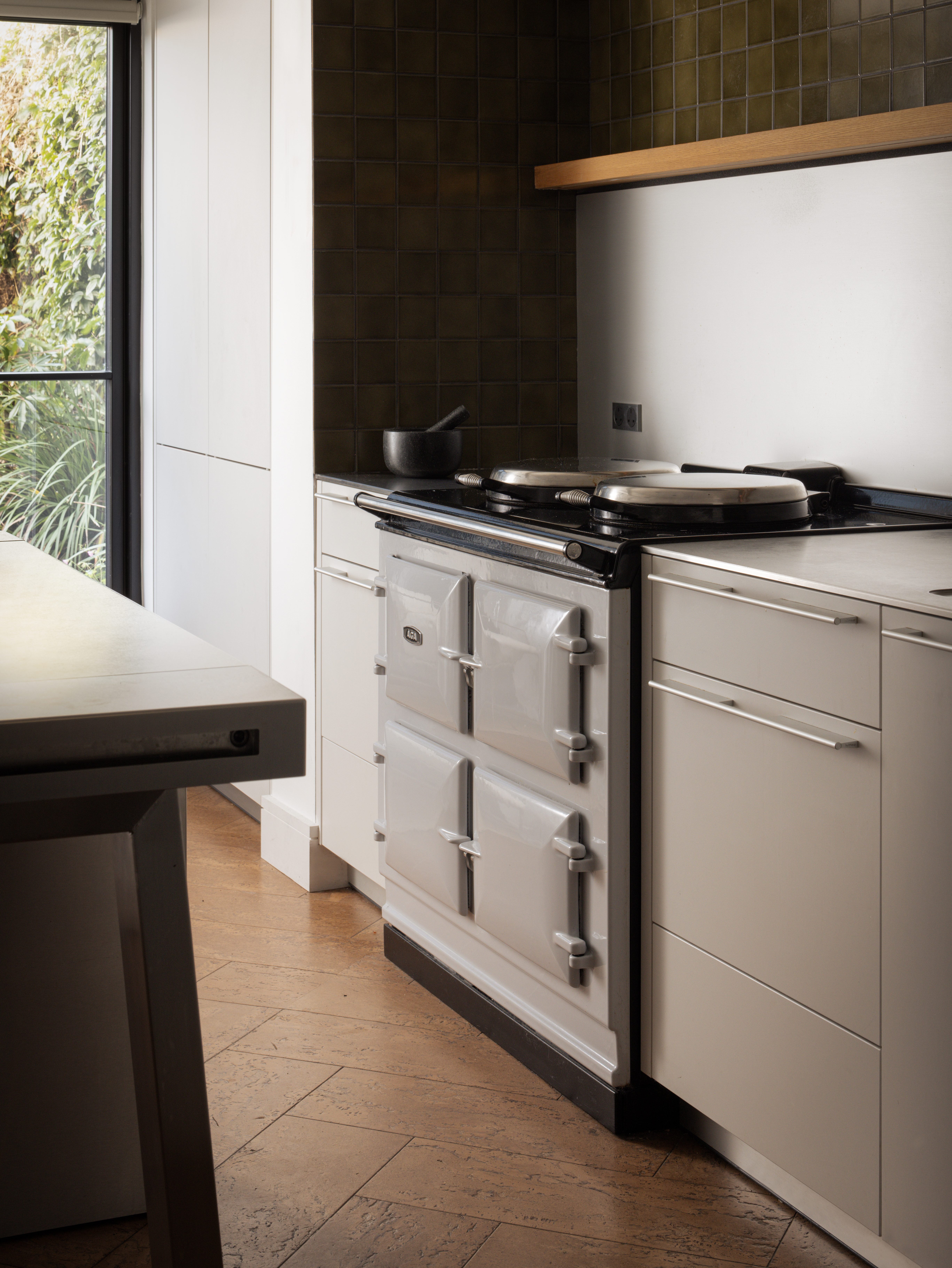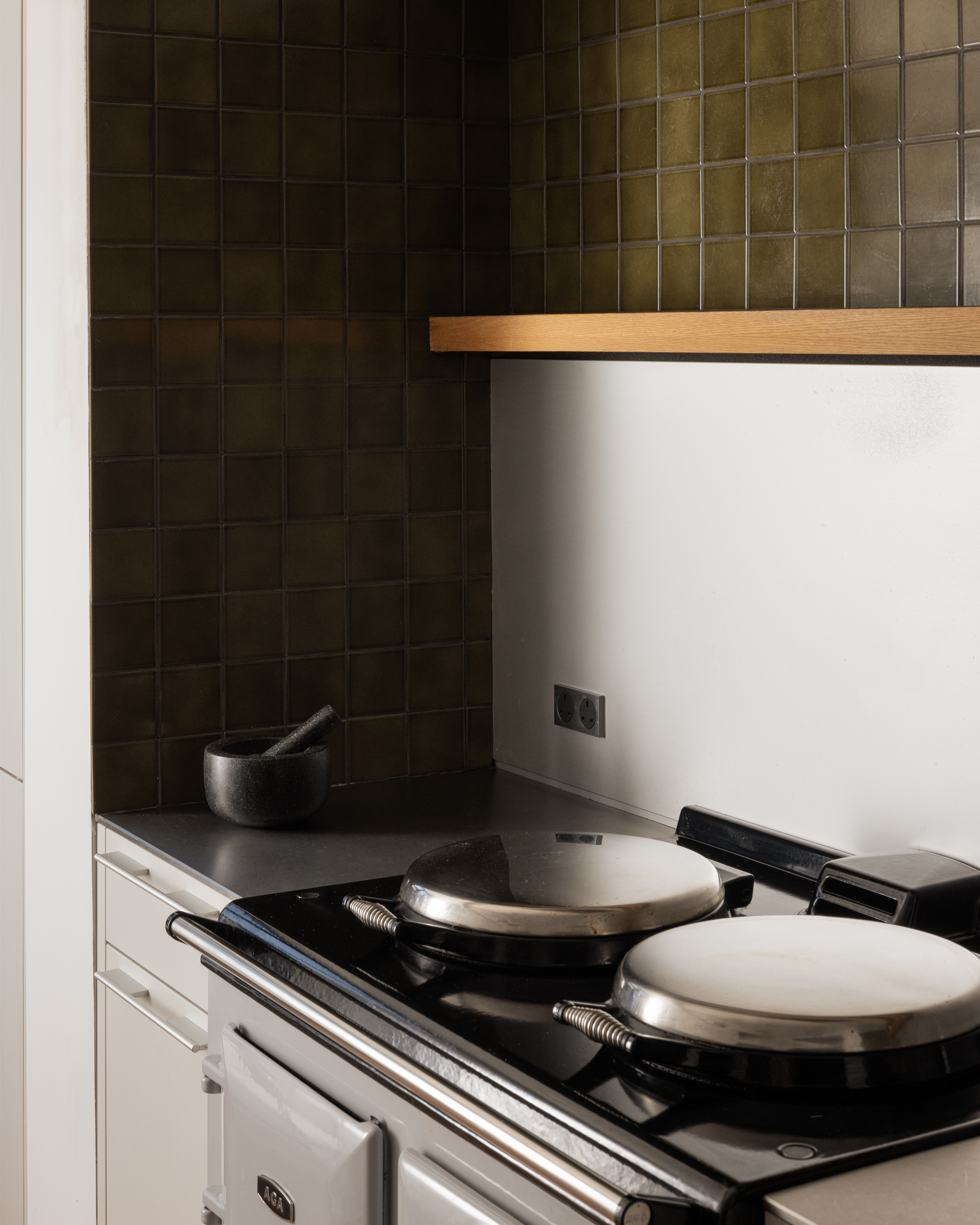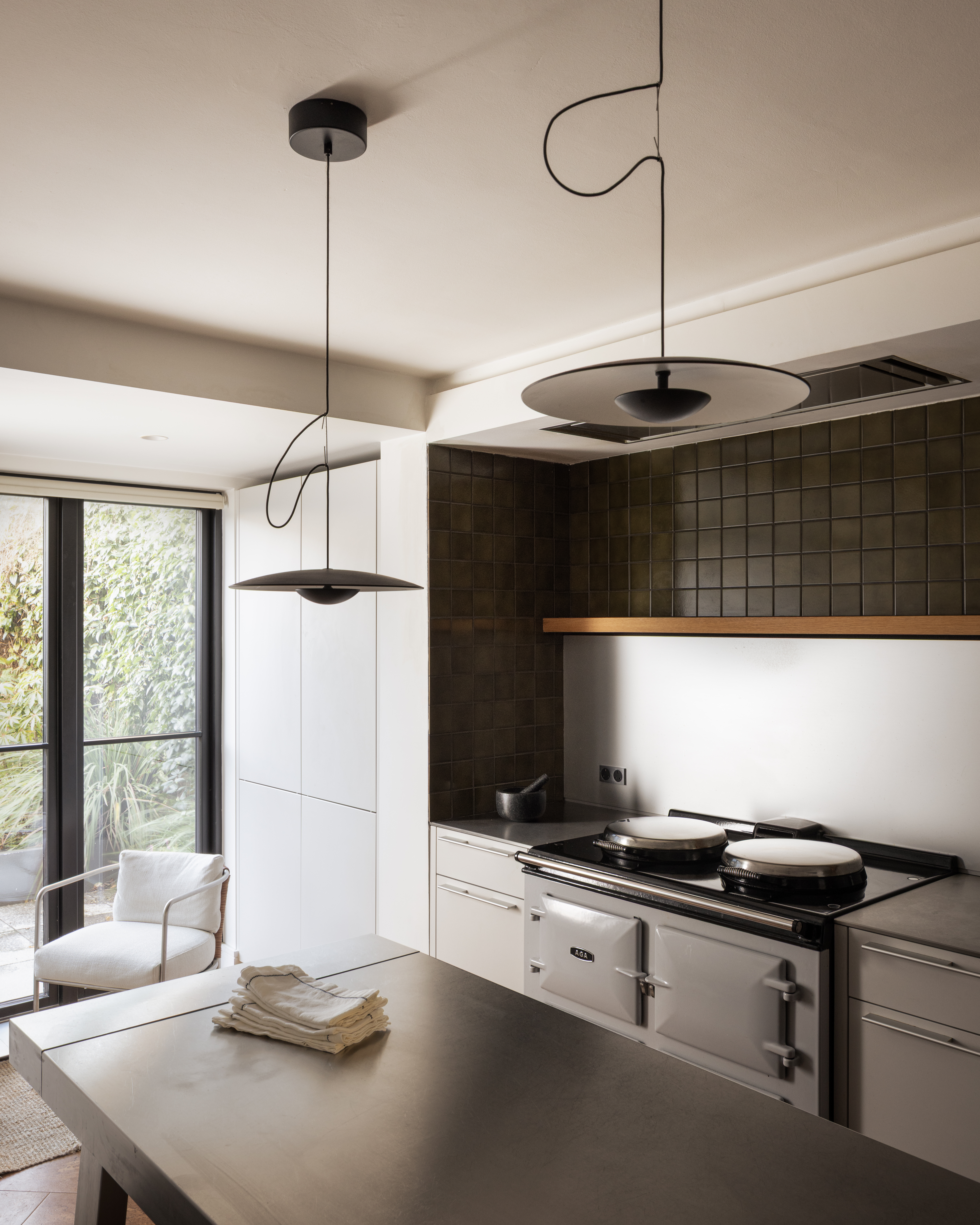 “Within the interior fit-out, the Bulthaup kitchen’s Kaolin finish speaks quietly but confidently, holding its own beside the drama of the Aga without competing with it,” Richard explains. “Equally the burnished brass of the Agape tapware in the powder room is a standout moment, warm and tactile against the cool precision of the Inax tiles and stone. The success of the detailing lies in its collective discipline. Nothing is overstated. Every choice, architectural and interior, earns its place.”