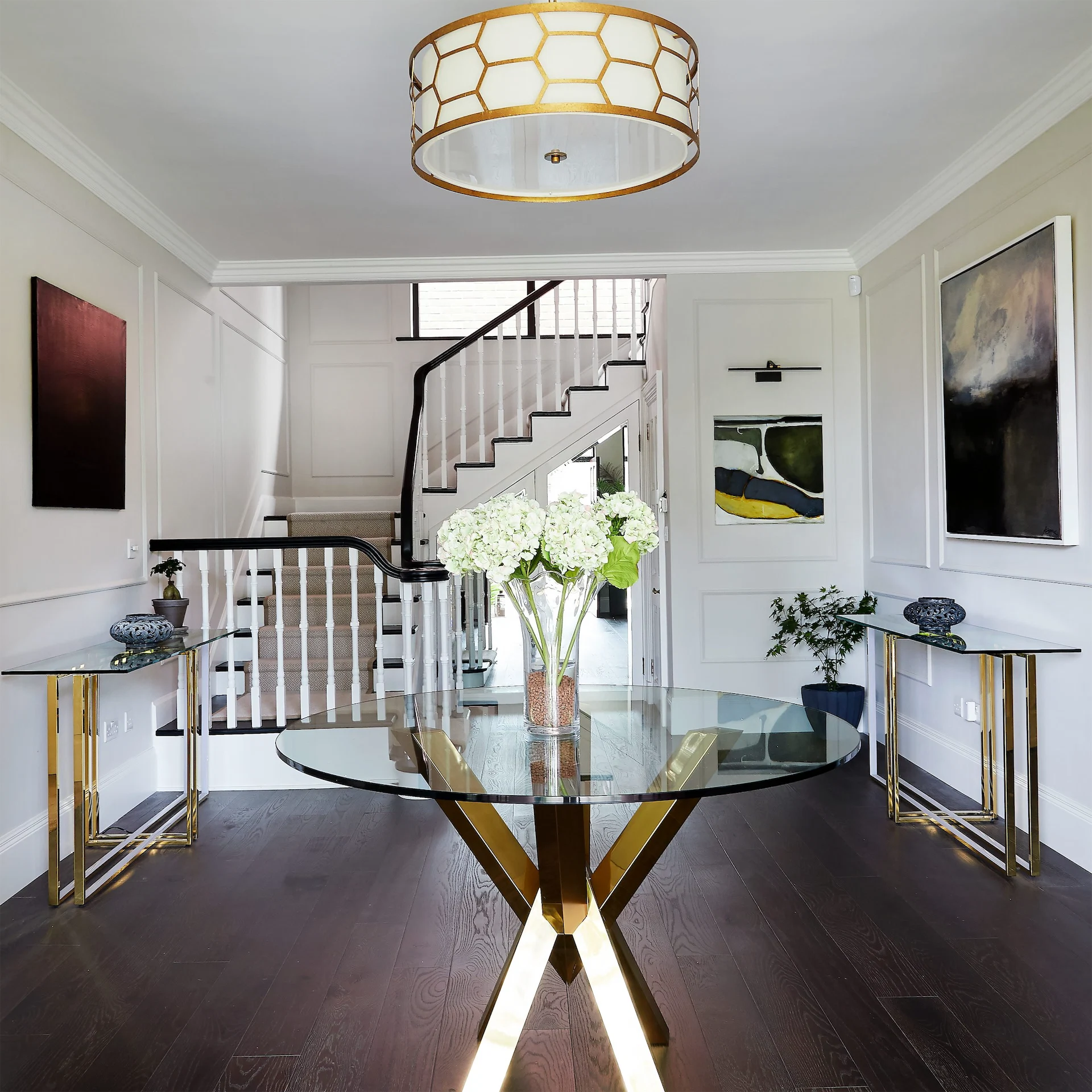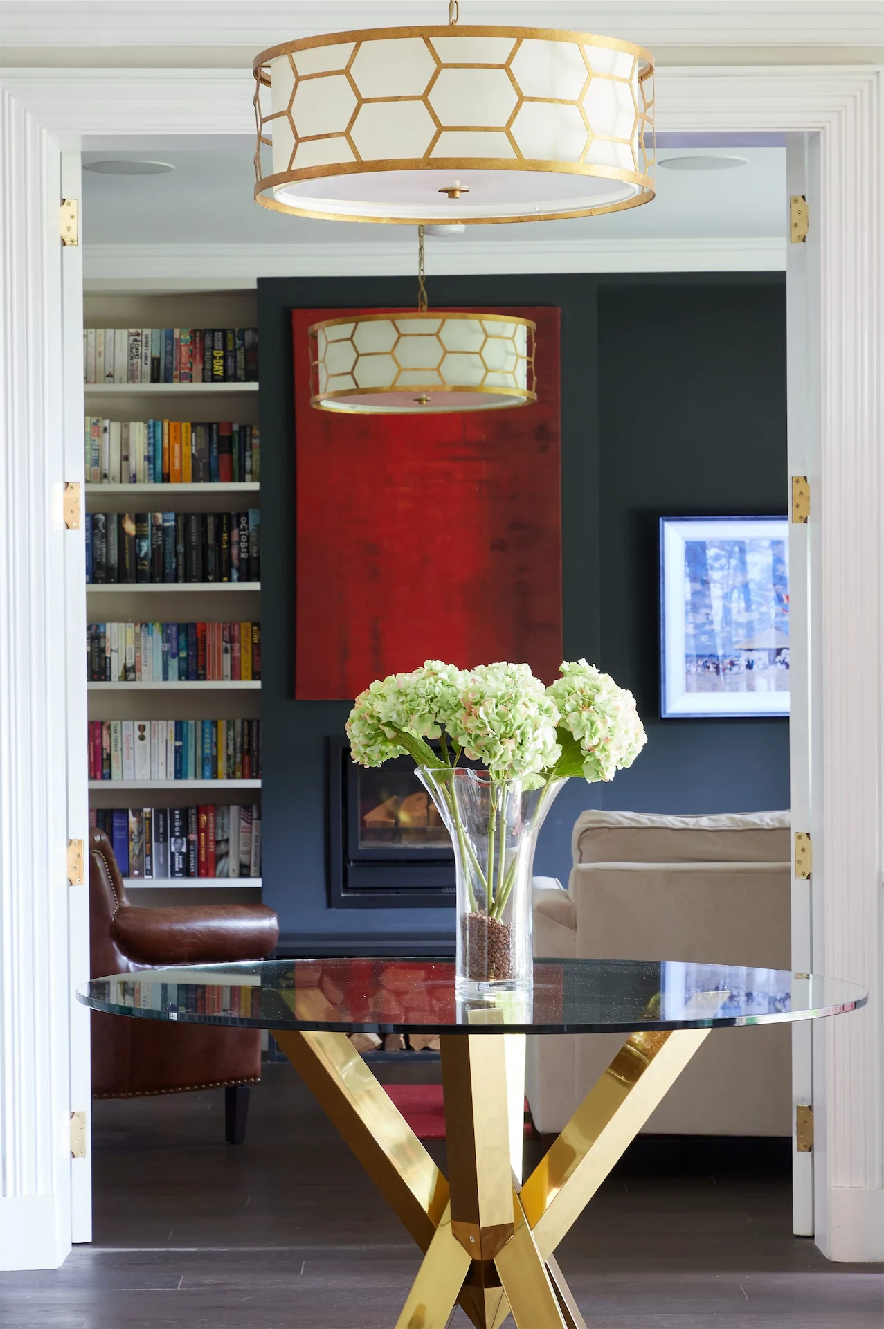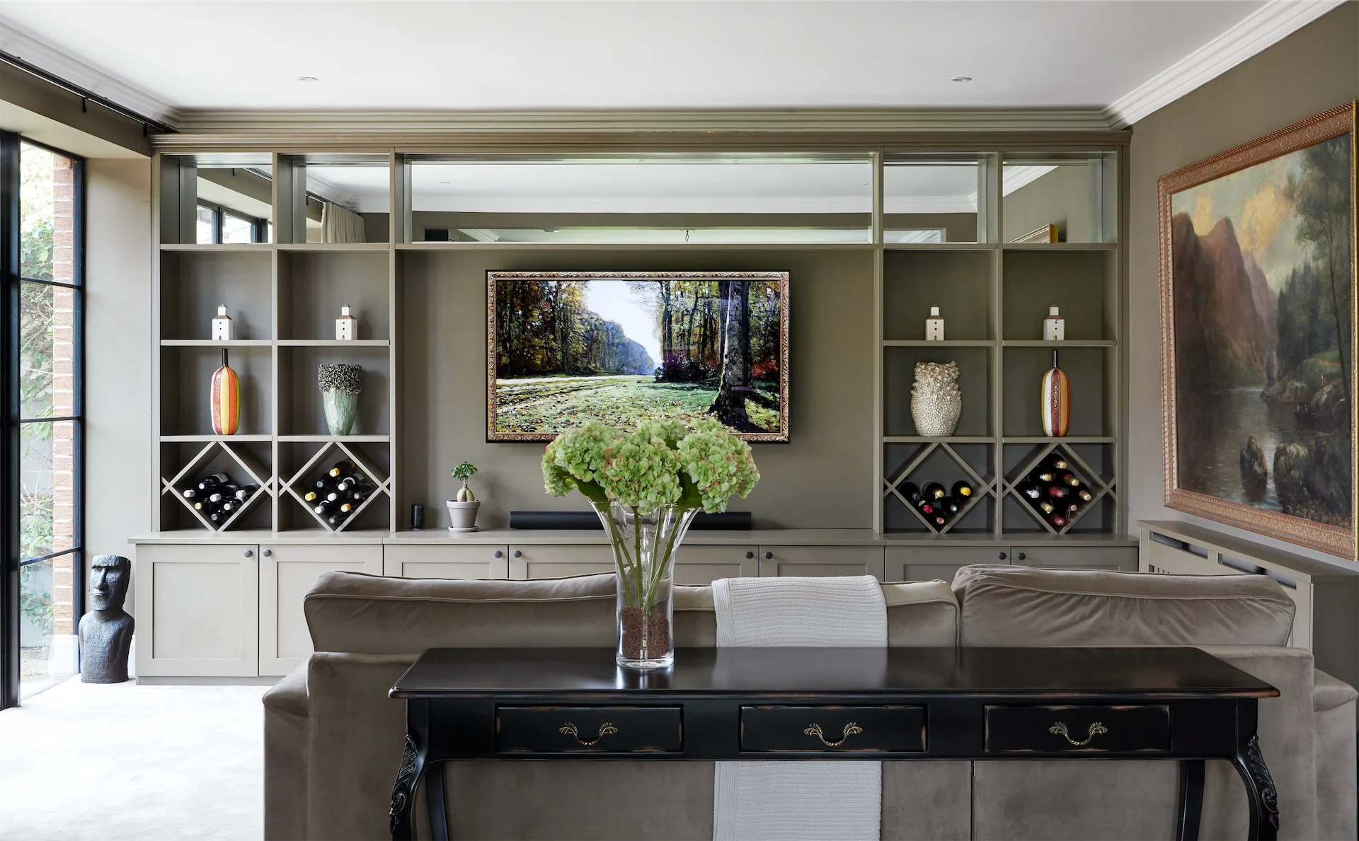 The owners also have an impressive art collection that was incorporated into the design. “The wonderful collection of artwork deserved to be given pride of place,” Caroline says, “so we created an almost gallery-like space in the entrance hallway to facilitate the enjoyment of the paintings. The lack of natural light is perfect for the preservation of the paintings and the scale of the space allows one to fully appreciate each individual piece. It is a beautiful welcome to the home: impressive without being showy and very special and unique to the family.”