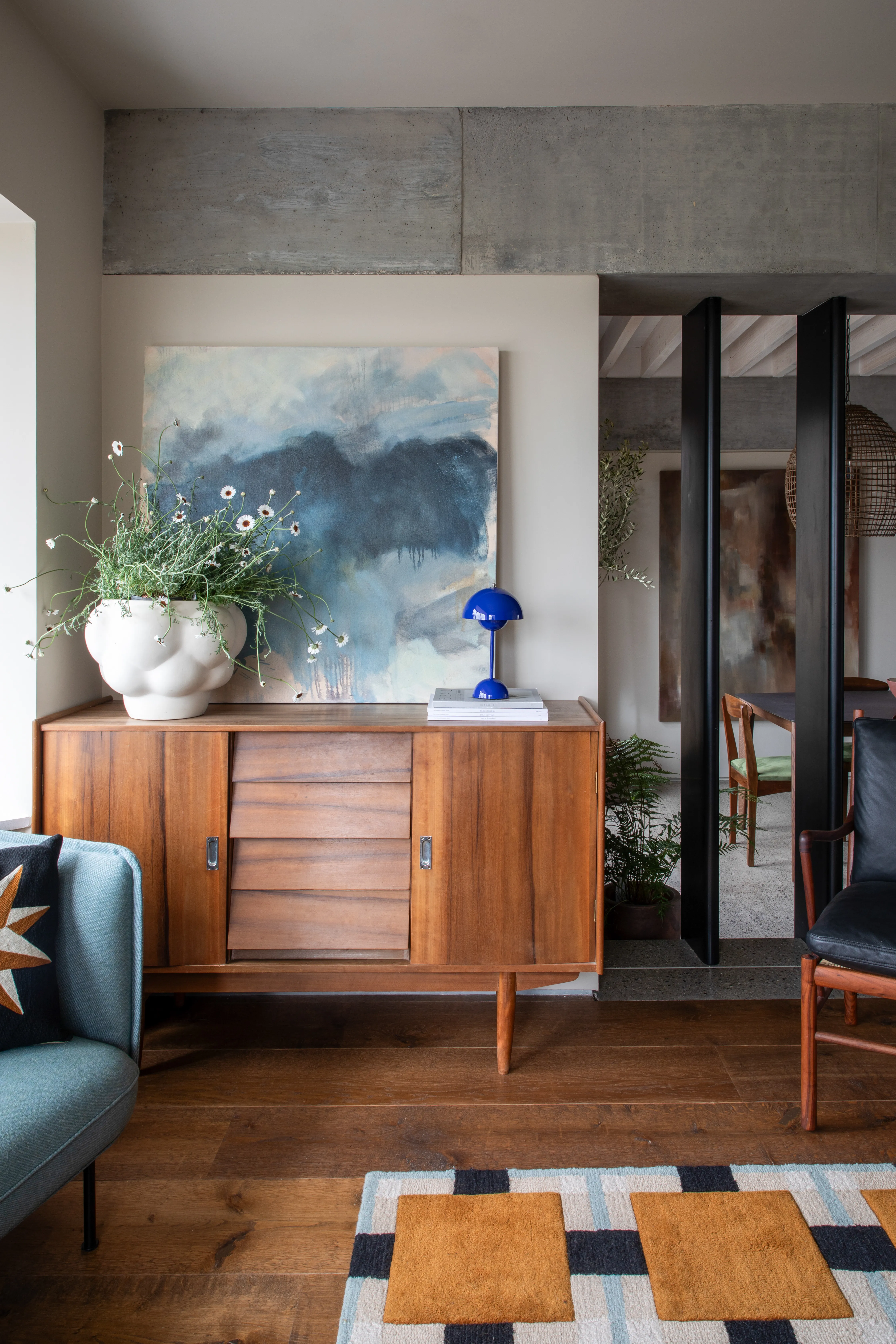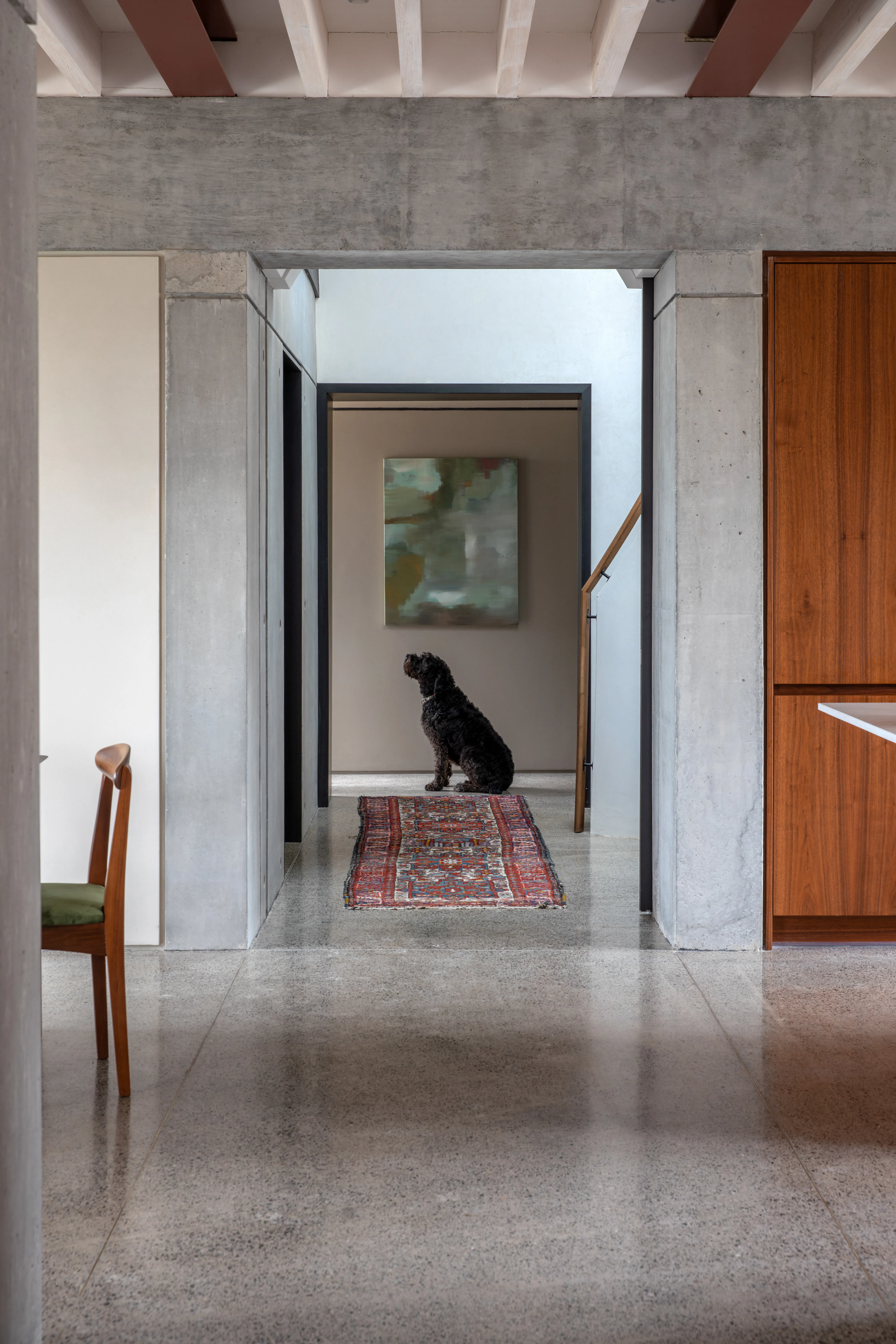 Throughout the home, a careful curation of old and new tells the family’s unique story, which is indicative of Caroline’s thoughtful and intuitive approach. A rug in the hallway, belonging to the owner’s grandparents, anchors the space with history, as do the original dining chairs, which were simply reupholstered in green fabric.