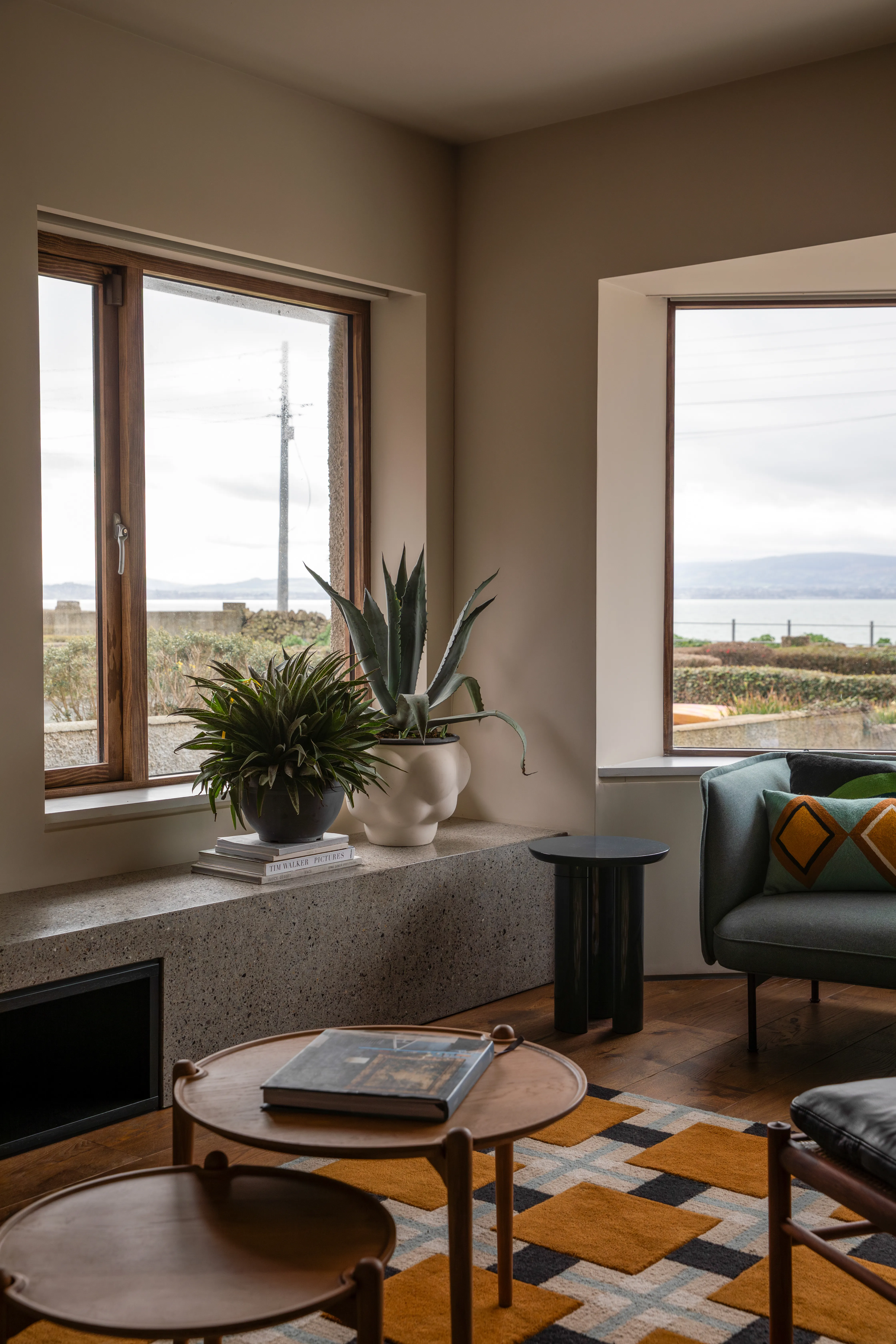 “In winter, the sea can smash against the rocks across the road, the clouds tumble over the mountains heading for the house, and the ships look like they’re hunkered down waiting for a break to head into the port,” explains Gareth. “It always made me think of the Bob Dylan song, ‘Shelter from the Storm’ and I wanted to create that sense in the house – that the house would provide a literal and metaphorical shelter – from weather and the outside world.”