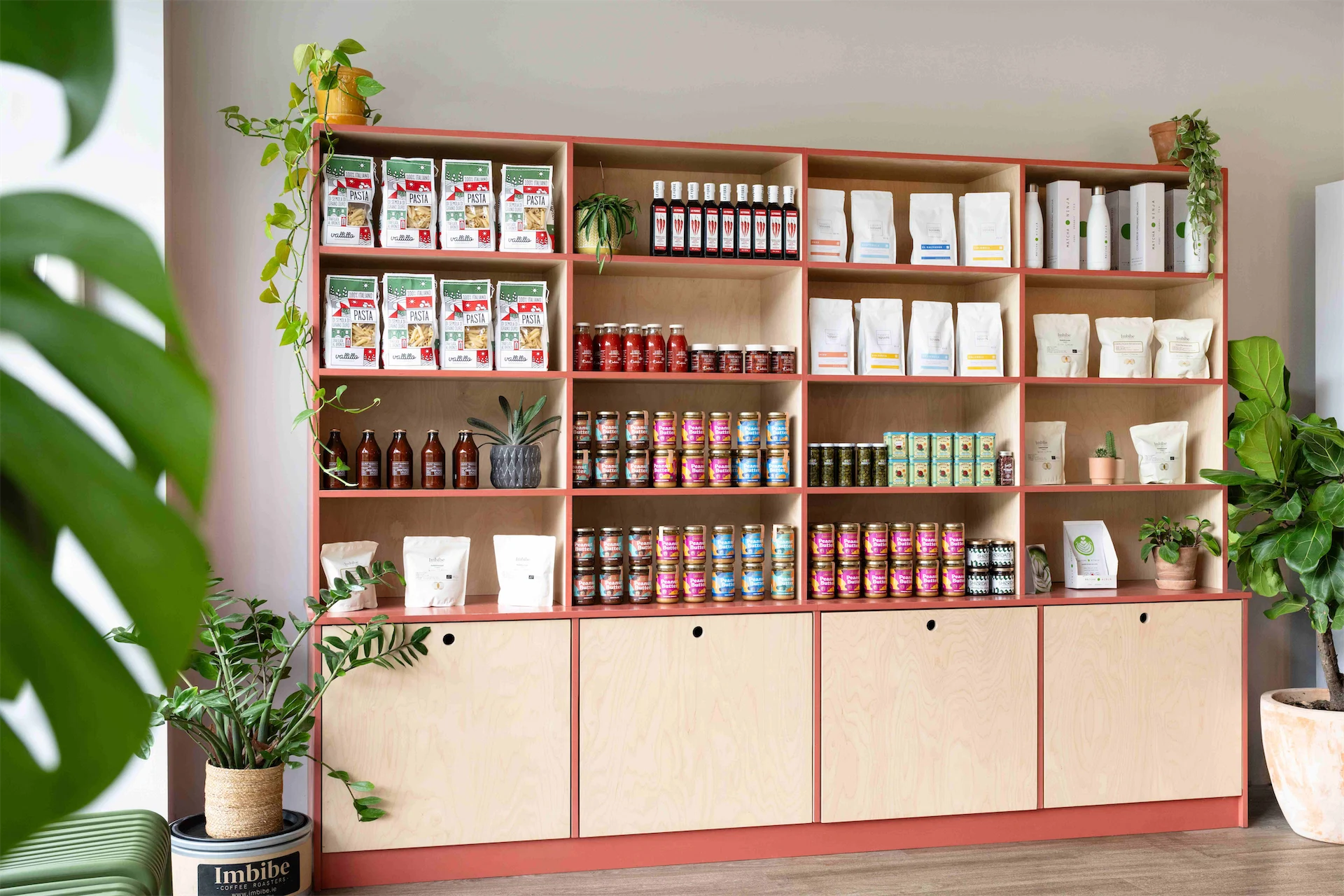 “The retail unit, display table, coffee dock, and custom high tables to optimise seating capacity and enhance space efficiency are all bespoke. Birch ply material was chosen for its warmth and durability, and we added in a pop of colour around the edges to make these features stand out,” Lisa says.