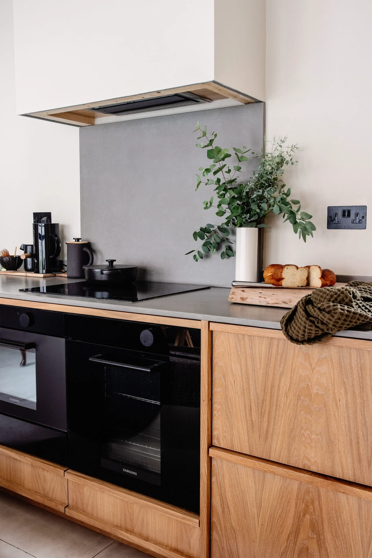 The oak units were designed by Esther and made by joiner Craig Davidson, so each one has been meticulously planned. From a drawer for trays under the oven to a fold-out spice rack, everything has a place.