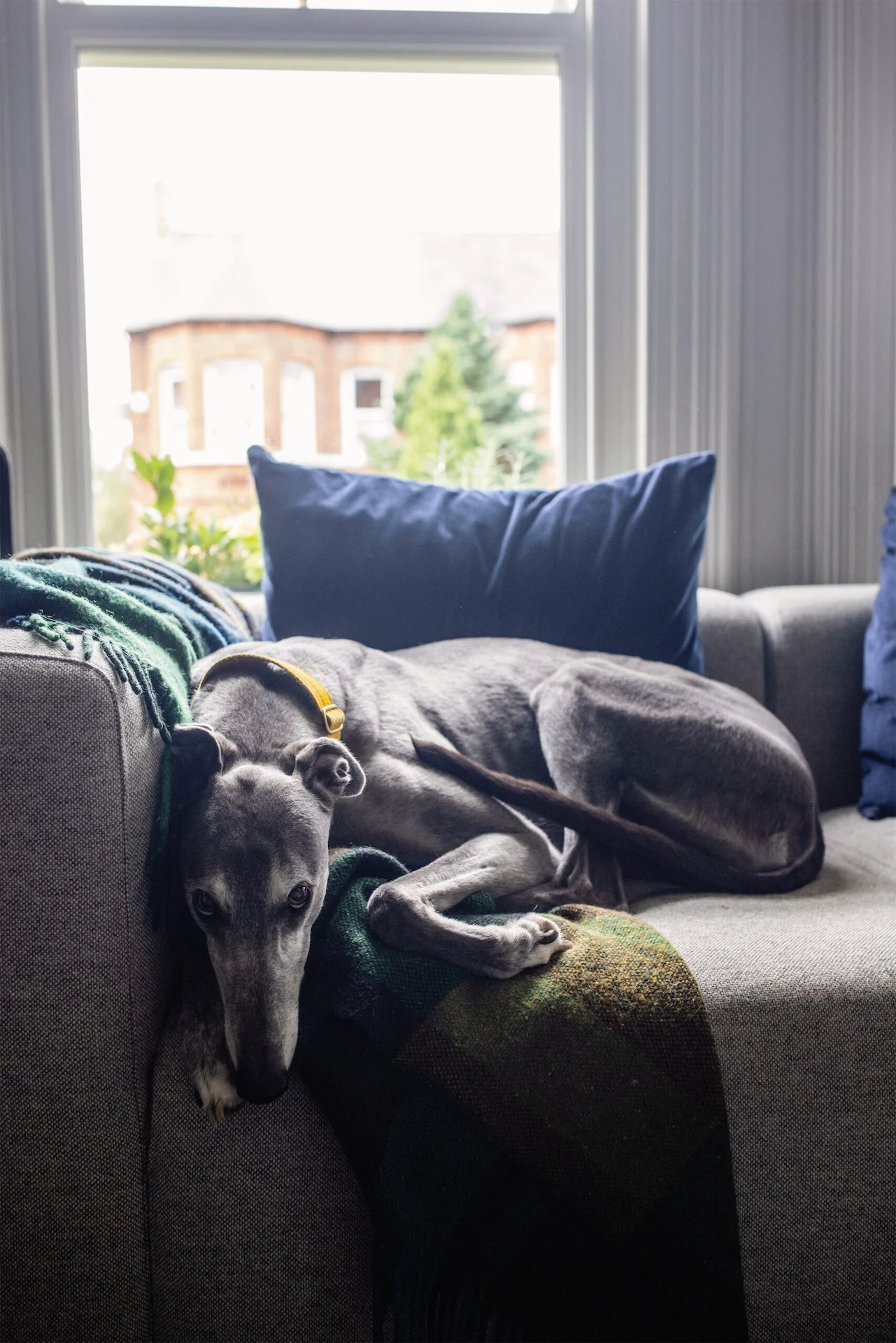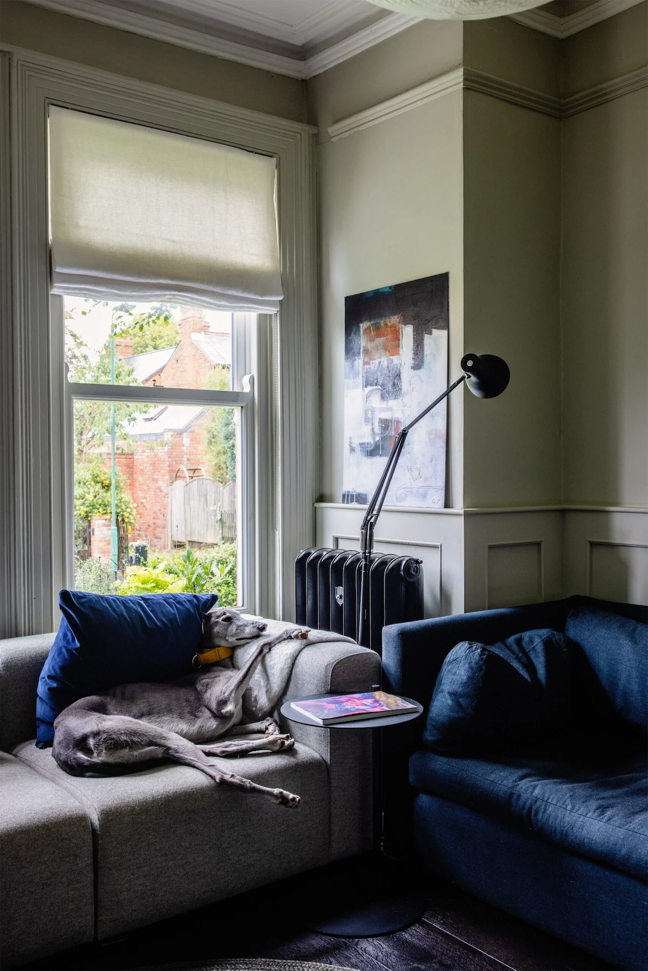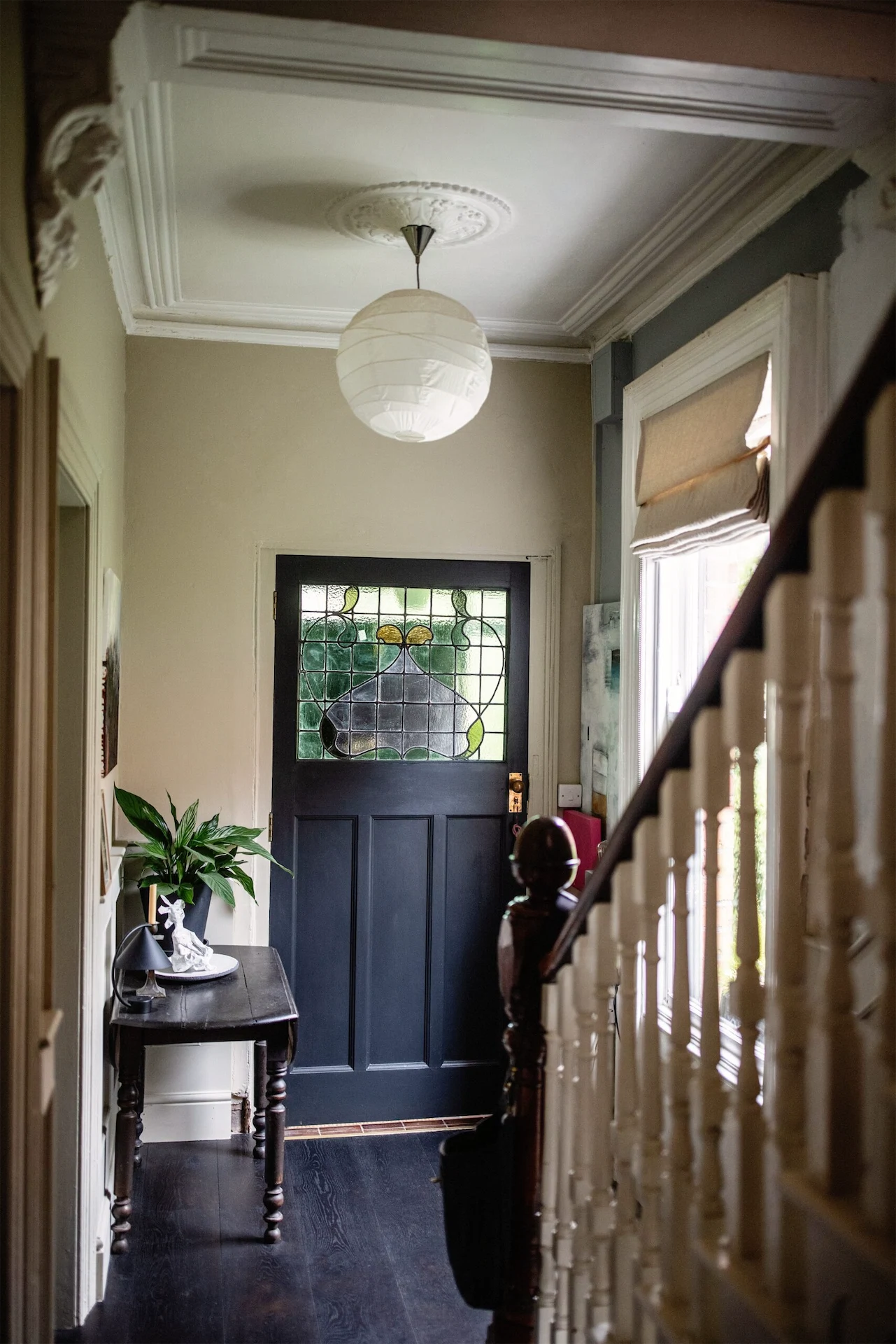 Stepping off a quiet, tree-lined street in Belfast into this Edwardian home, I was struck by how quickly I felt relaxed there, like I wanted to settle in. Undoubtedly much of this has to do with its inhabitants, Esther Haller-Clarke and Garret Faulkner. They are welcoming and interesting, full of fascinating stories, but it’s also because of the mood they have created in their home, which they share with daughter Lola, and rescue greyhound Sully.