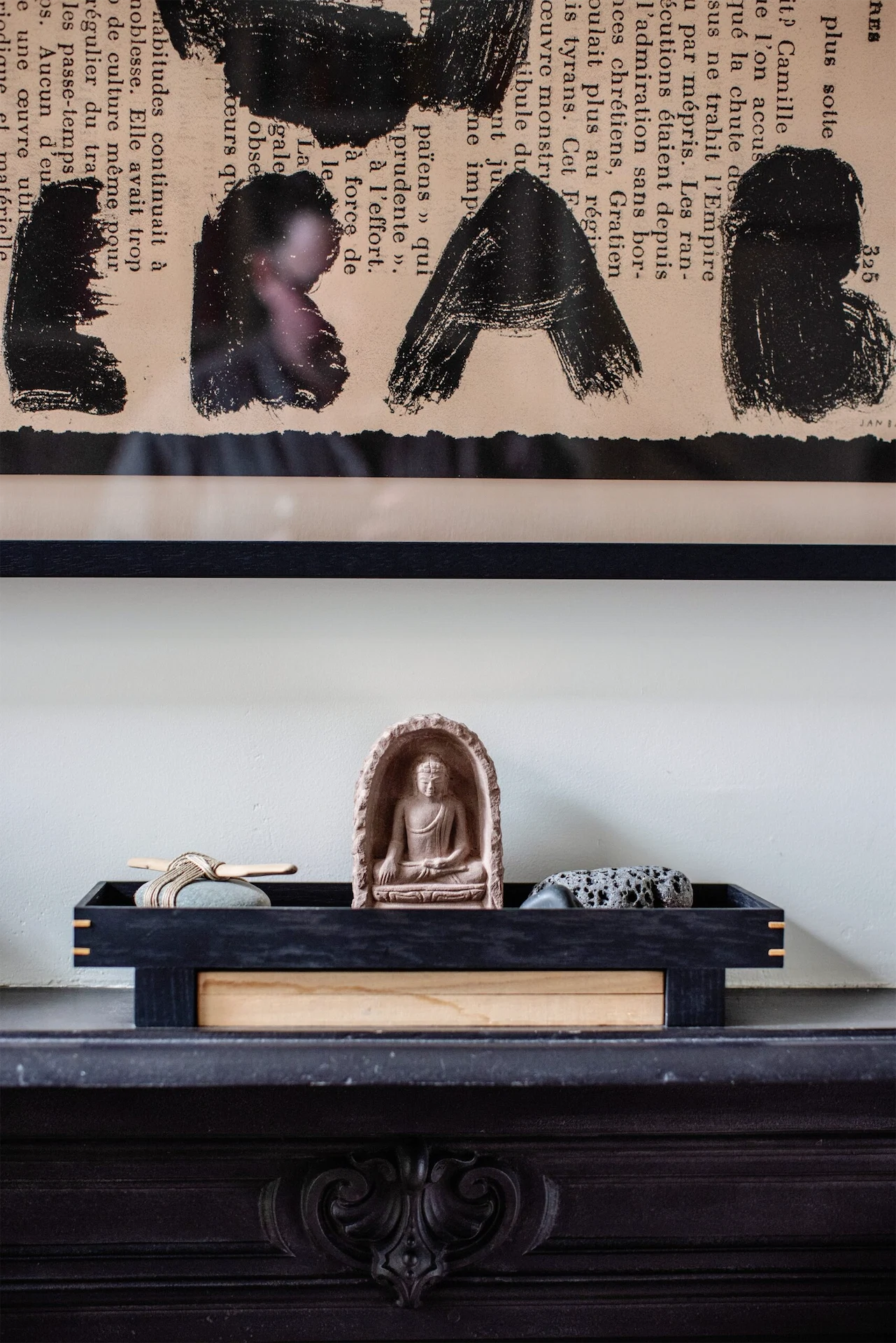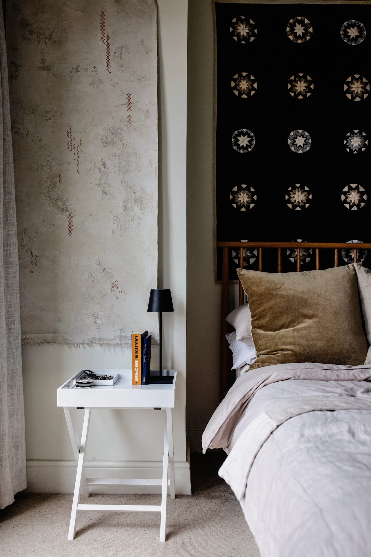 Garret is an artist, while Esther is creative director at her business Haller Clarke, a multi-disciplinary agency that focuses on art, so it’s no surprise that everything in their home is beautifully curated, but it is equally calm and inviting. “We always choose things for how they make the room feel,” Esther says, from tactile details to organic textures like oak and linen.