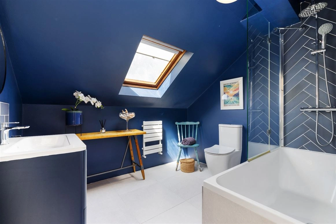 On the ground floor, there is a bedroom, offering the potential for conversion into a self-contained unit with its own entrance. Complete with plumbing, a shower room could be added to make this an independent living space. An additional reception room, currently used as both a home office and playroom. along with a contemporary guest wc complete the accommodation on this level.