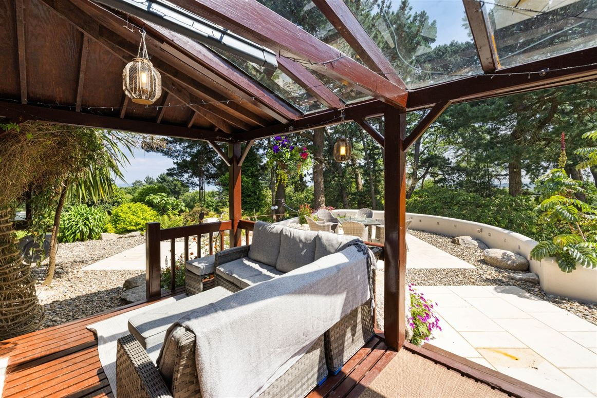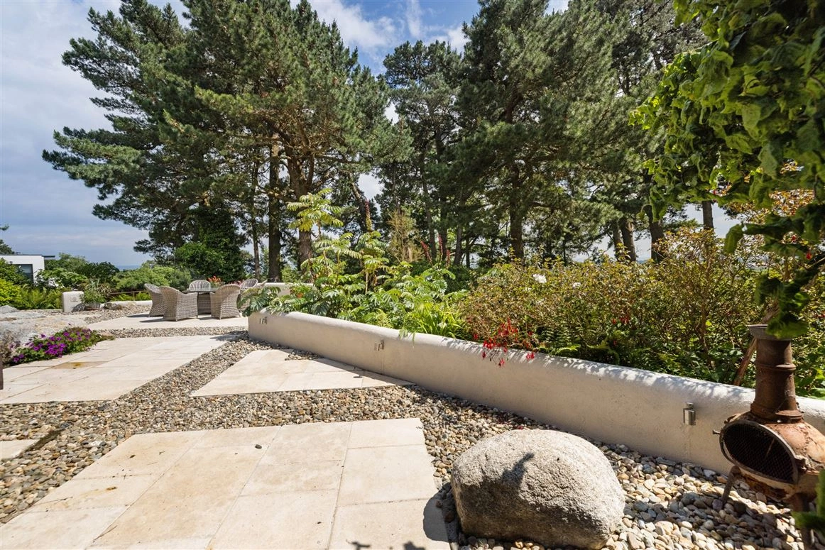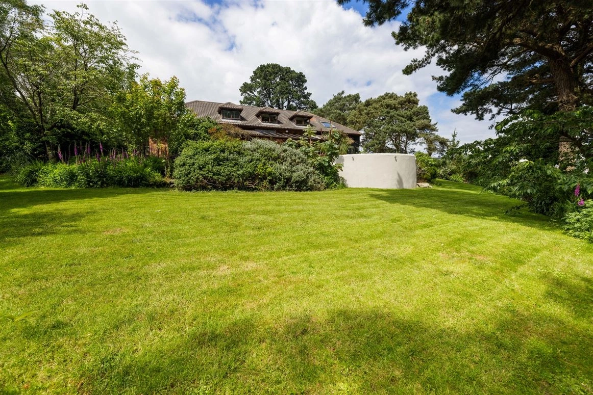 Combining modern design with country living, this five-bedroom detached family home is nestled atop an elevated site with sweeping views of the nearby coastline.