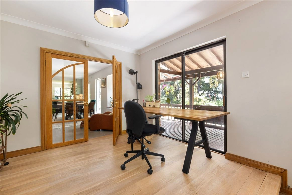 Further inside is the bespoke Jonathan Williams-designed kitchen. Standout features include a curved island/breakfast bar and a corner window and seating area that overlooks the serene vista outside. Double doors from the dining area lead out to the veranda. A barista station with bespoke cabinetry adds a touch of luxury.