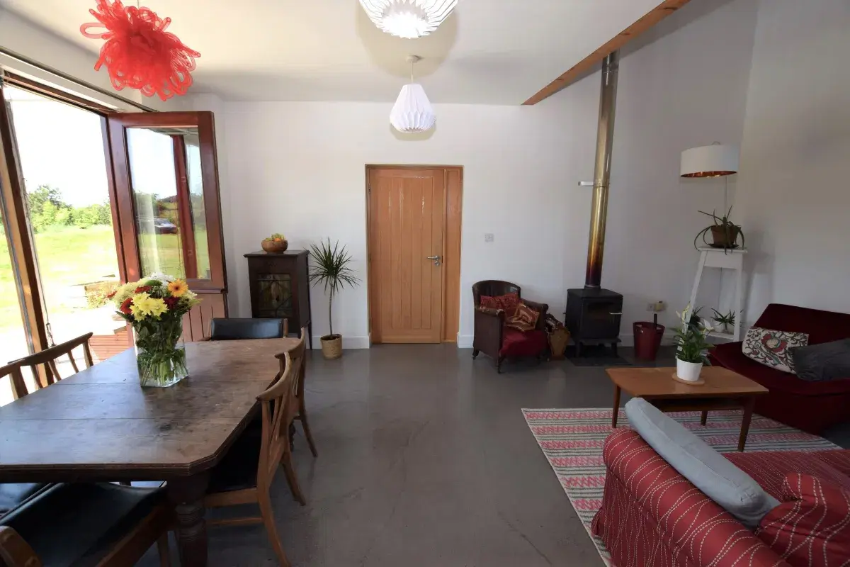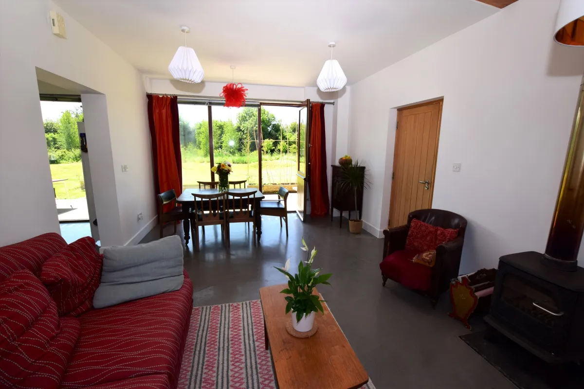 Conceptualised in collaboration with a local architect, the property mirrors traditional Irish long-house design and vernacular buildings. Half-door access opens onto the south-facing outdoor areas from every room and the home itself is modern yet traditional.