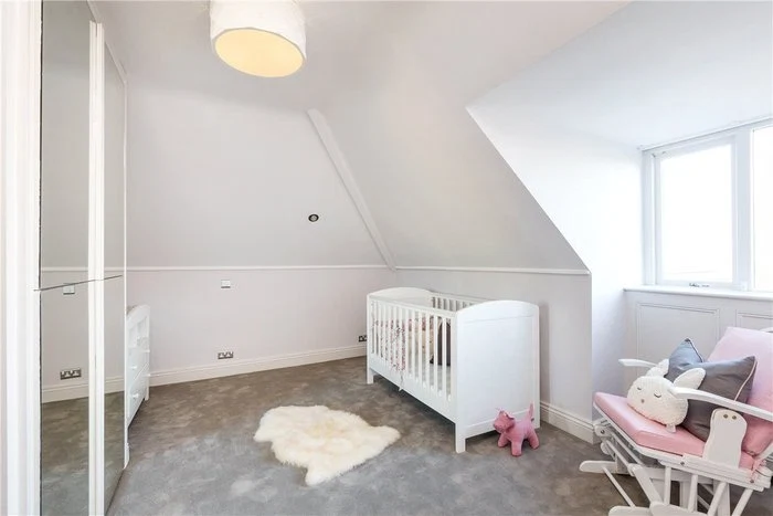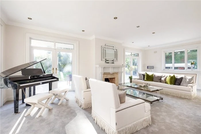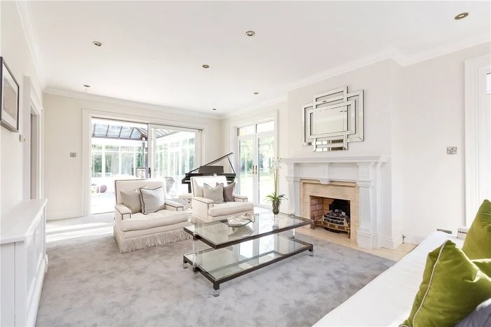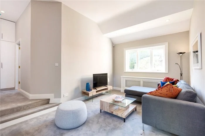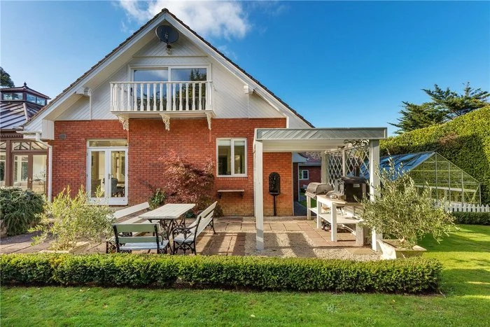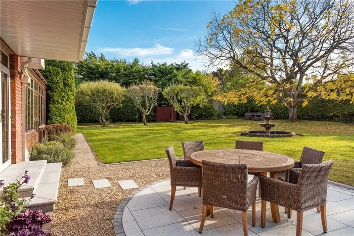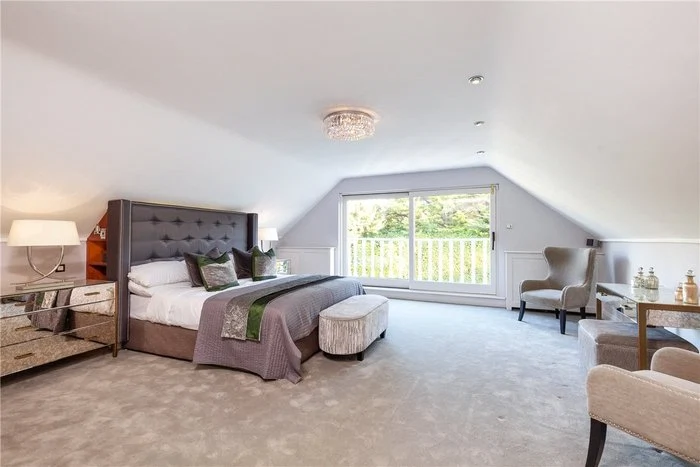 An elegant cantilevered staircase with a walnut handrail is one of the first things you see when you enter the home, and there is a cloakroom and WC located off the hallway. The main living room is dual aspect, making the most of the views of the extensive garden, and also has French doors leading out to the garden. Its tasteful palette of neutral colours is continued throughout the house.