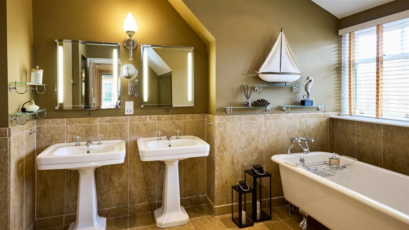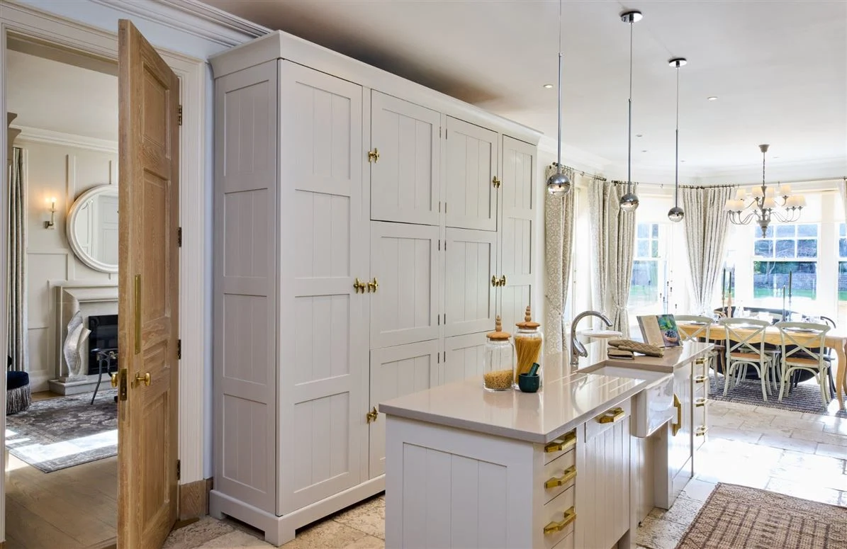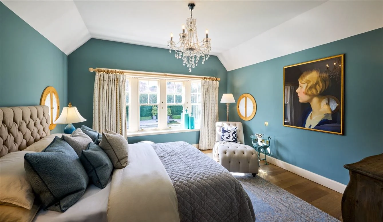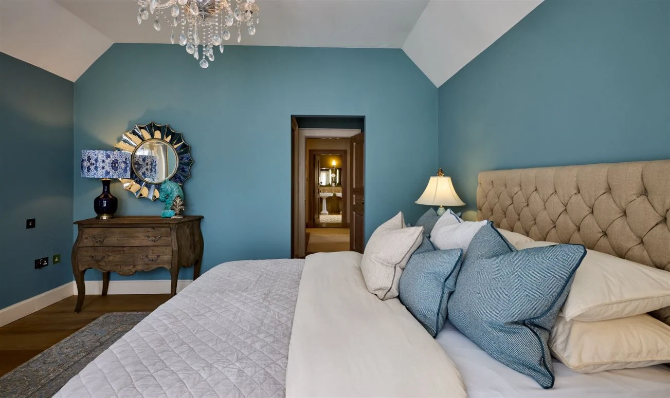 On entering the hall with vaulted ceiling and copper chandelier, a sandstone fireplace with double height sandstone chimney draws the eye upwards, to the galleried landing with limed oak banisters, setting the tone for what lies within.