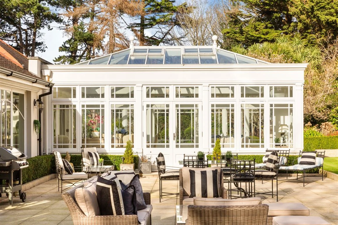 Complete with not one but two Hamptons conservatories and offering exceptional privacy with its secluded grounds, this Foxrock home is beautifully distinctive.