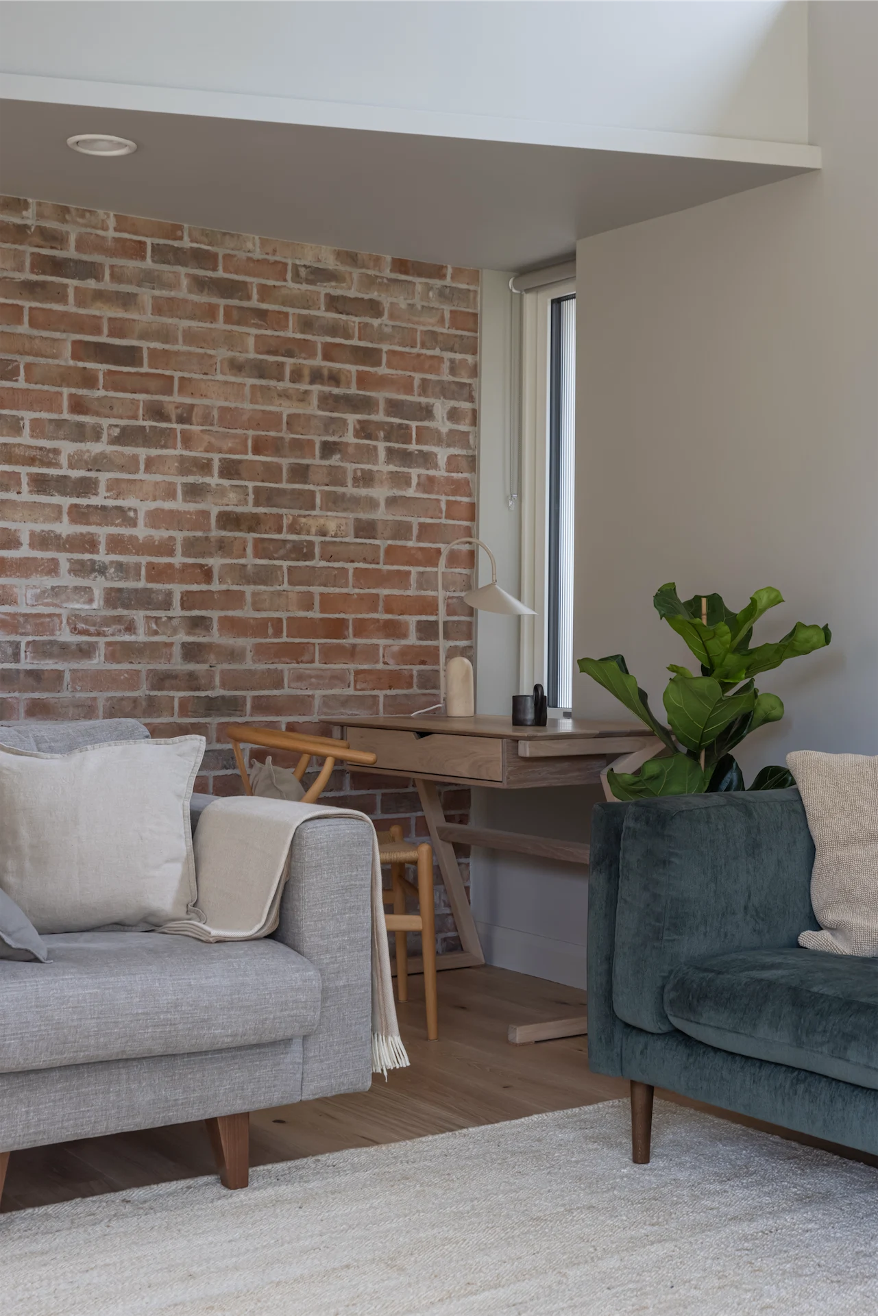 “Our plan was to respond as sensitively as possible to the new architecture, paying close attention to the earthy tones in the exposed brickwork and timber window frames, plus maximising the views of the garden and the sense of flow from room to room.”