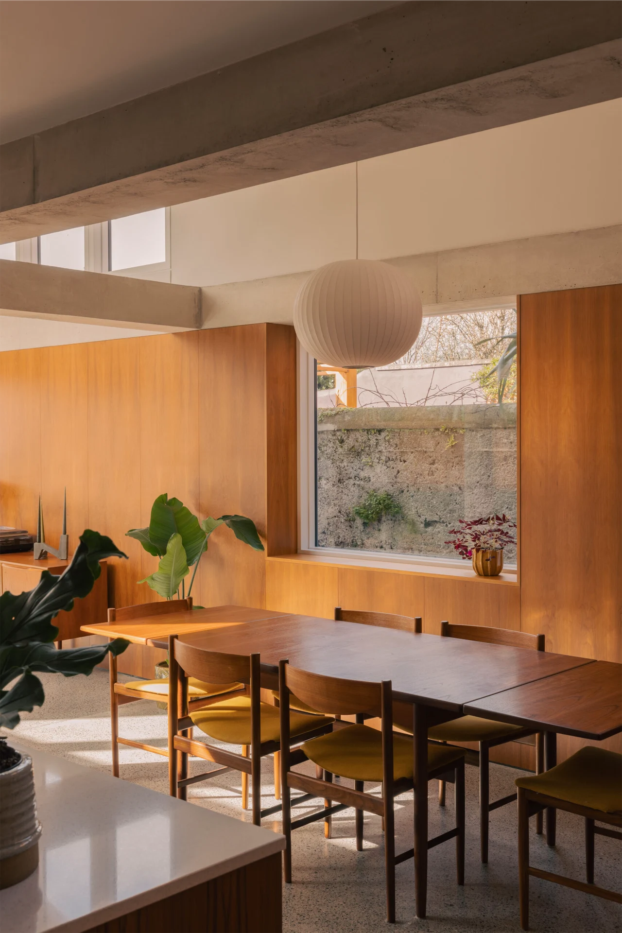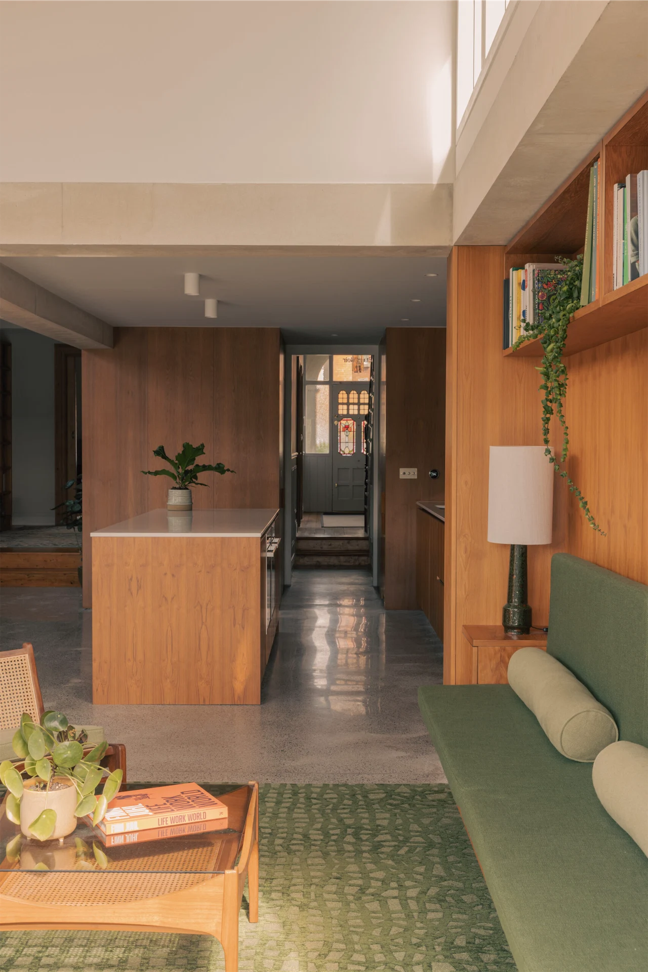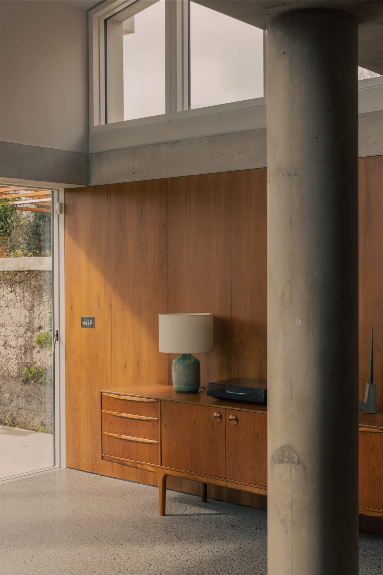 “We both have a real feeling of connection to the Alexander Strain-built houses in the area,” adds Gauthier. “To be able to introduce certain elements or aspects of our own style, like mid-century design and brutalist concrete, into a building like this gives us immense satisfaction. We felt an enormous sense of responsibility when taking on this project to protect the period features and the original feel of the house that was first built.”