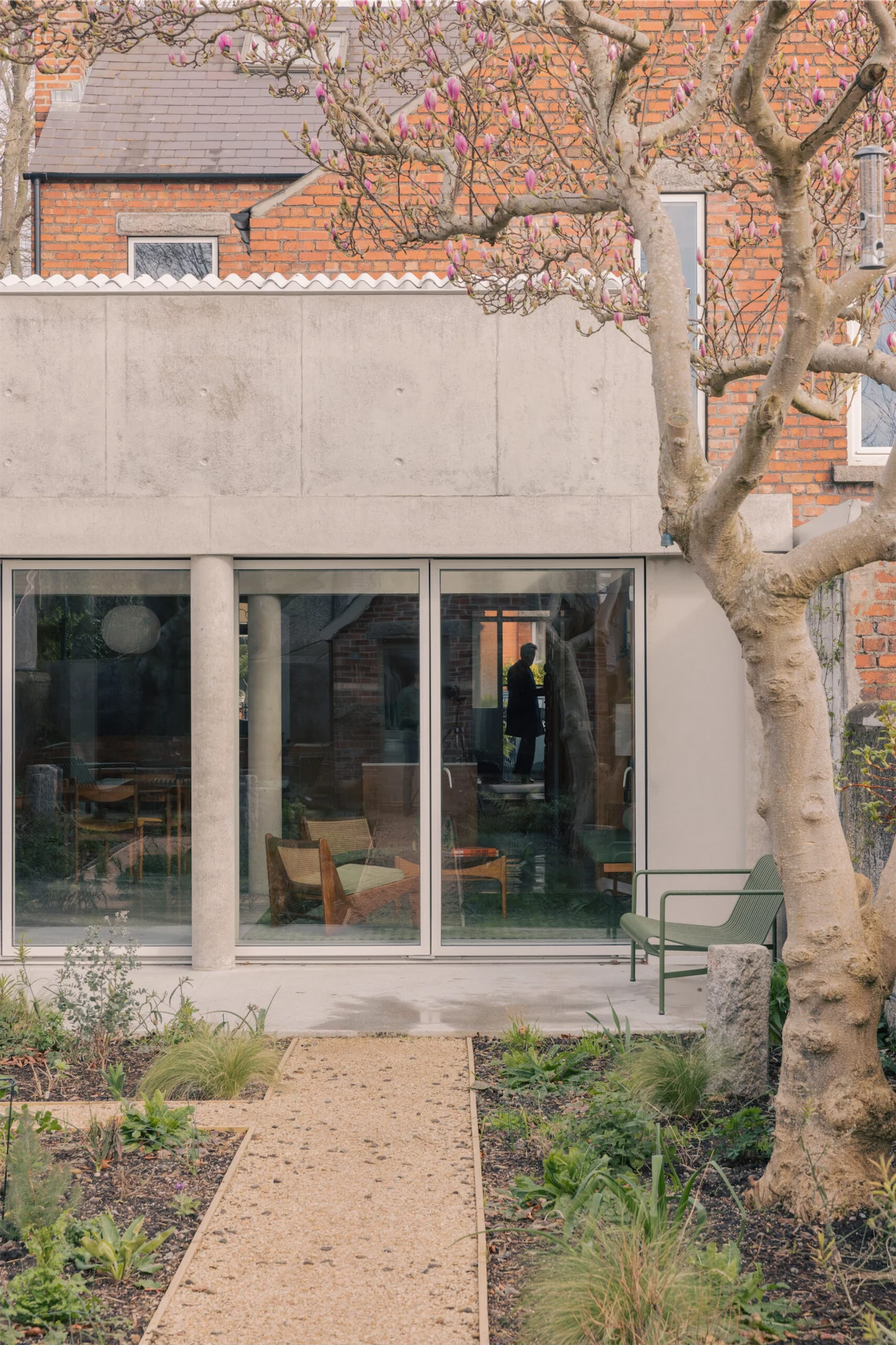 It wasn’t a long commute for architect Ryan W Kennihan. He lives around the corner from Luke Conlan and Gauthier Gilbert’s redbrick home in Glasnevin, and so was acutely familiar with how to sympathetically extend these elegant houses, originally built by early-20th-century builder Alexander Strain.