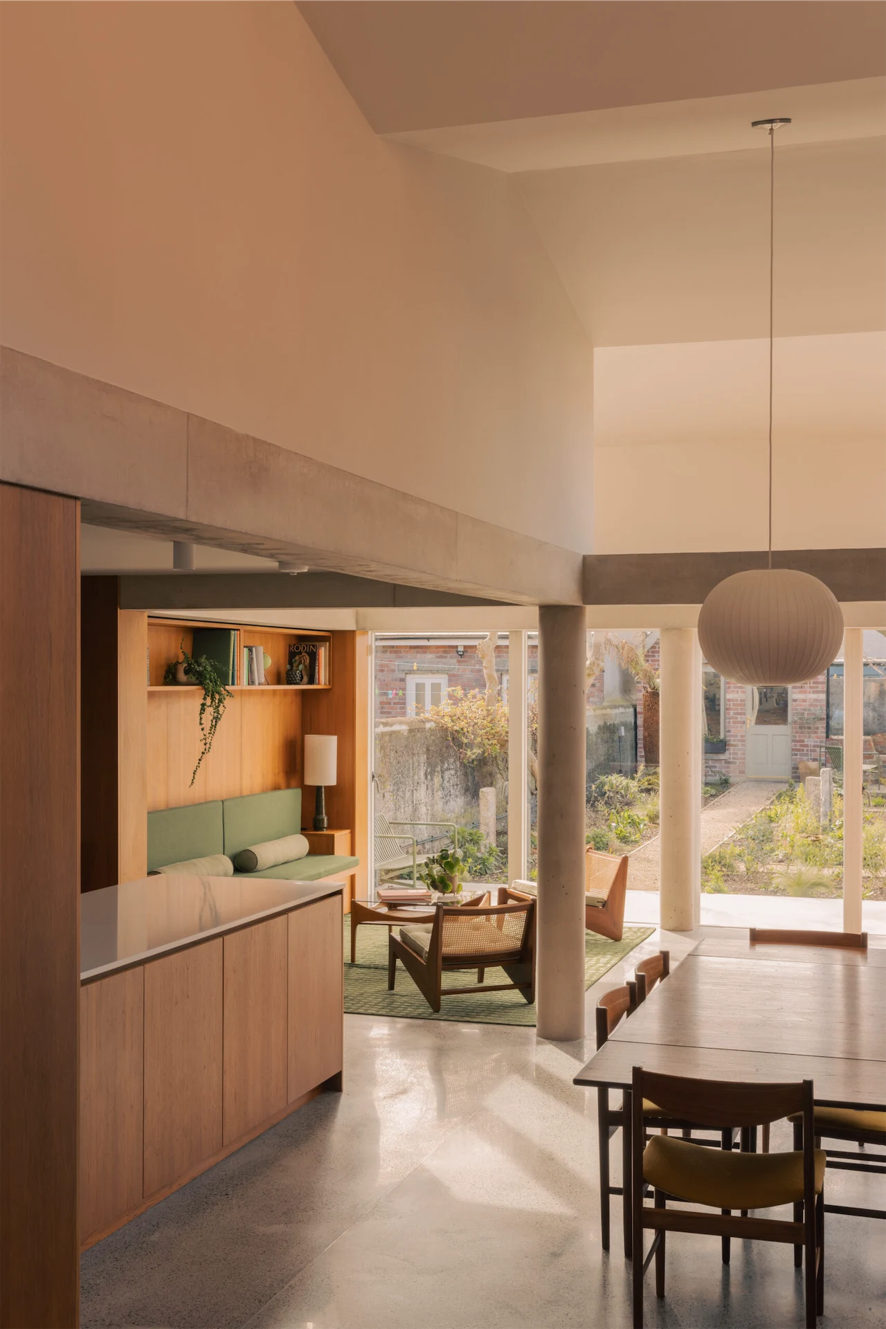 The rooms themselves have a beautiful combination of materials. “Luke and Gauthier have a very thoughtful aesthetic sense and interest in mid-century and modern furniture, and so came to me with a desire for the spaces to be made in concrete and wood,” Ryan says. “It was a dream brief, in that regard.”