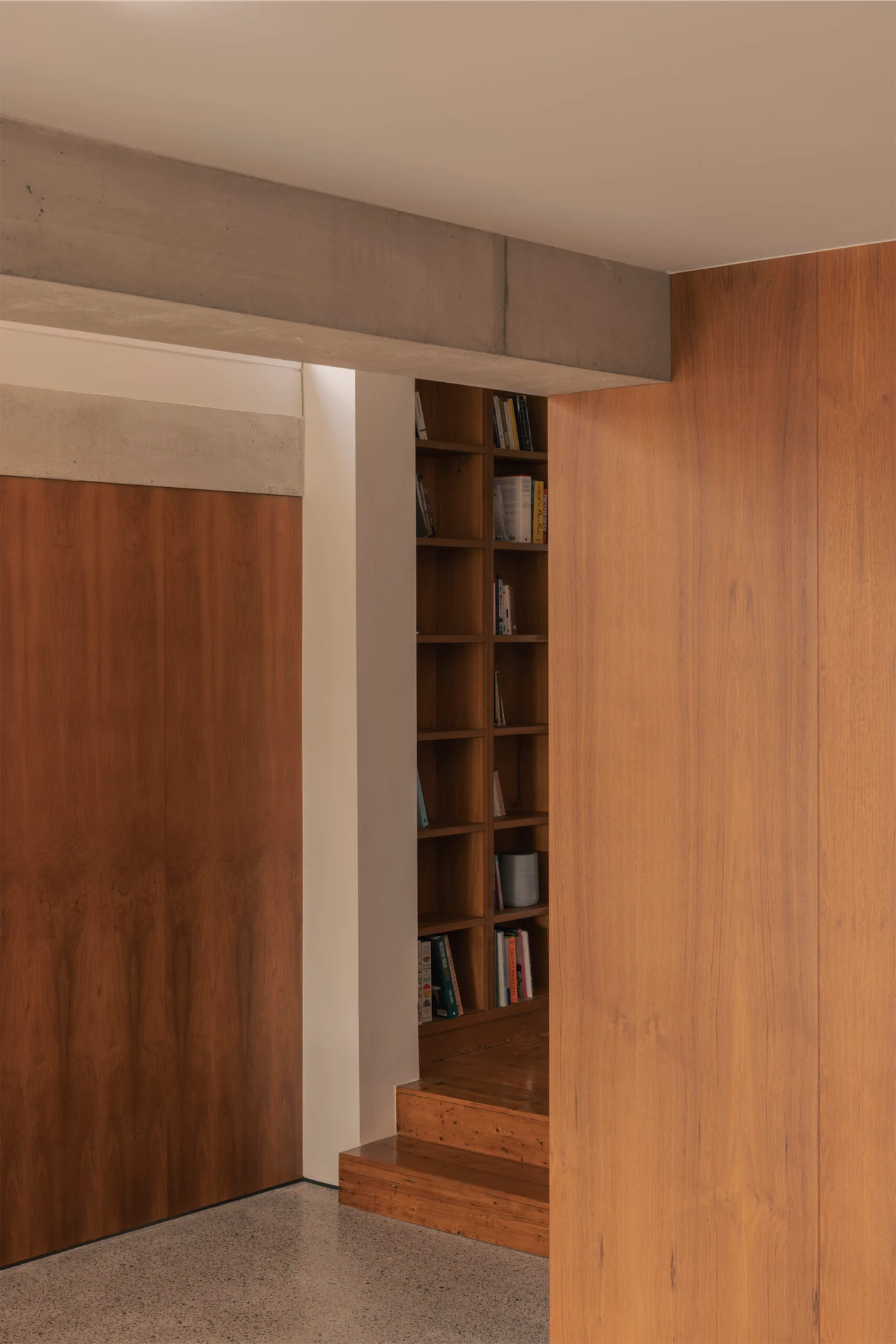 “He is very knowledgeable and importantly, has a sustainable source for teak-veneered boards. Once we had a sample of these we knew it was the perfect choice for the project,” Ryan says. “Stuart was great to work with. We had a number of tricky details that needed to be achieved as well as some very tight tolerances for the panelling. He worked closely with us to figure out creative solutions to every detail.”