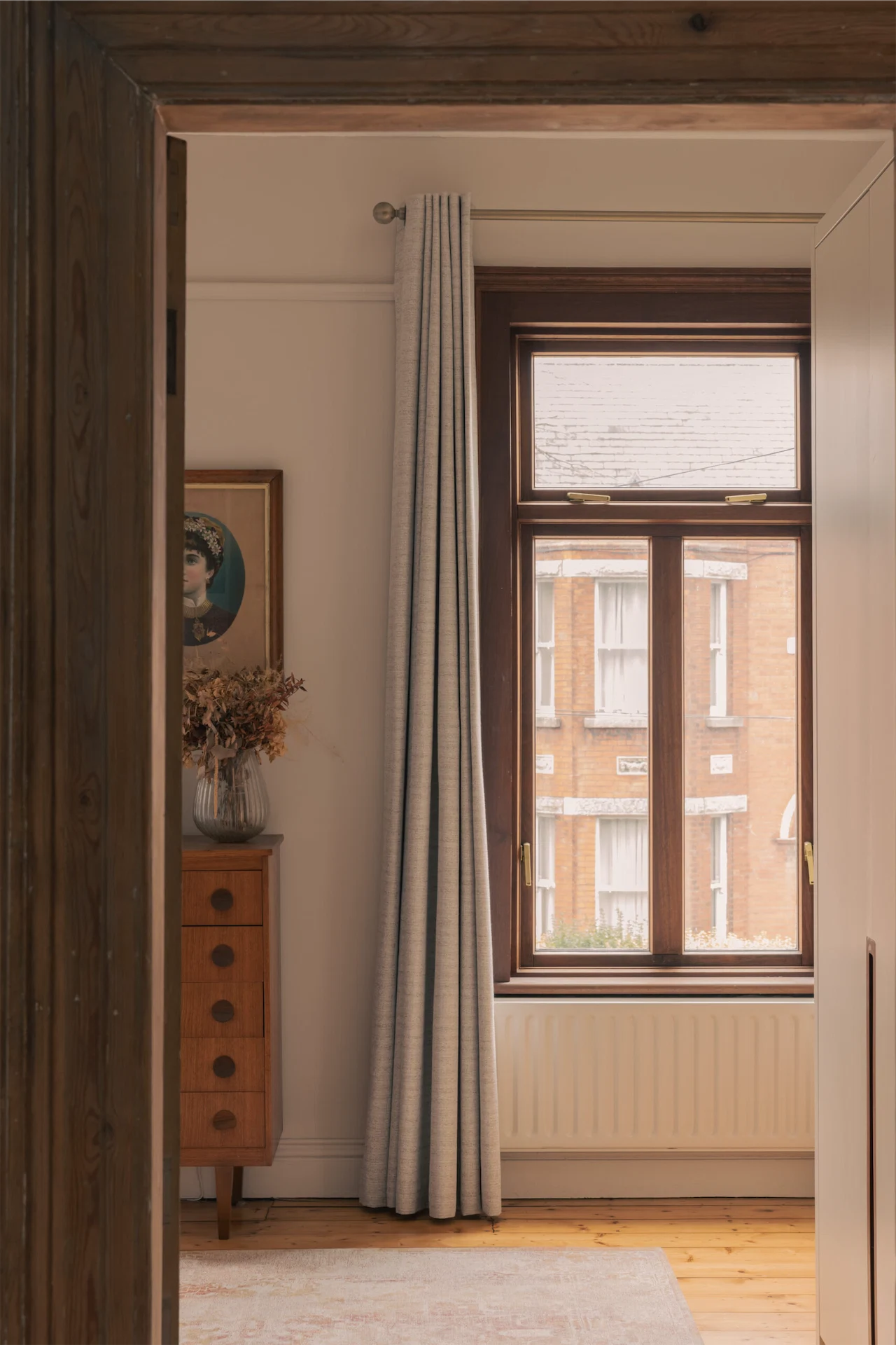 The work happened in two phases. Luke and Gauthier carried out the initial renovation of the house, including stripping back paint from floors that were painted orange, exposing architraves thick with decades of paint, adding wardrobes to the main bedroom, reinstating wall panelling and redecorating throughout. With the original features brought back to life, the house was now in a beautiful condition, apart from the back kitchen and return, which were intended to extend.