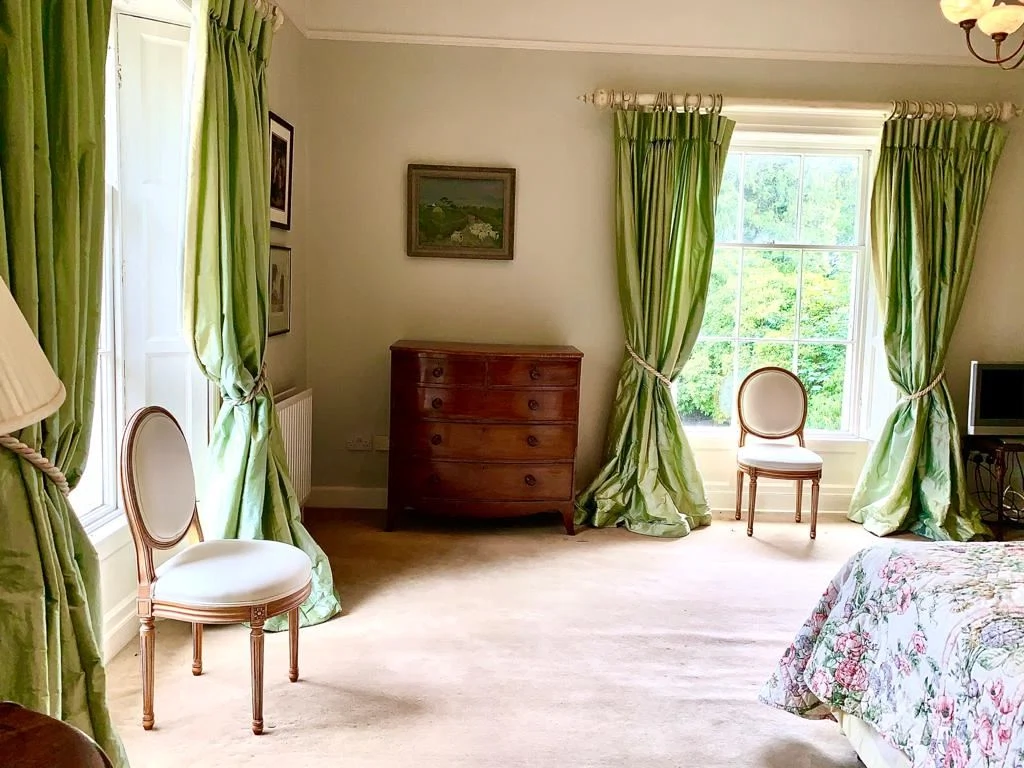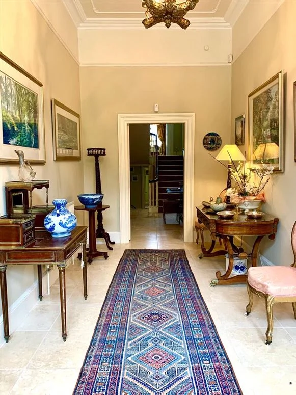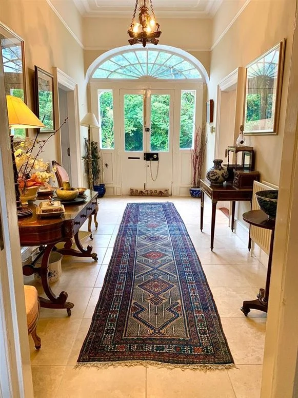 The drive sweeps round to the house door, where stone steps guide you into the entrance hall with its gorgeous French doors. The house has been sympathetically refurbished, but maintains much of its original charm, thanks to a muted palette and an emphasis on the original architecture.