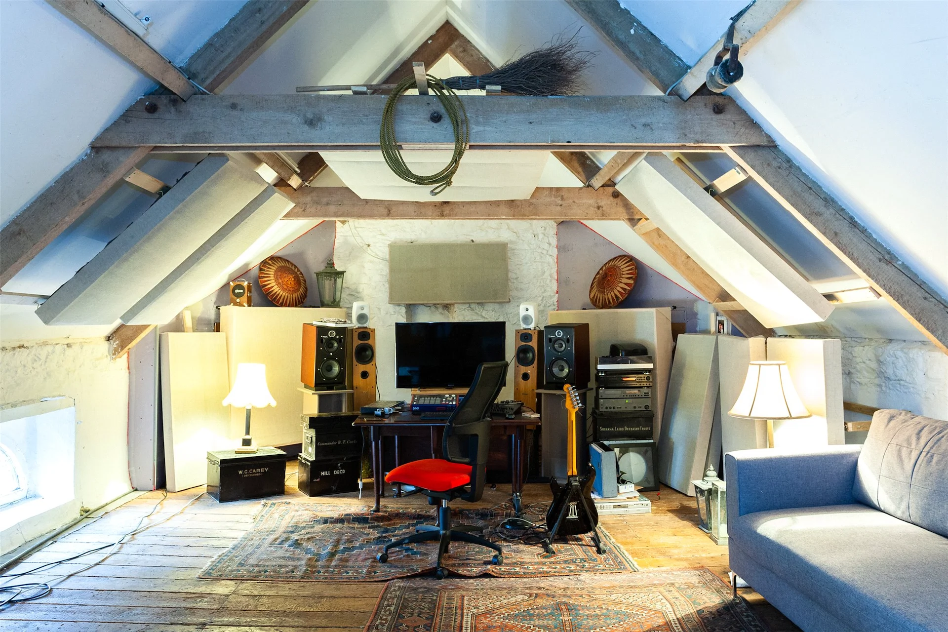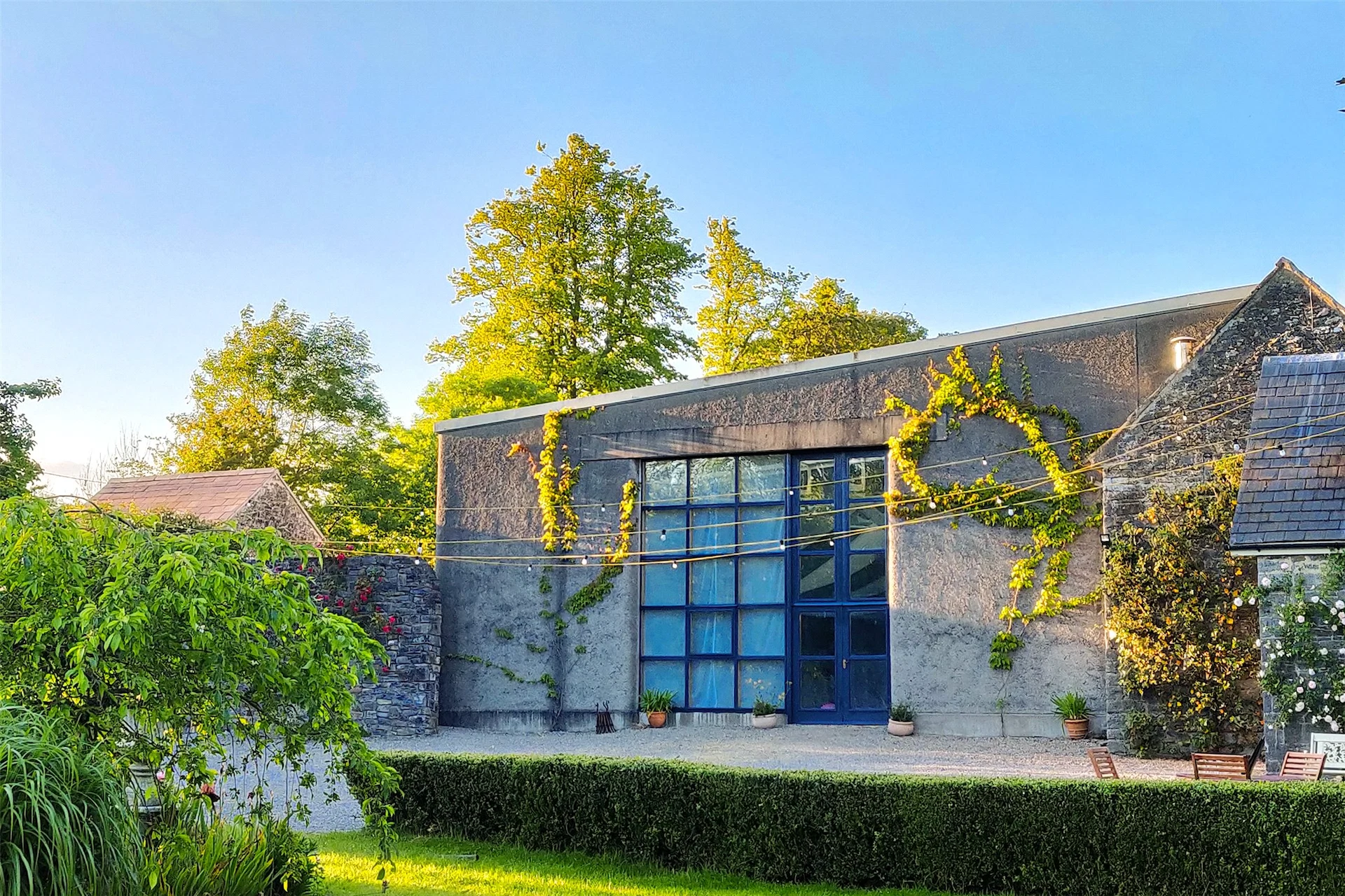 There is also a one-bed stone cottage on the grounds, with its own kitchen and bathroom, which sits next to a studio built by artist Hughie O’Donoghue, a previous owner of the home. It has more recently been used to host weddings and art exhibitions, but with its high ceiling and large footprint, there are all sorts of uses a new owner could put it to.