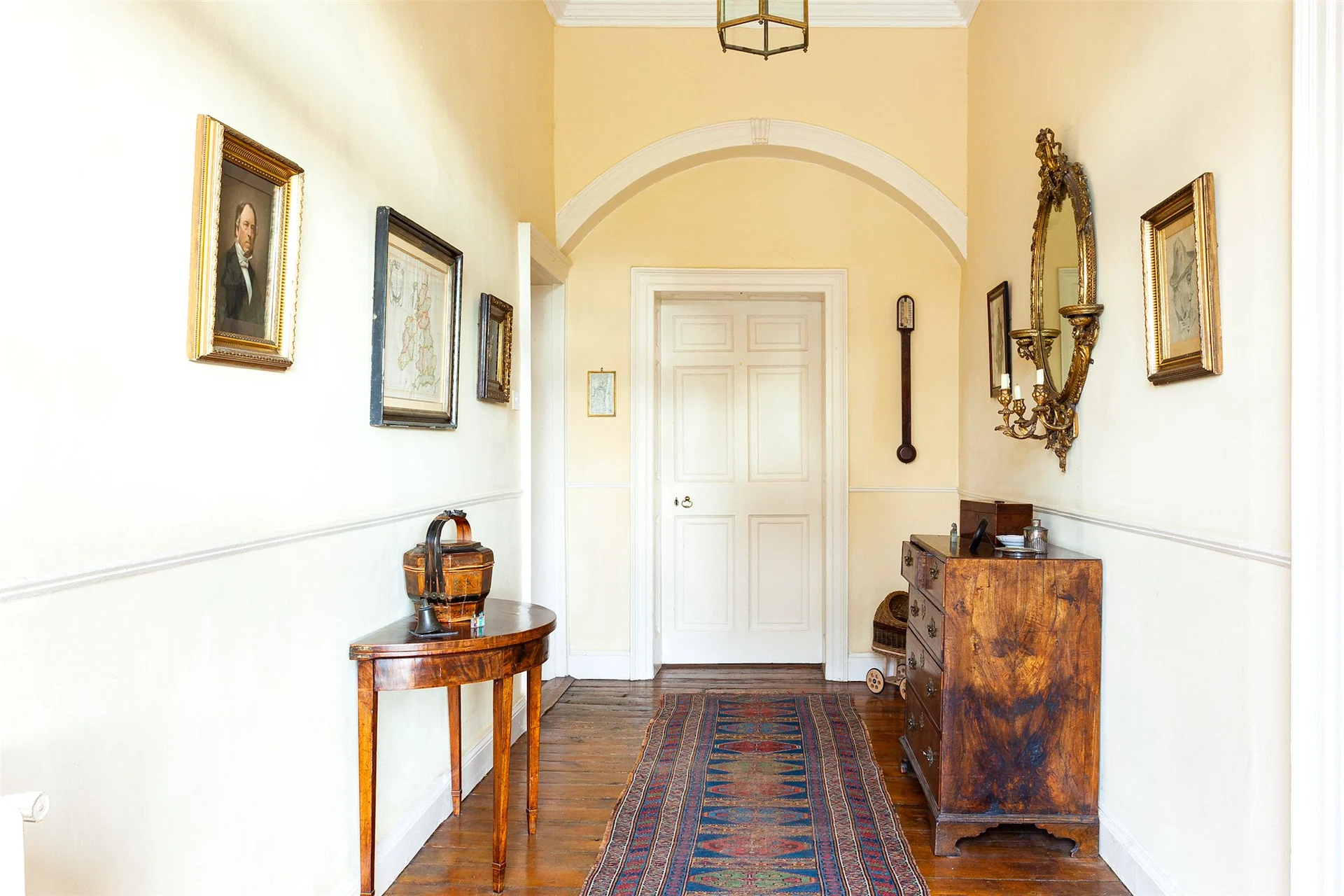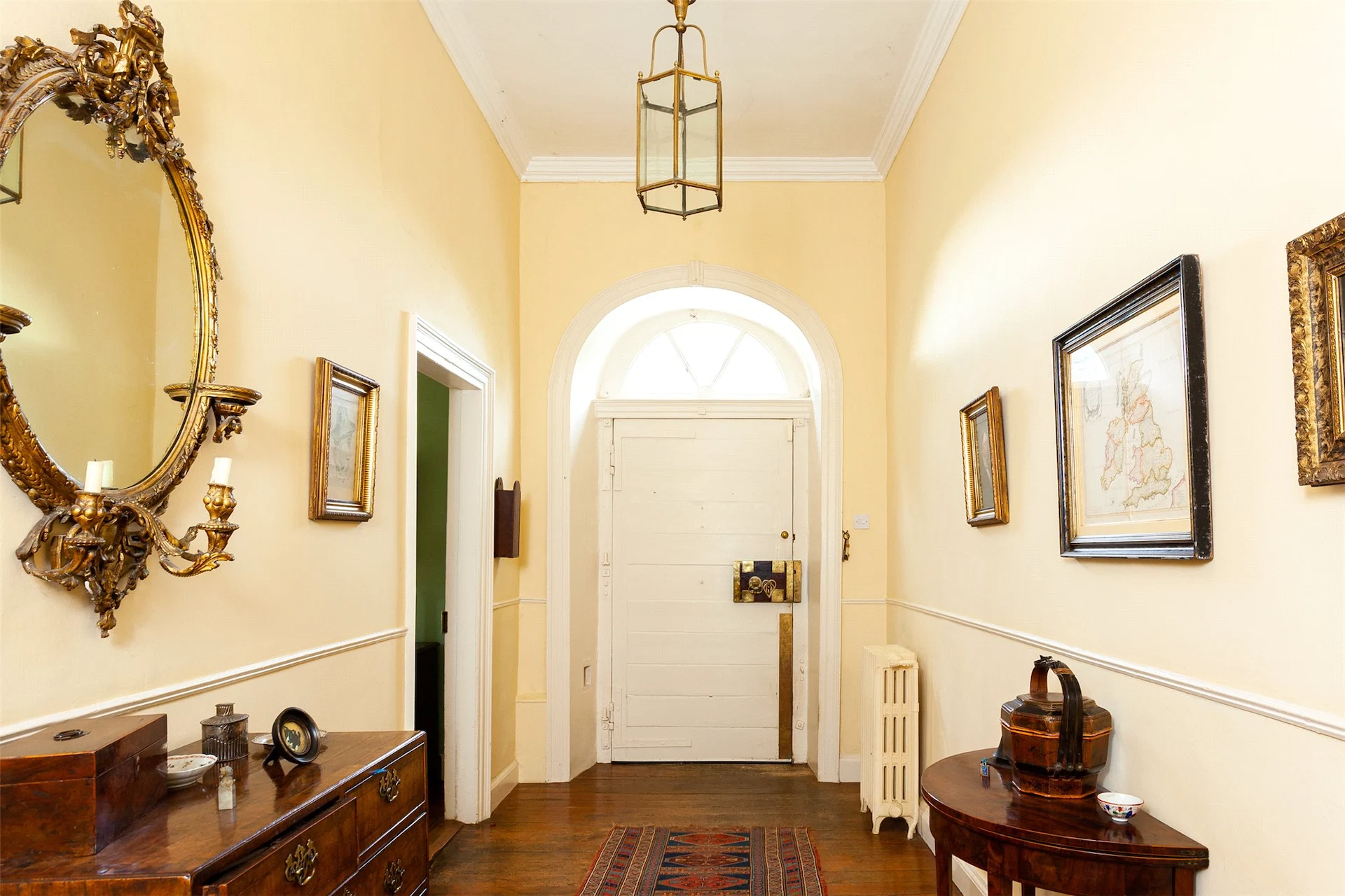 You enter the house by ascending wide stone steps and entering through the fan-lit front door. The hallway has original wooden floors, and leads to the formal drawing room and dining room.
