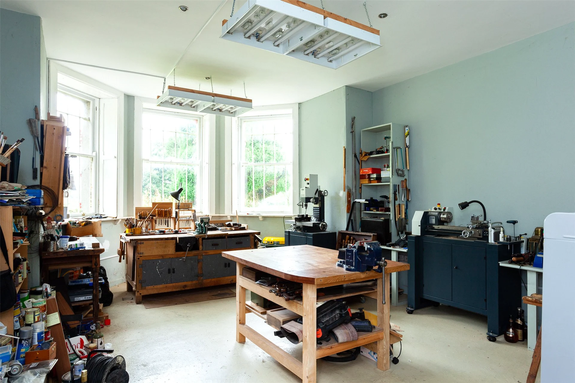 The basement level hosts a large workshop space, as well as a utility room and a storage space. One of the workshop rooms has a large bay windows at garden level, and either could be turned into an additional reception rooms if desired.
