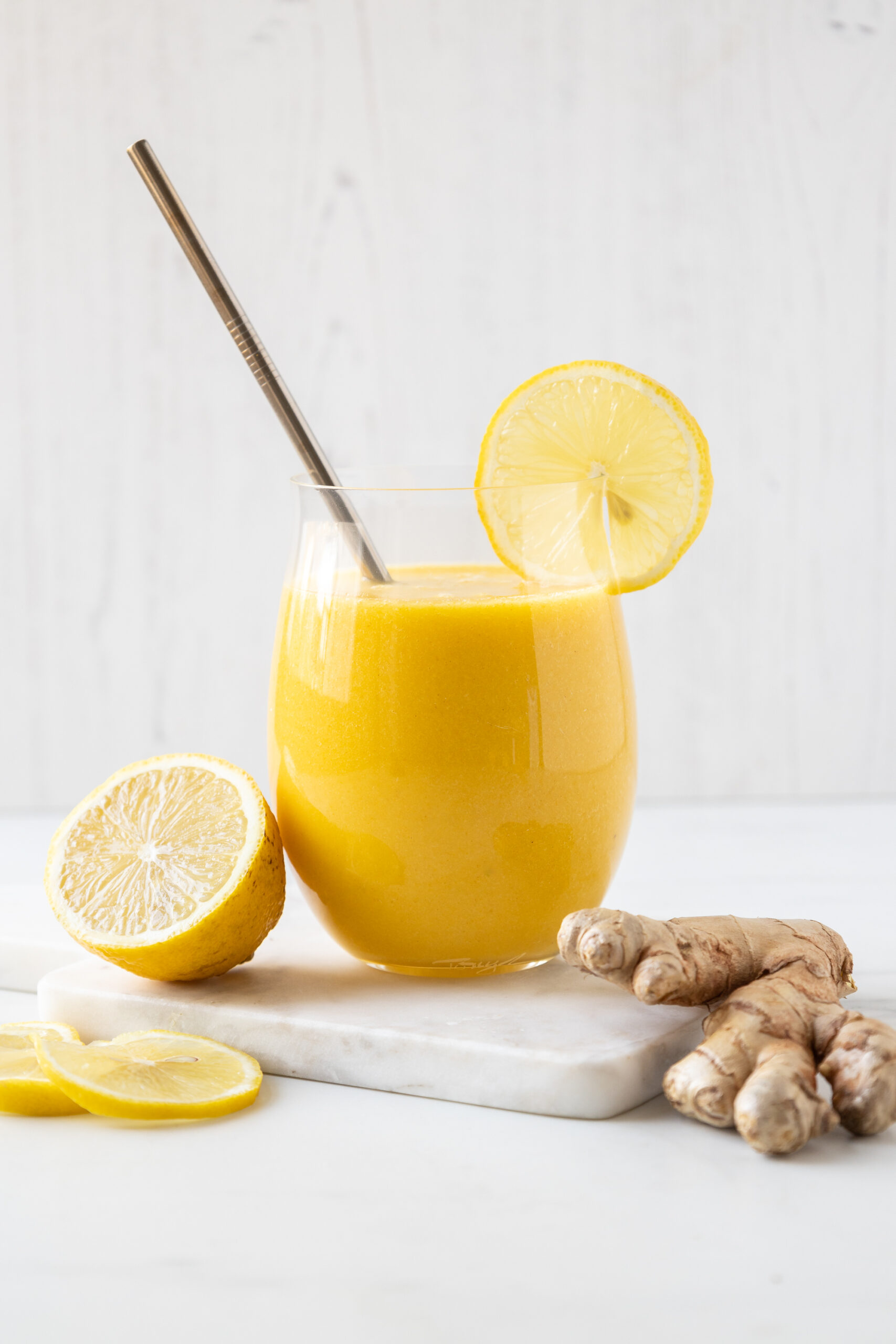 To give it an extra immune kick, we are adding zesty lemon, fresh ginger and turmeric. These ingredients are rich in vitamin C and unique anti-inflammatory compounds that support immune function and help your body fight off the common cold and flu. Together, they create a refreshing, sweet smoothie that warms your body and makes healthy living easy.