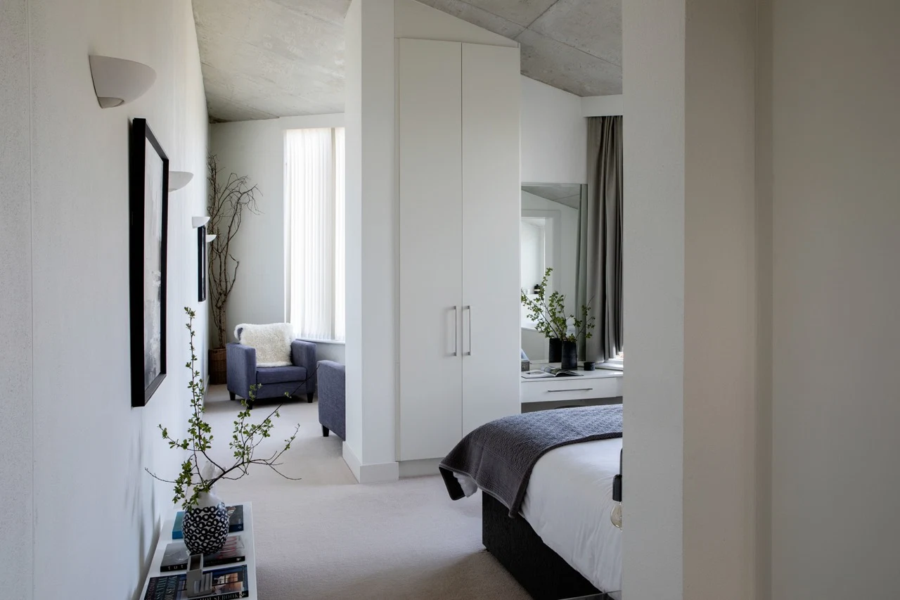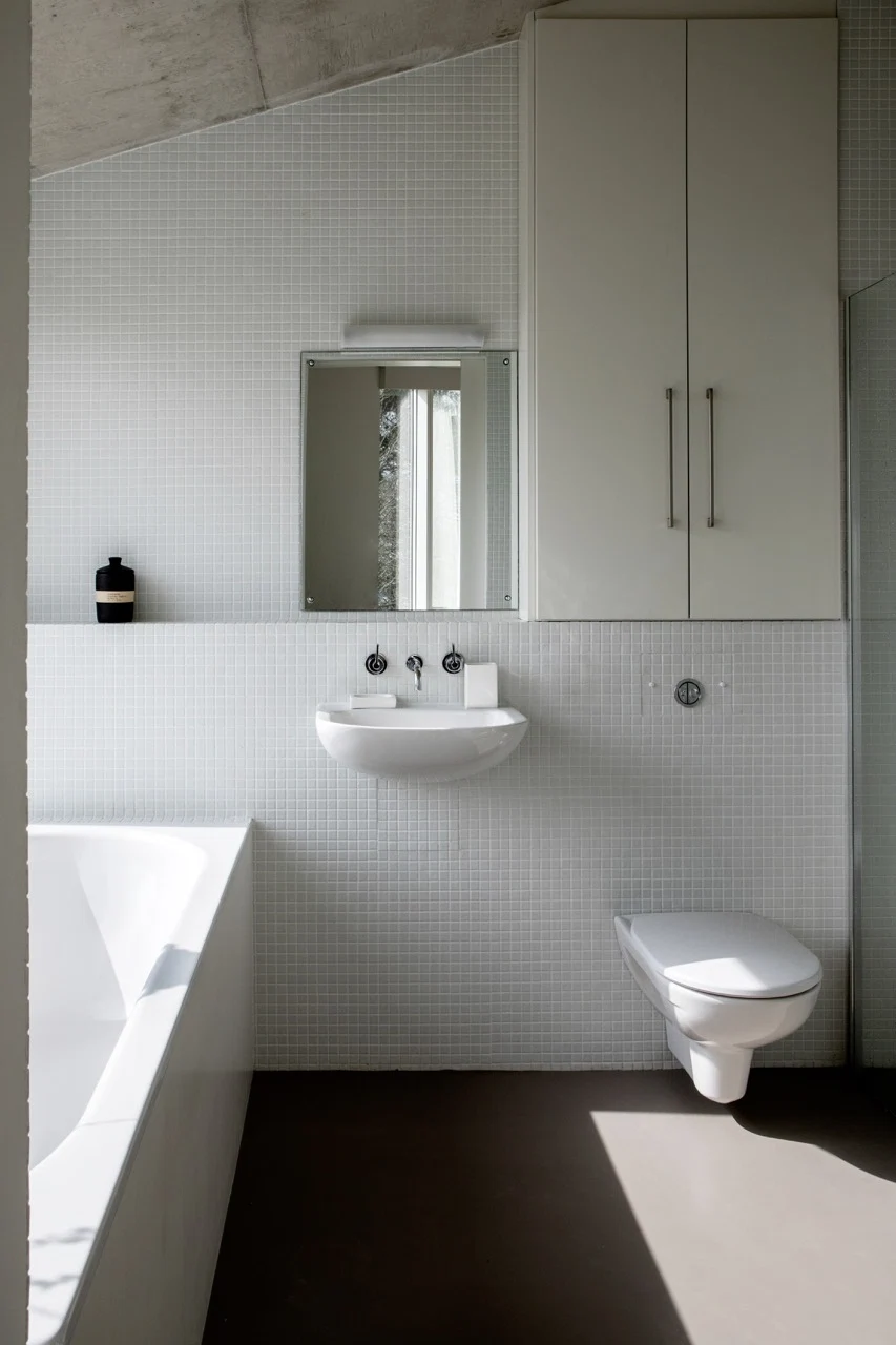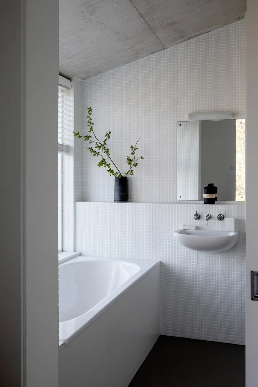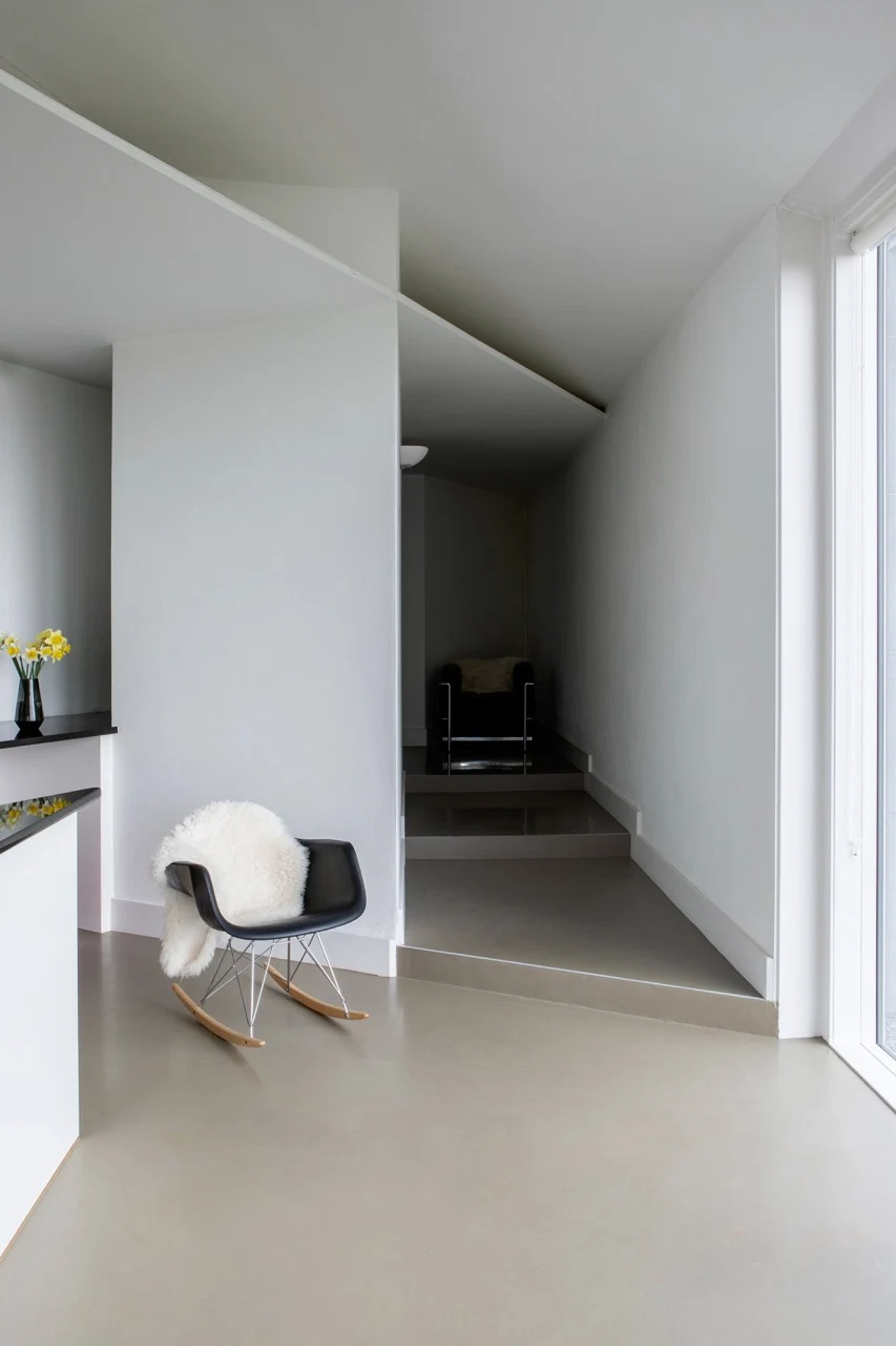 The material palette adds to the overall effect of this serene, pared back space. Clad in Kilkenny black limestone, inside resin on poured concrete floors creates a minimalist softness, while the large windows are set into white, adding lightness.