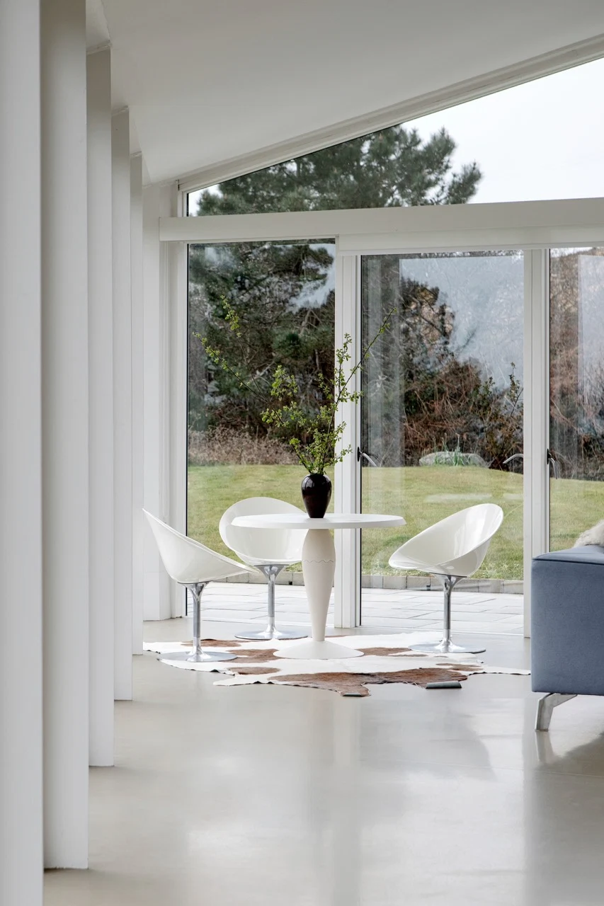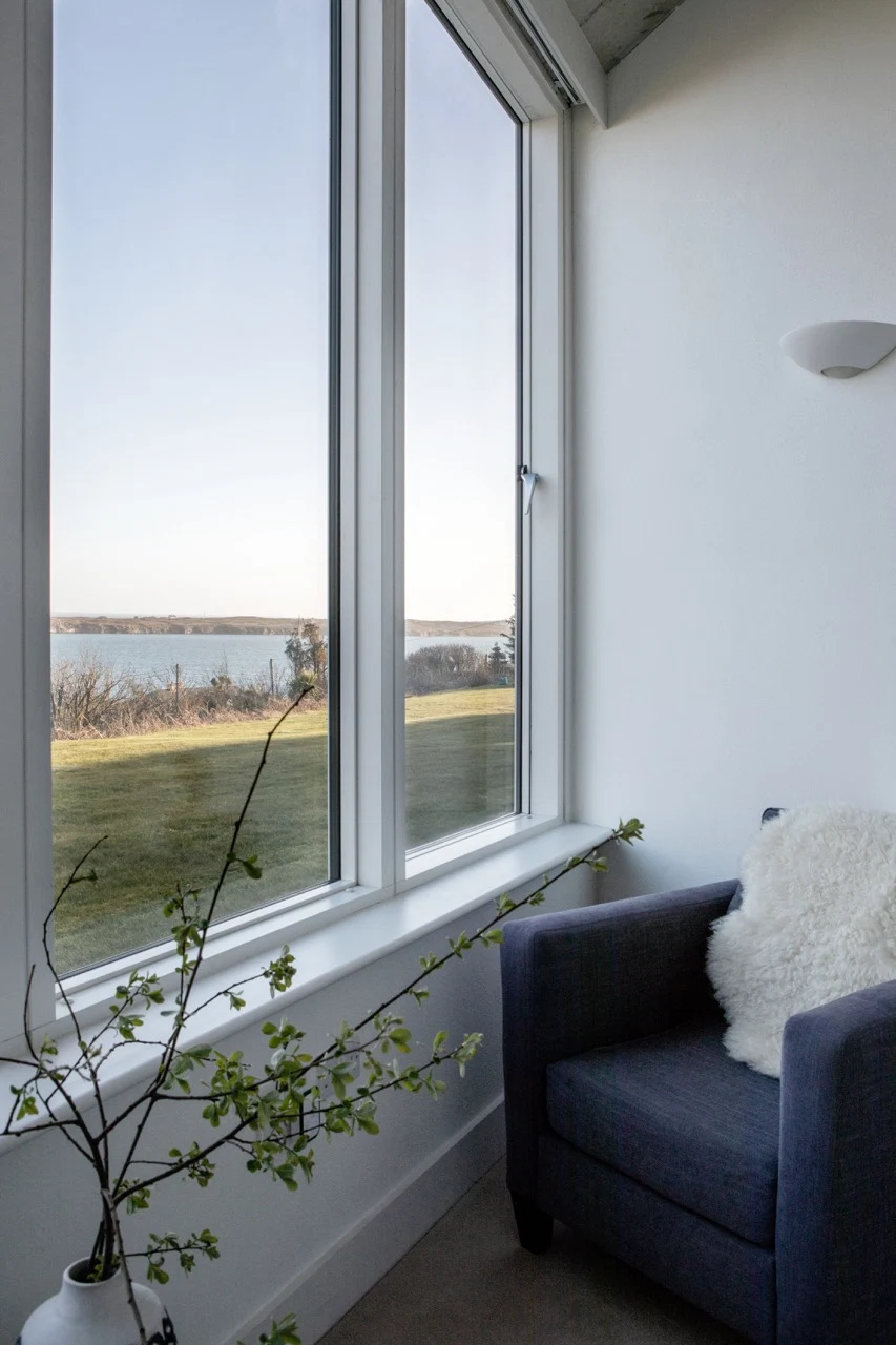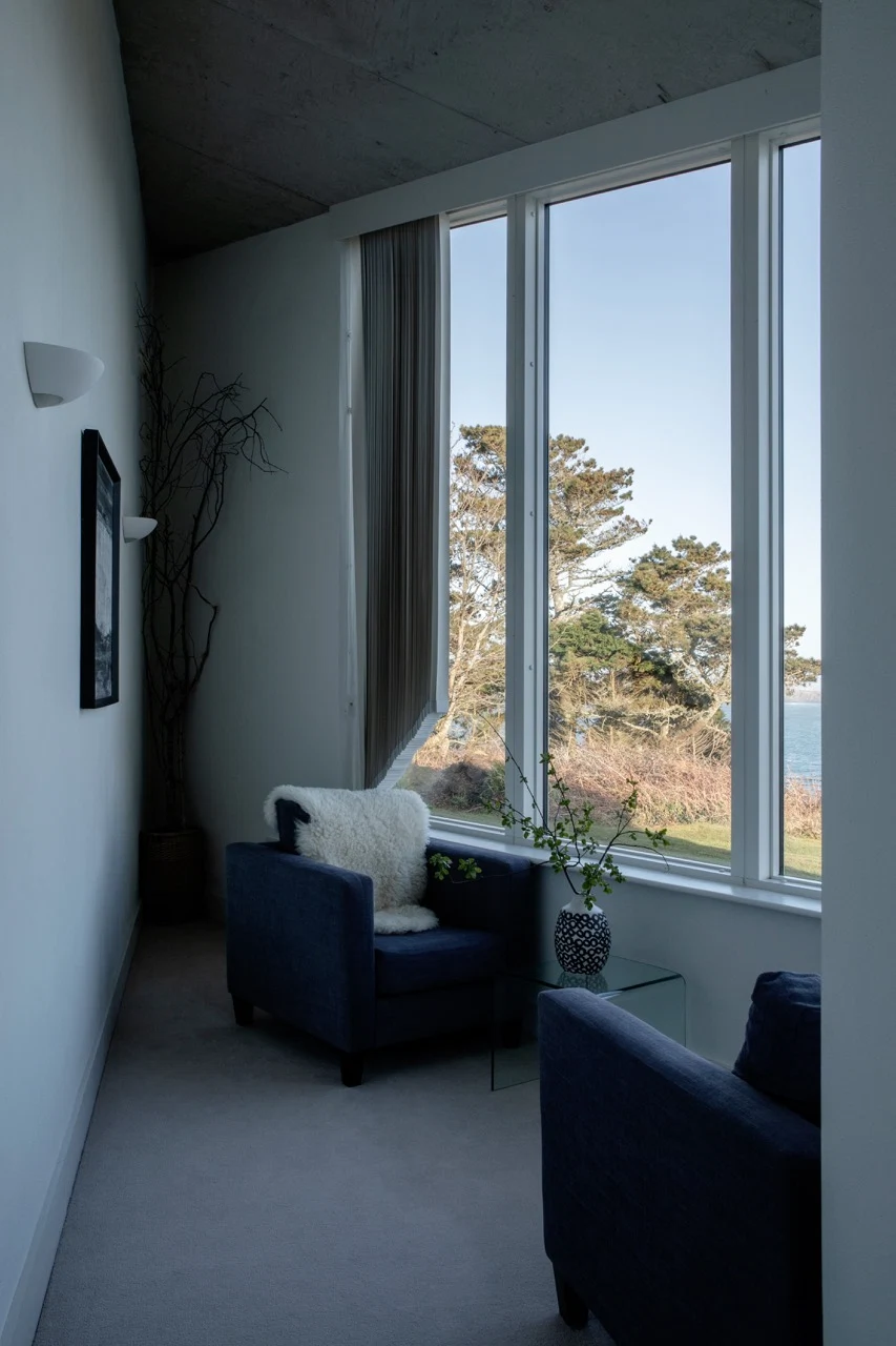 “I remember the architect saying that we were not only lucky to have a view of the Atlantic and islands but also a ‘near view’ of magnificent Scots Pine trees – which gave the wider view more context and a somewhat Mediterranean feel. Inside the house gives the impression of being much larger than its square meterage owing to the massively high ceilings.”