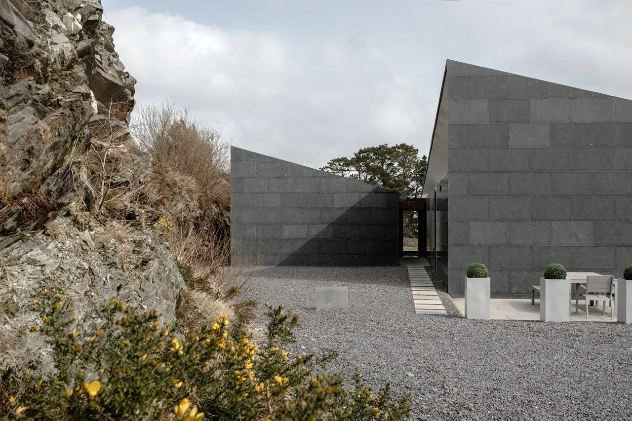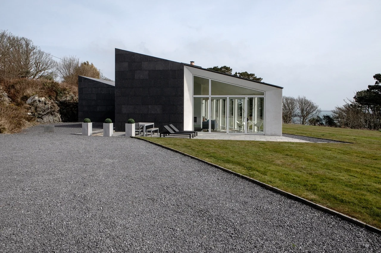 Architect Niall McLaughlin’s design is tucked into the foothills of Mount Gabriel, with a sleek zig-zagging form that works with the rugged coastline.