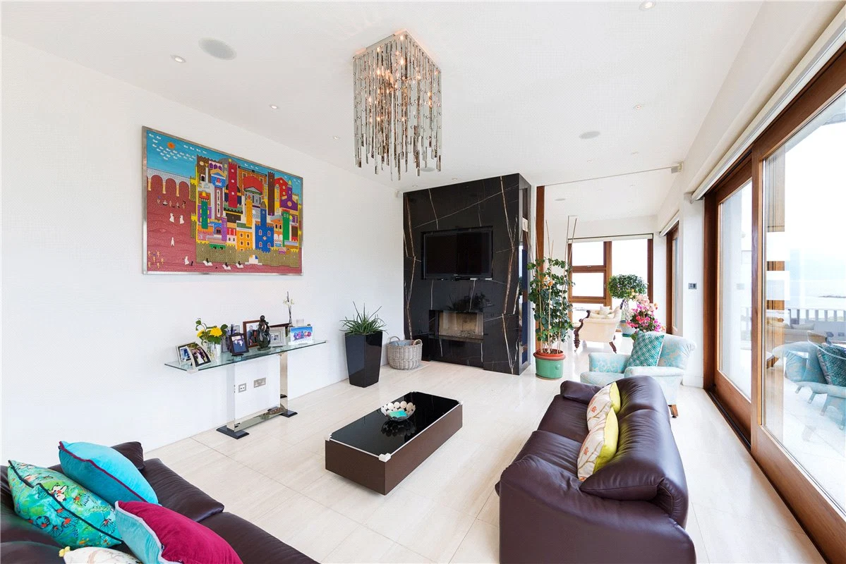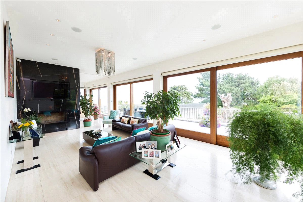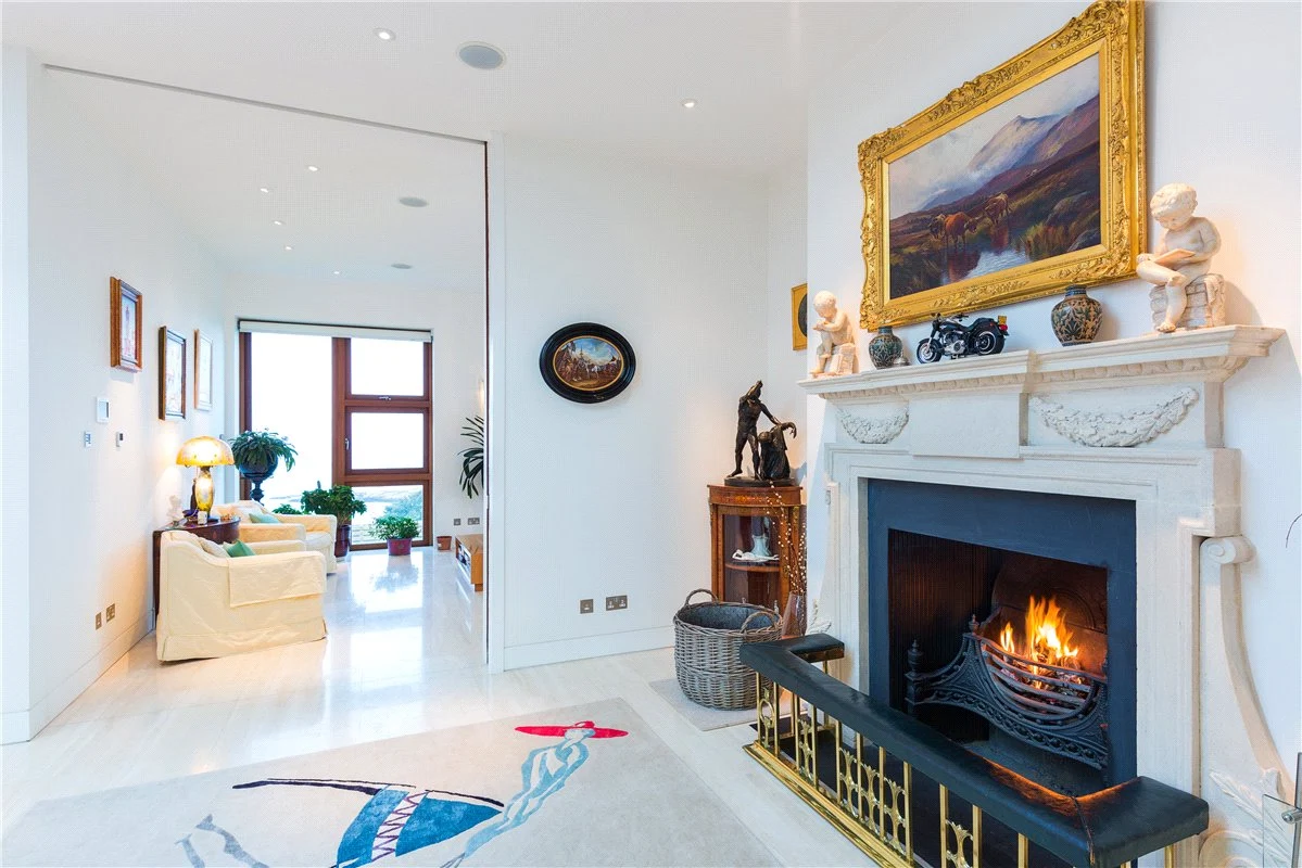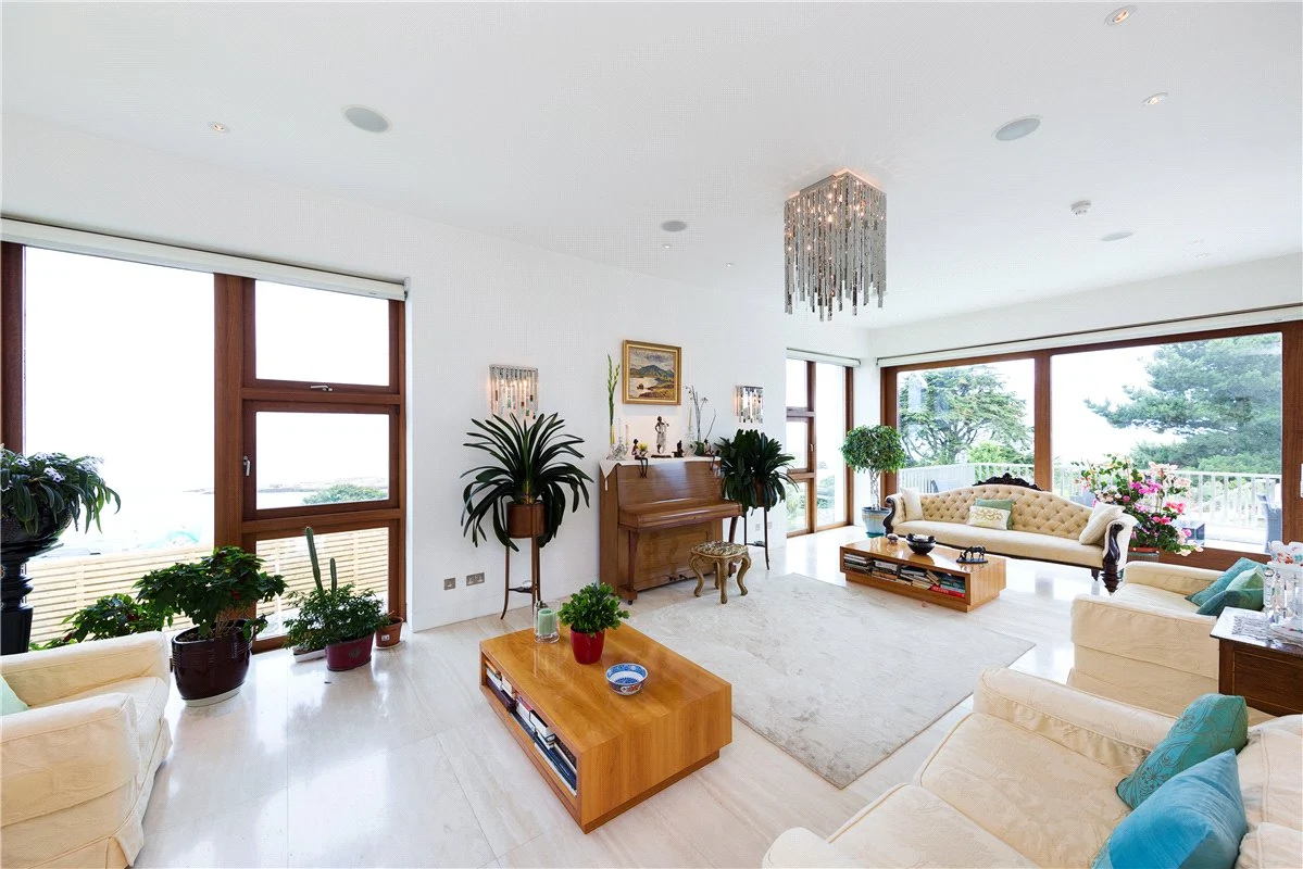 The living room has doors that open out onto the sun terrace, which has a dual aspect view over Dalkey Island and Killiney Bay.