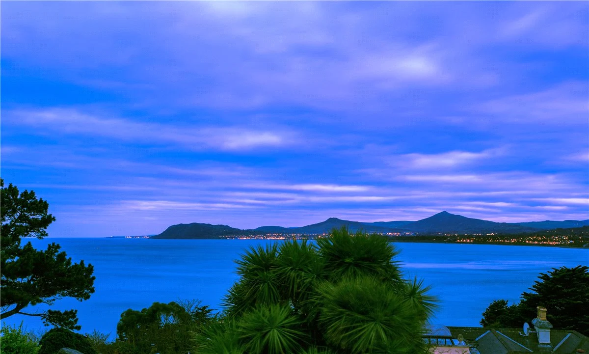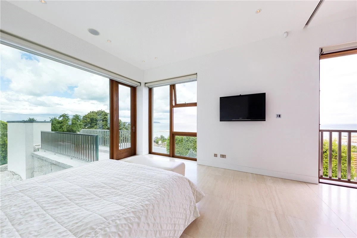 Set on a spectacular site looking out across Dublin Bay, this modern home has five bedrooms, airy living spaces and an elevated terrace.