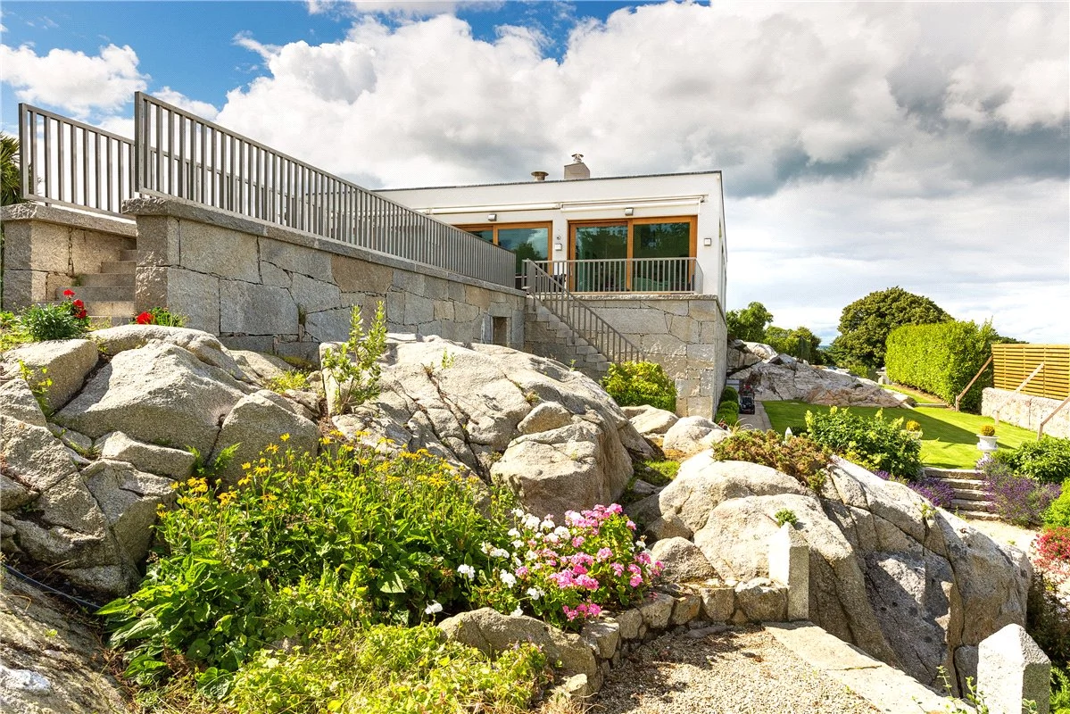 The home’s gardens extend to around an acre, where mature shrubs and trees sit amongst natural granite outcrops, while a sunken seating area provides a place to enjoy the view. There are winding paths around the garden, allowing you to fully enjoy the space.