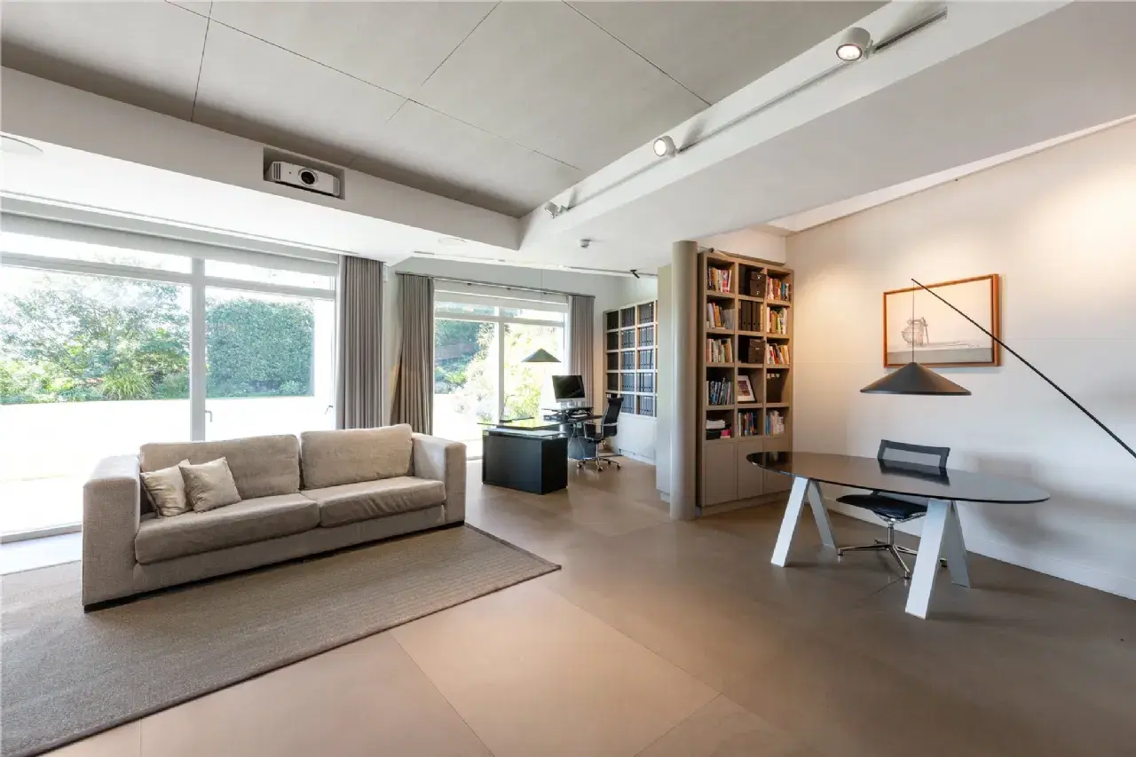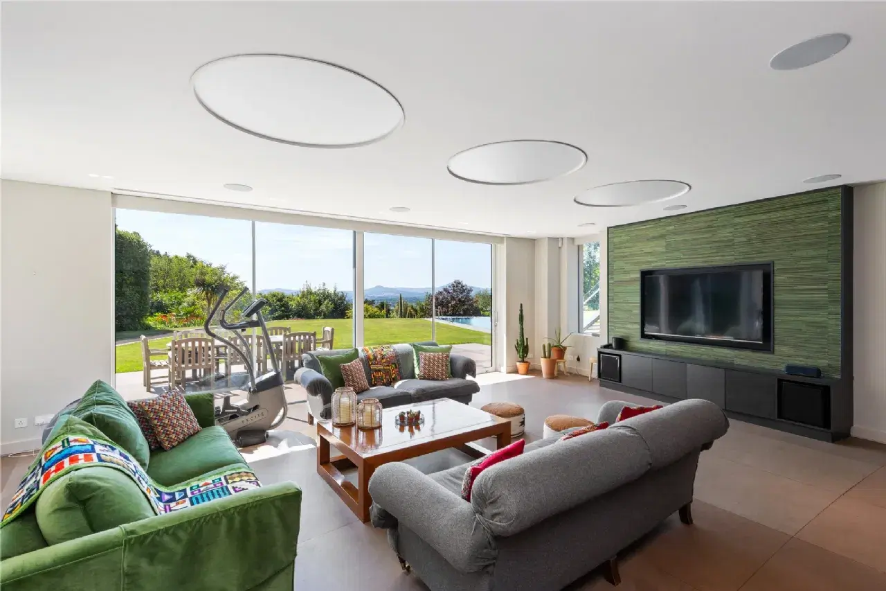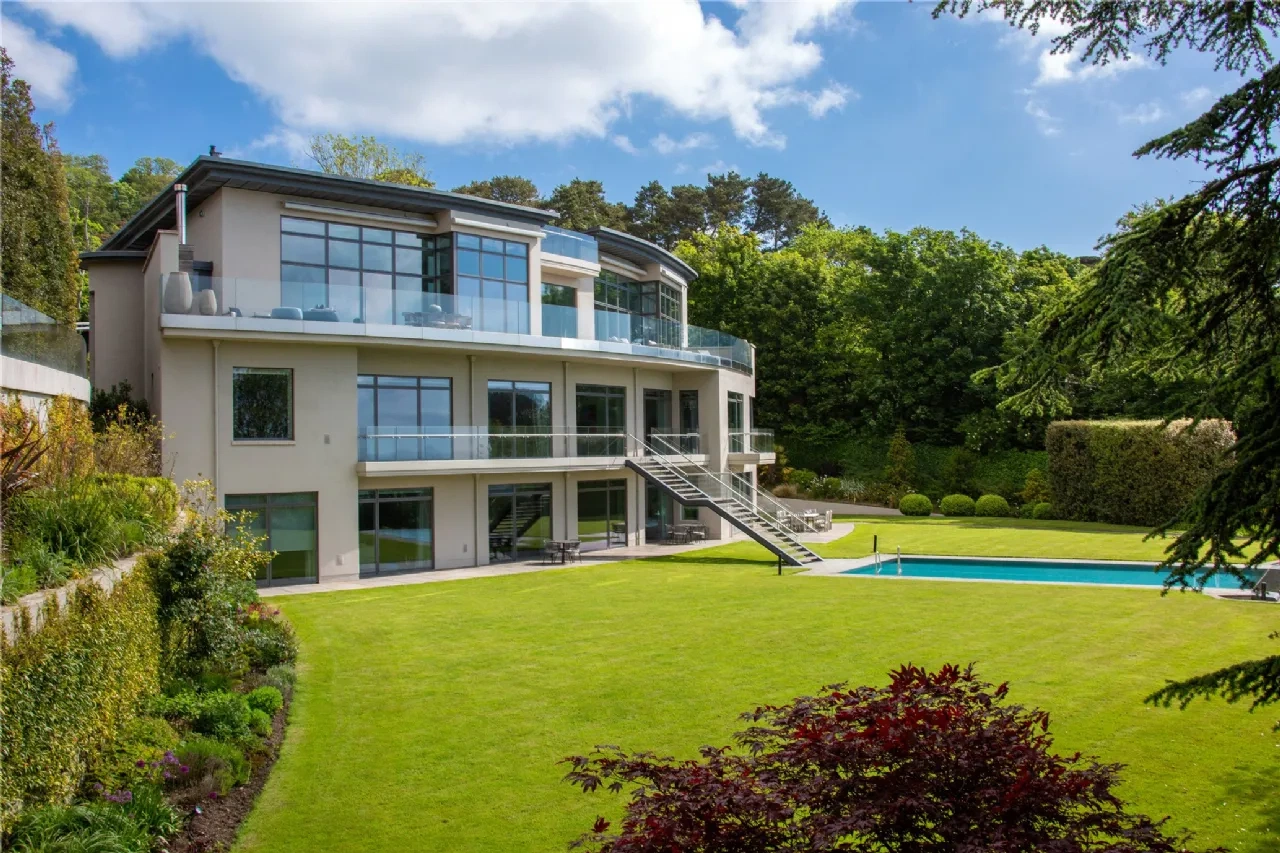 The main house extends to approximately 1,000 sq m/10,691 sq ft and consists of six reception rooms, five en suite bedrooms and a host of ancillary accommodation. The rear of the building is dominated by floor-to-ceiling windows and large glass doors which look out onto a spectacular expanse of greenery. In addition, there are approximately 2,000 square feet of terraces which are accessed from each of the three levels. The private and secluded grounds are a real feature of the property with the large infinity swimming pool providing a dramatic focal point.