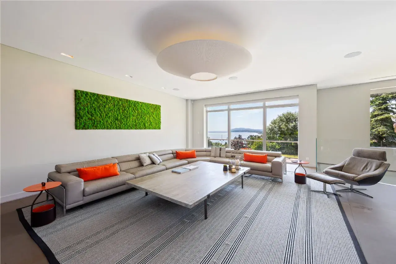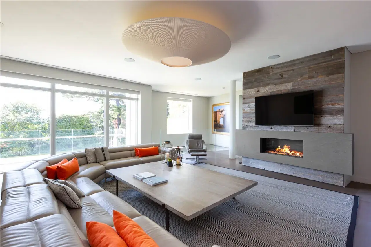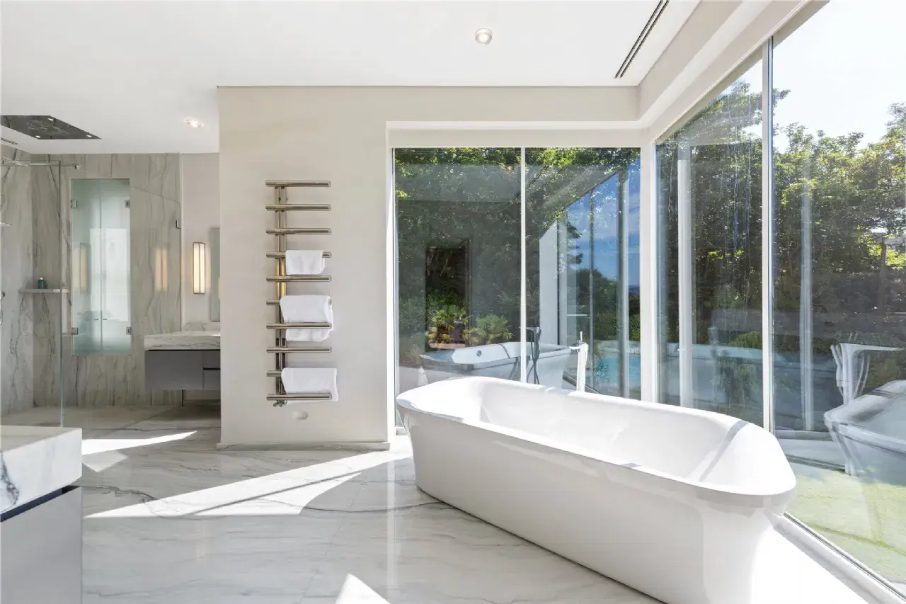 The main house extends to approximately 1,000 sq m/10,691 sq ft and consists of six reception rooms, five en suite bedrooms and a host of ancillary accommodation. The rear of the building is dominated by floor-to-ceiling windows and large glass doors which look out onto a spectacular expanse of greenery. In addition, there are approximately 2,000 square feet of terraces which are accessed from each of the three levels. The private and secluded grounds are a real feature of the property with the large infinity swimming pool providing a dramatic focal point.