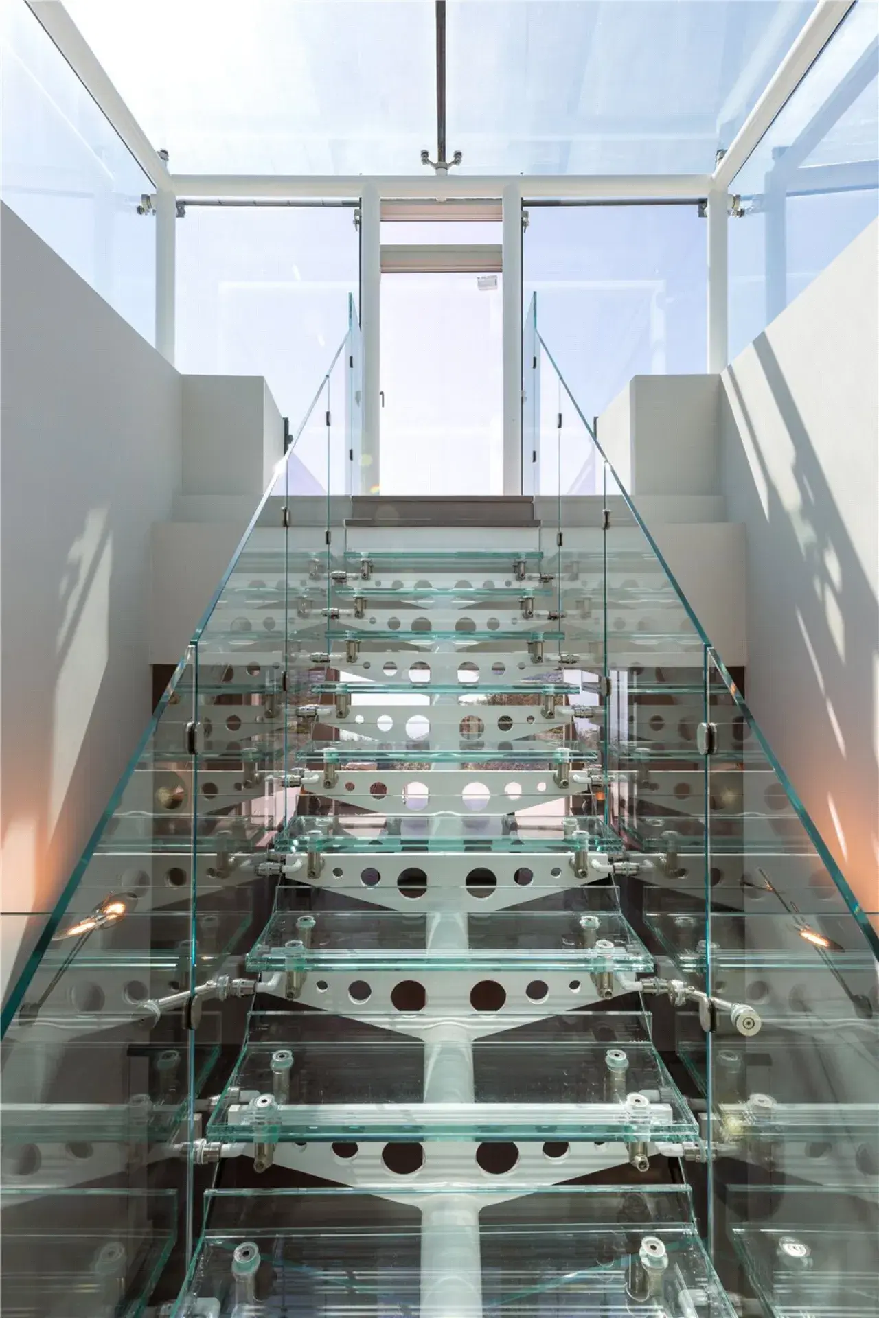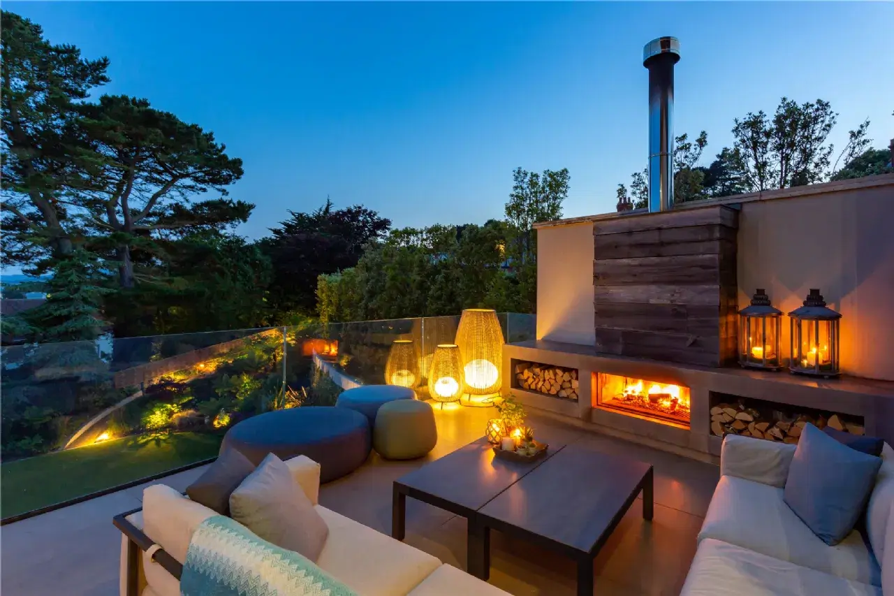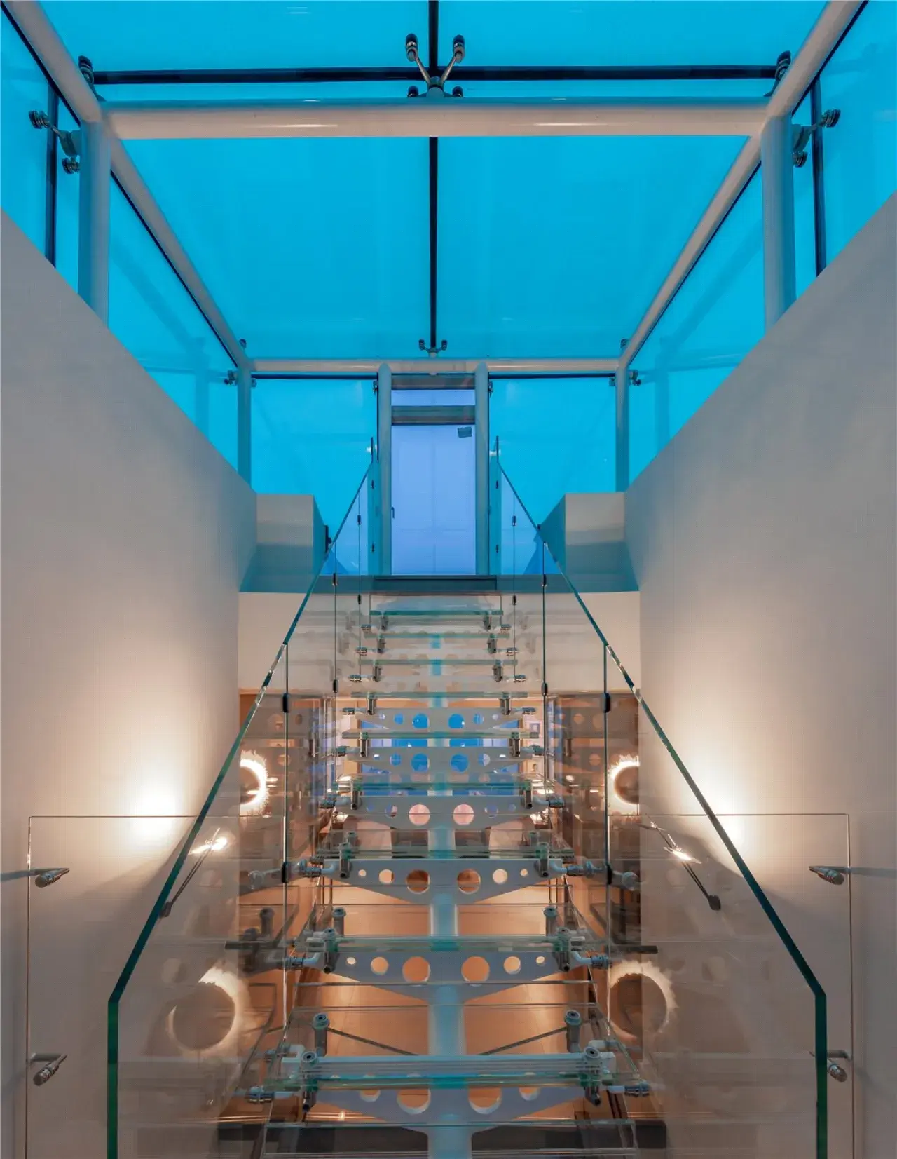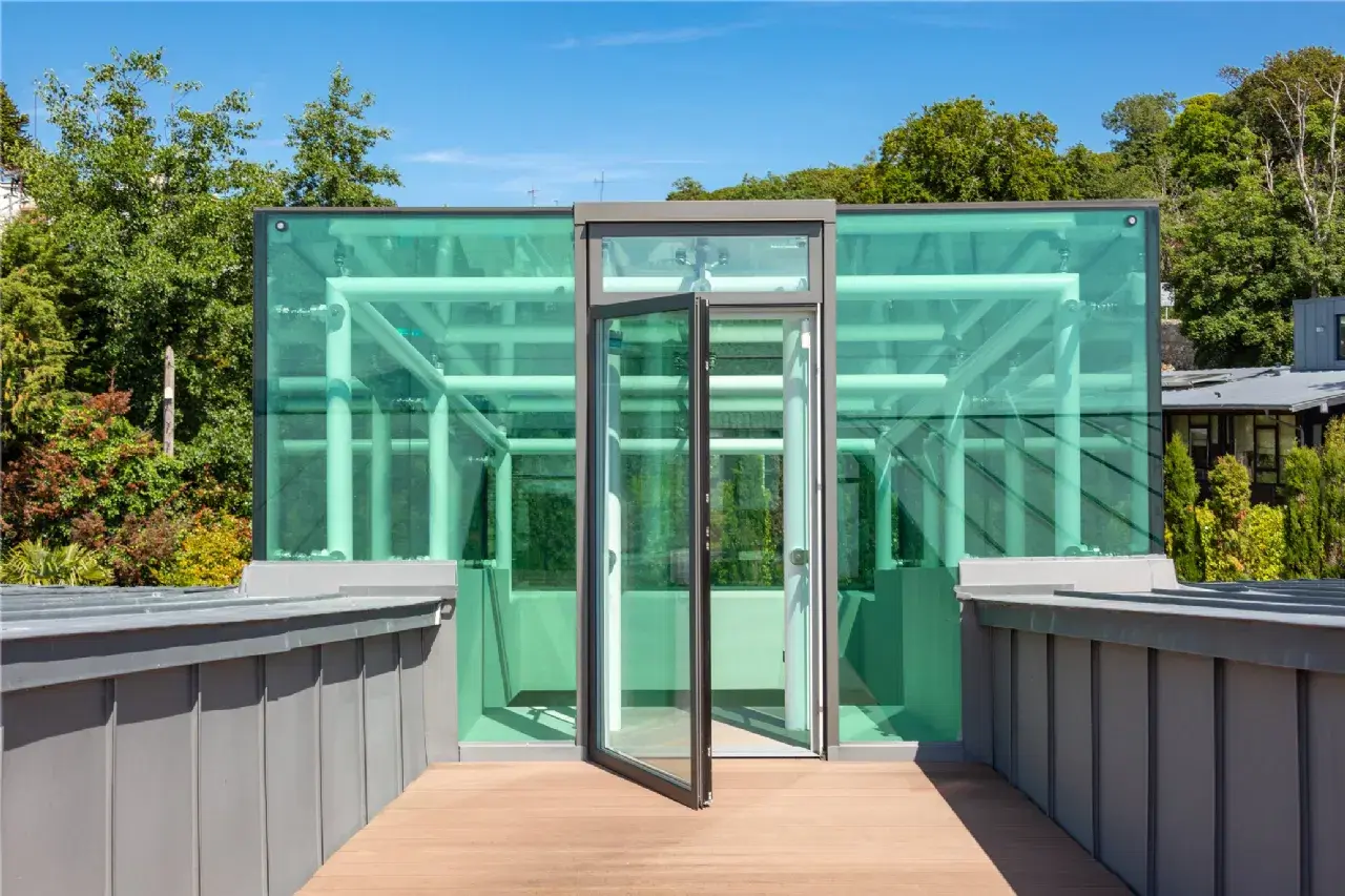 A masterpiece of light, space and views, the main building features three levels of glass-fronted accommodation and terraces, creating a living experience that marries modern design with cosy family living.