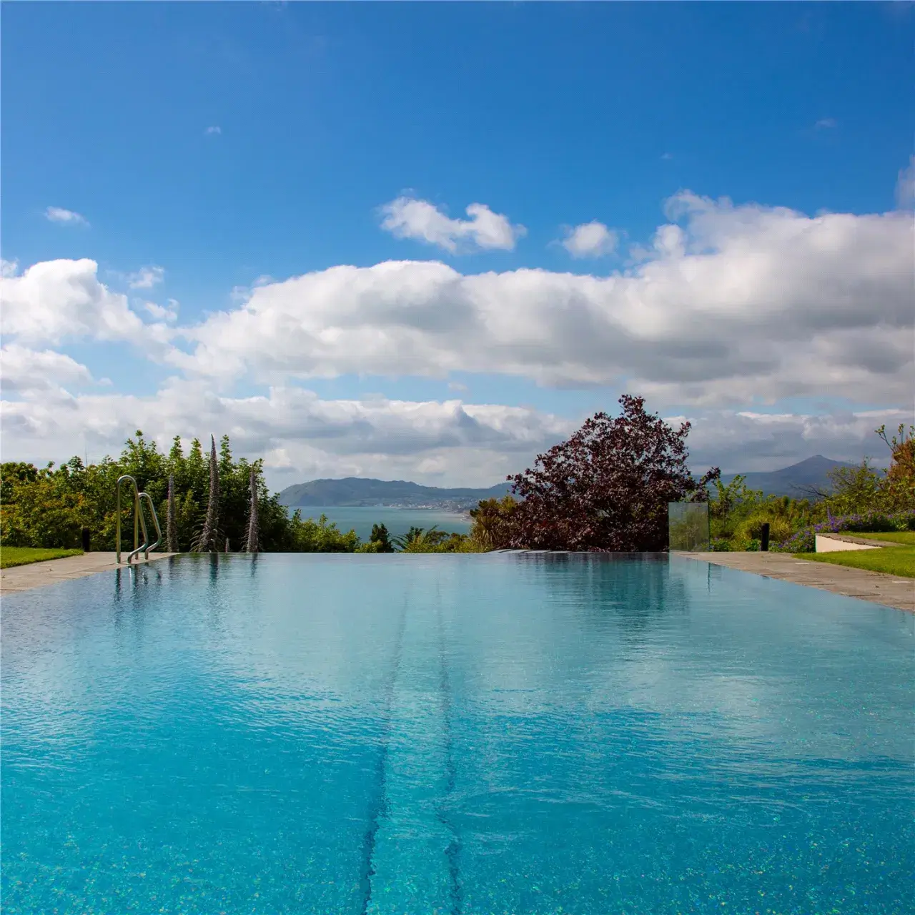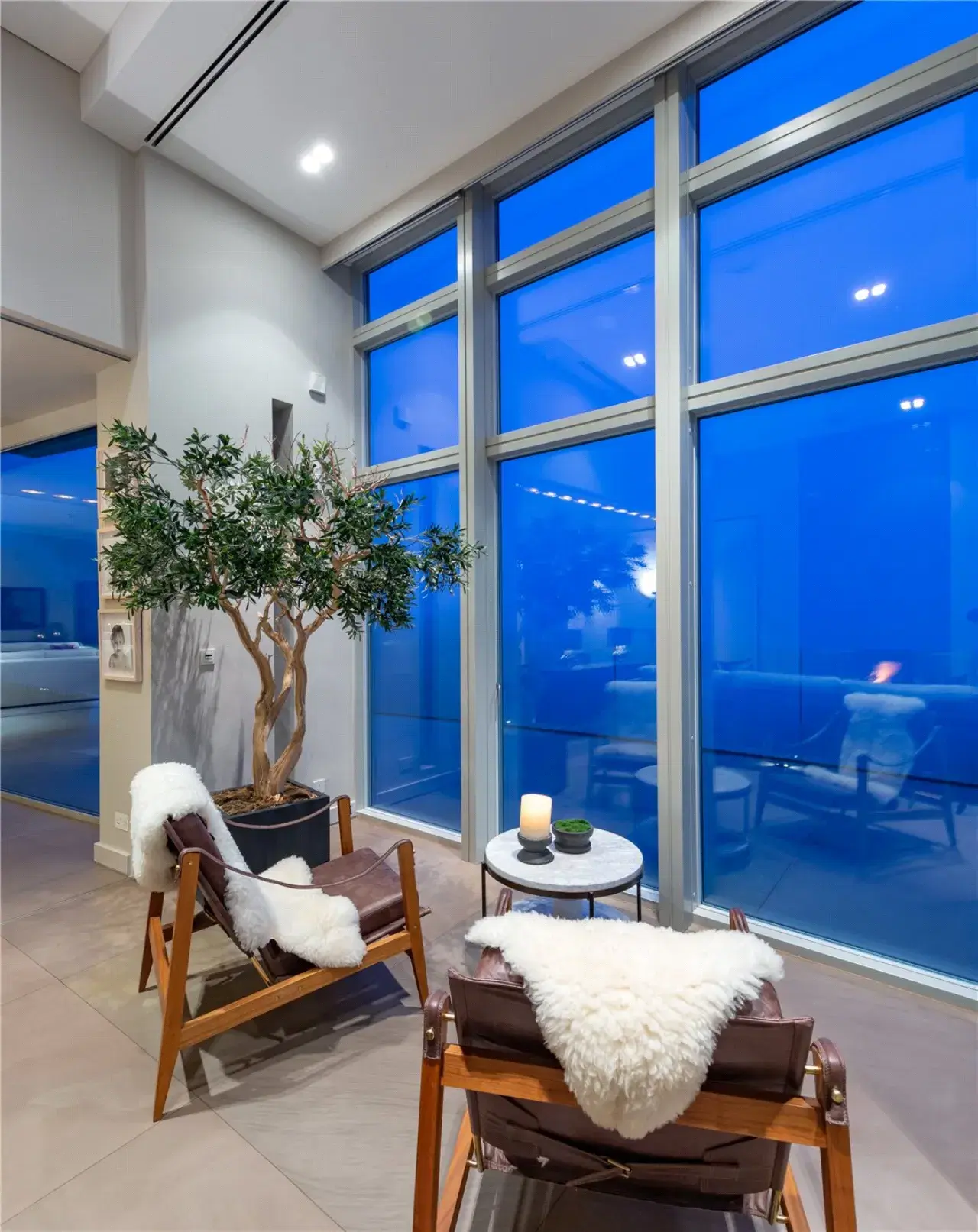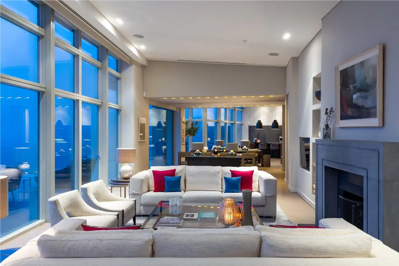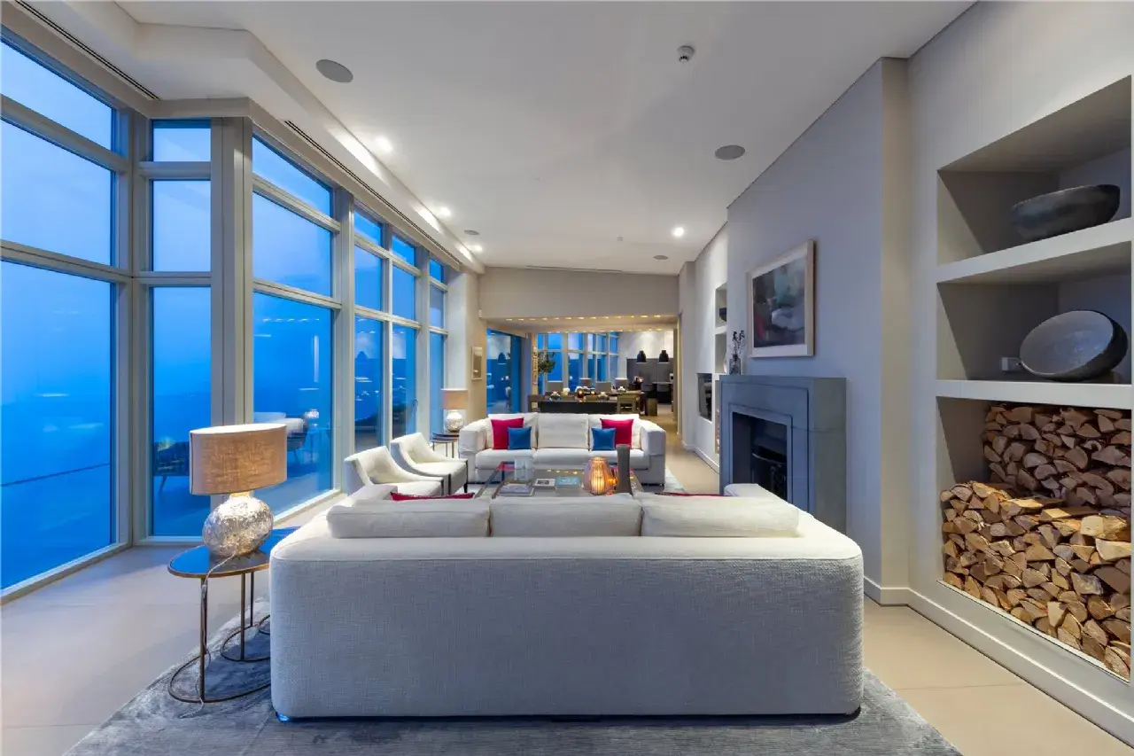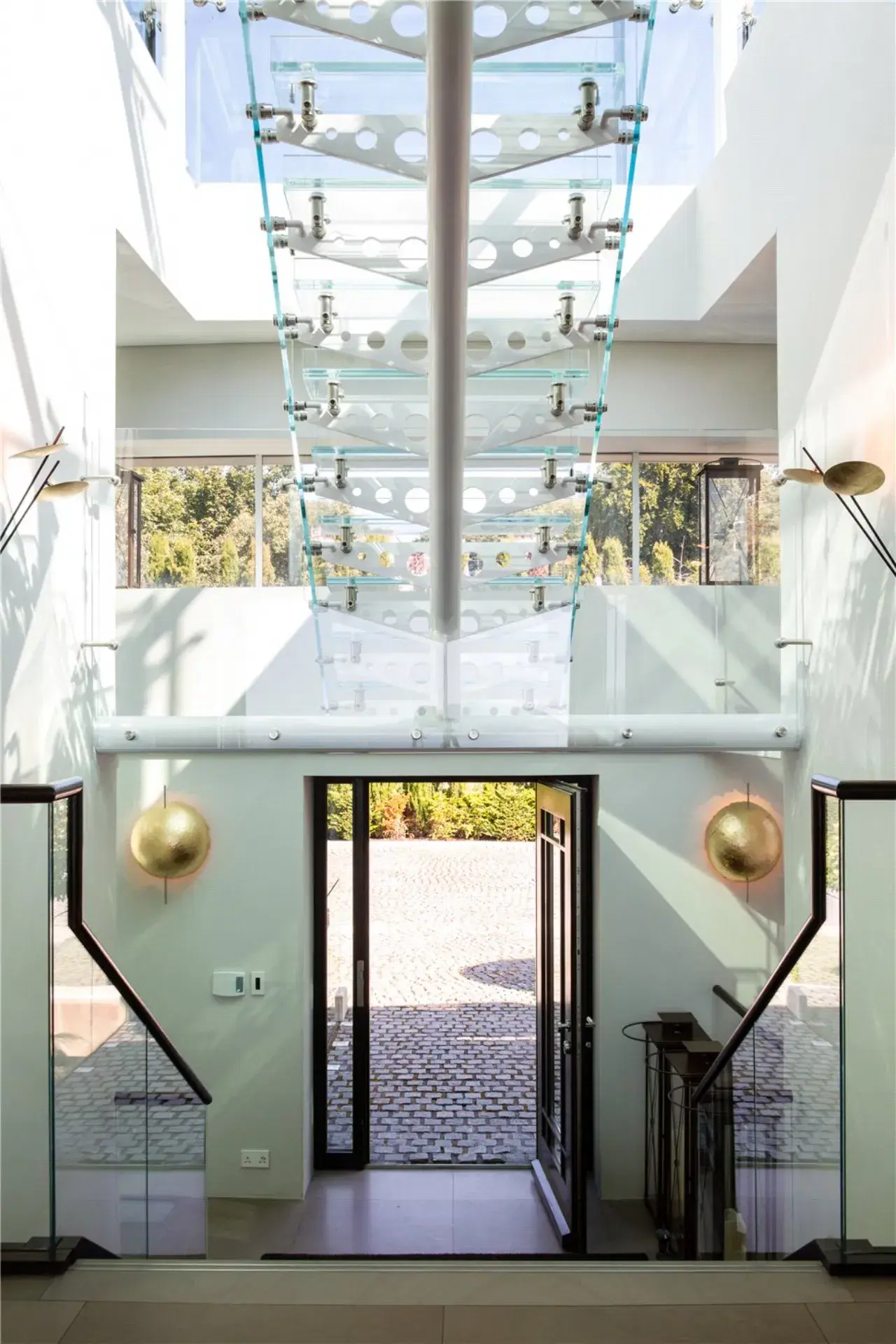 A masterpiece of light, space and views, the main building features three levels of glass-fronted accommodation and terraces, creating a living experience that marries modern design with cosy family living.