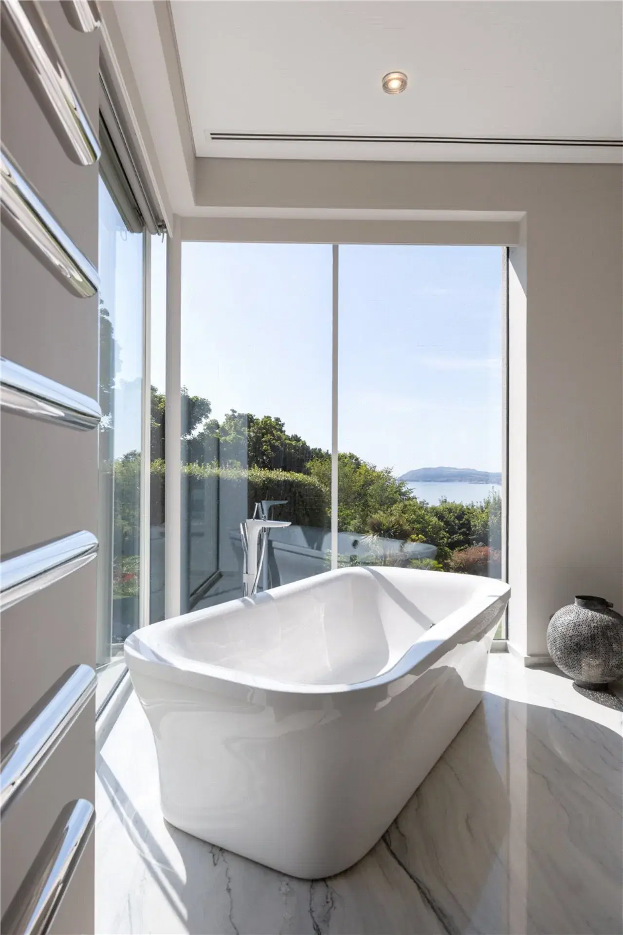 Move further along and you’ll find the main house. Perched at the top of Killiney Hill Road, the property is positioned on 1.3 acres of land and takes full advantage of the impressive panoramic views and southerly orientation. The dramatic curved design, built circa 2005 was designed by architects Conroy Crow & Kelly and has helped to maximise the property’s potential.