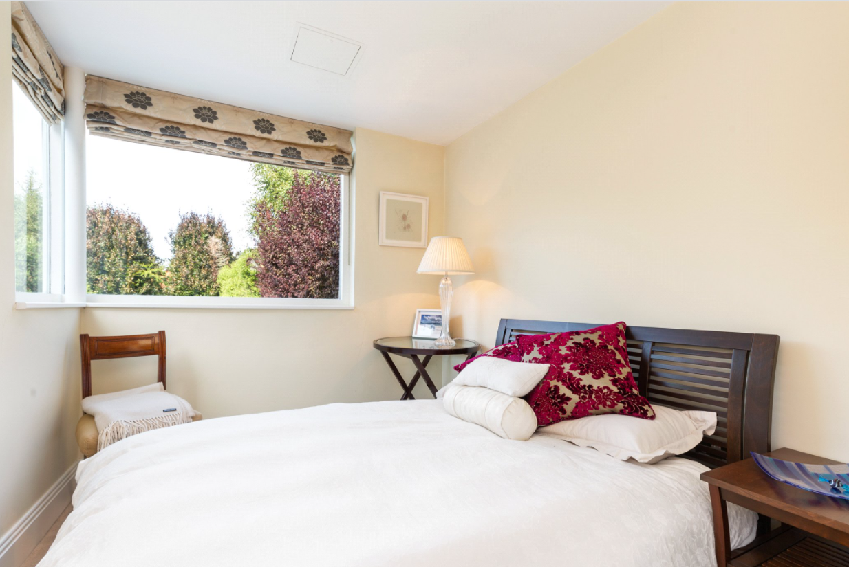 On the first floor are the three remaining bedrooms and the family bathroom. With a vaulted ceiling, a large picture window overlooking the garden, step-in double shower, underfloor heating and a large freestanding bath, it’s a particularly luxurious space.