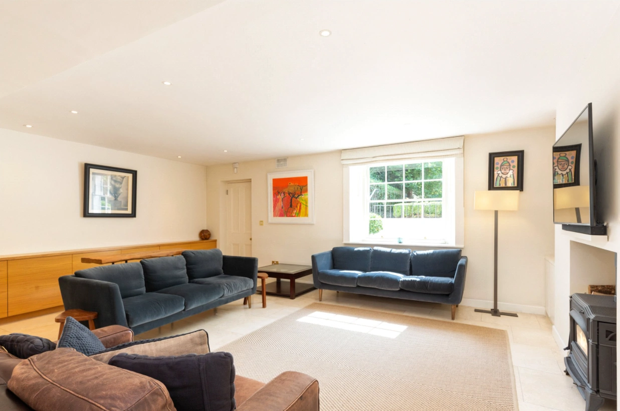 On the garden level is the open-plan kitchen, living and breakfast room, a modern space with underfloor heating and plenty of built-in storage.