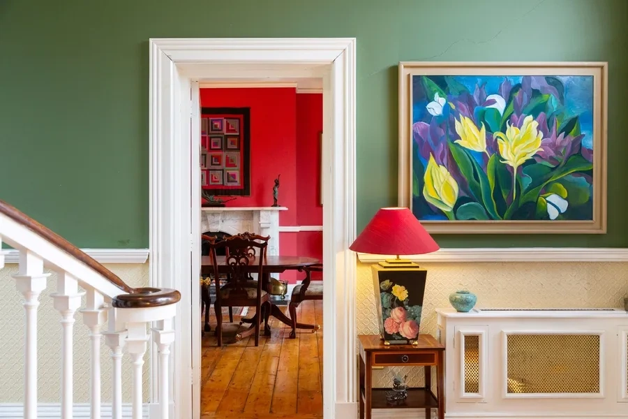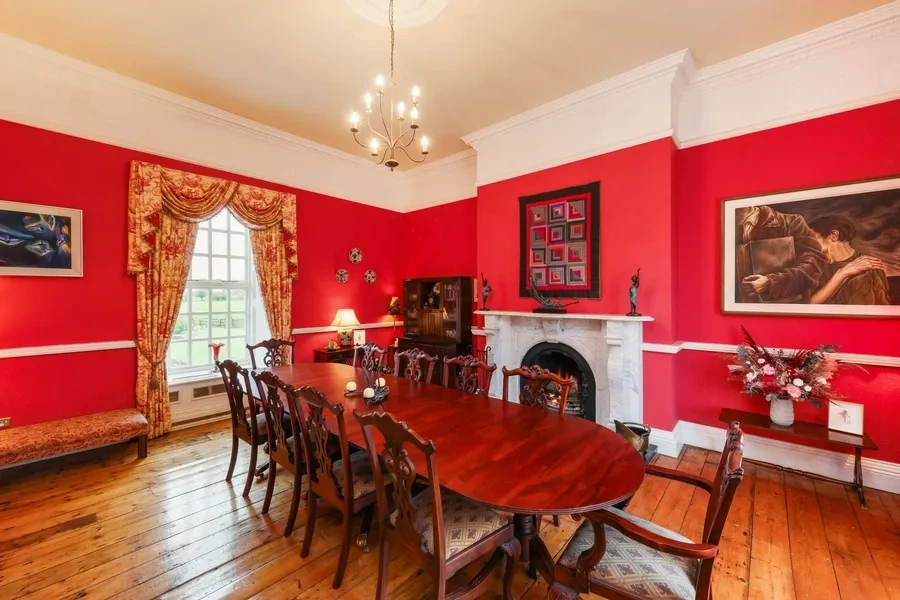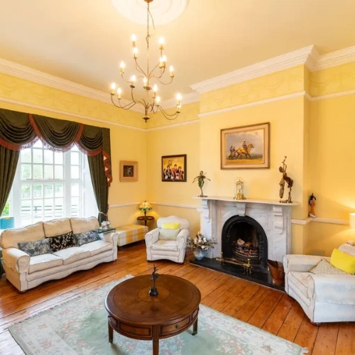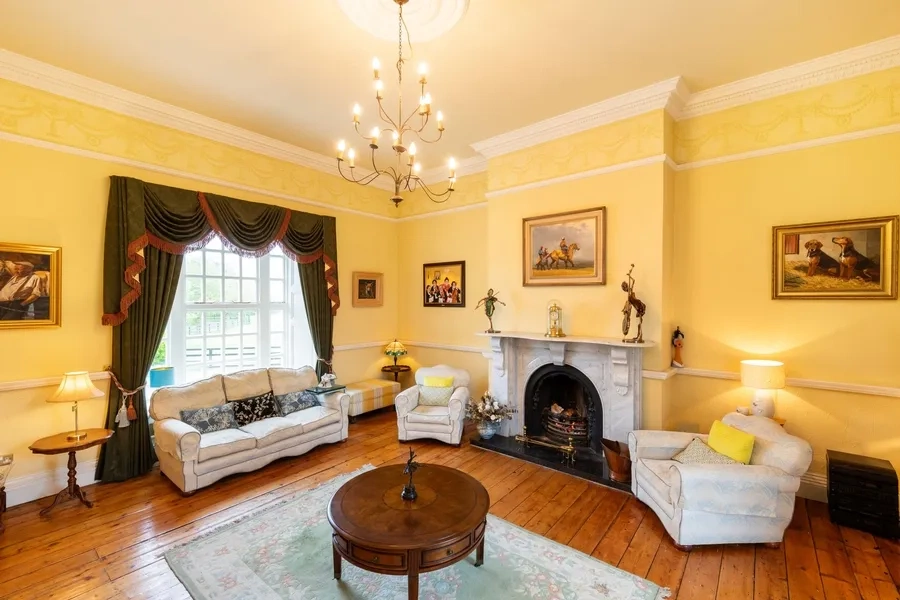 A magical period home with buckets of charm, Eadestown House is a four-bedroom, three-bathroom home in Co. Kildare. The sale also includes an independent three-bedroom lodge house in the stable yard with its own access.