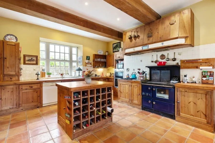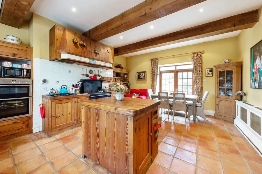The kitchen/breakfast room is located at the garden level, set at the heart of the residence. Double doors lead out to the light-filled patio area, the perfect space for whiling away long summer evenings.