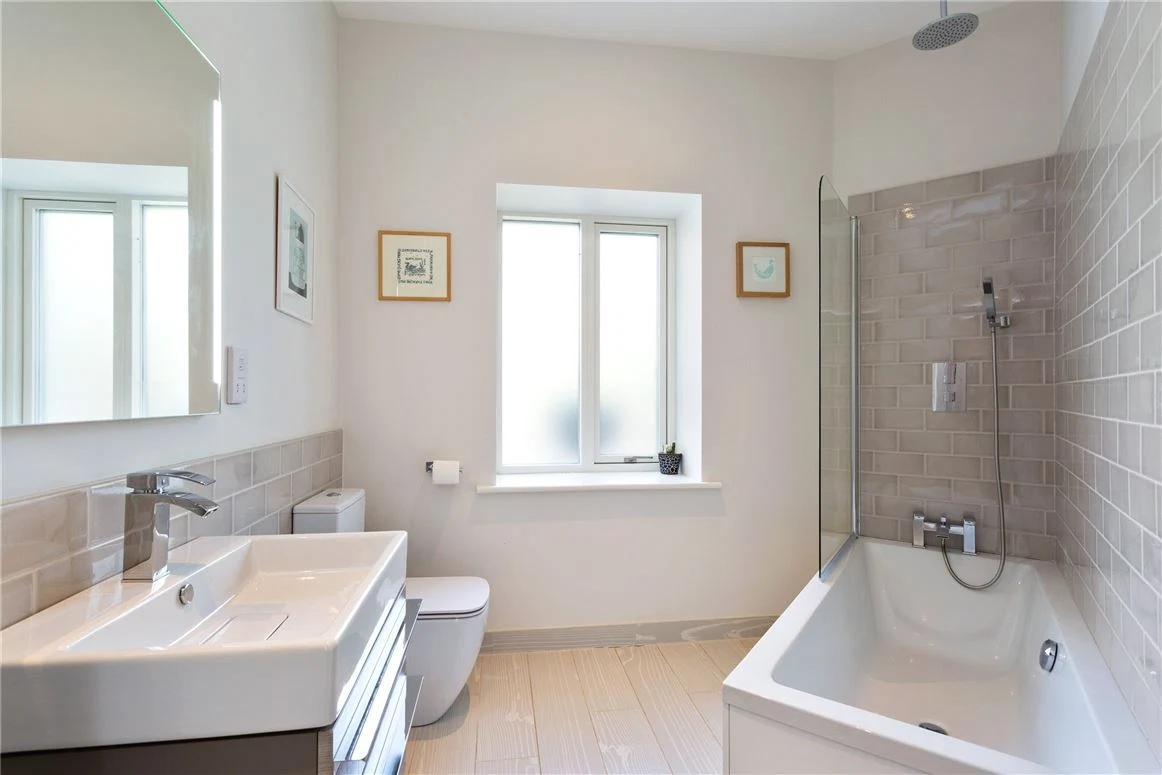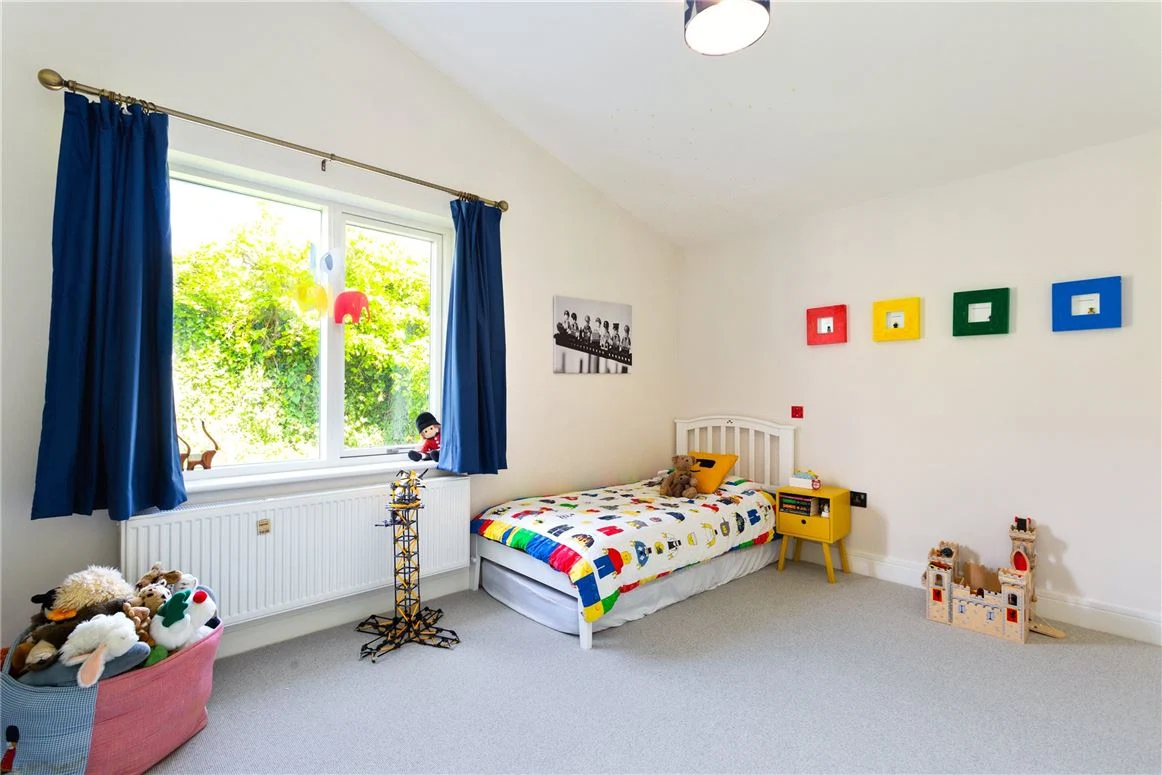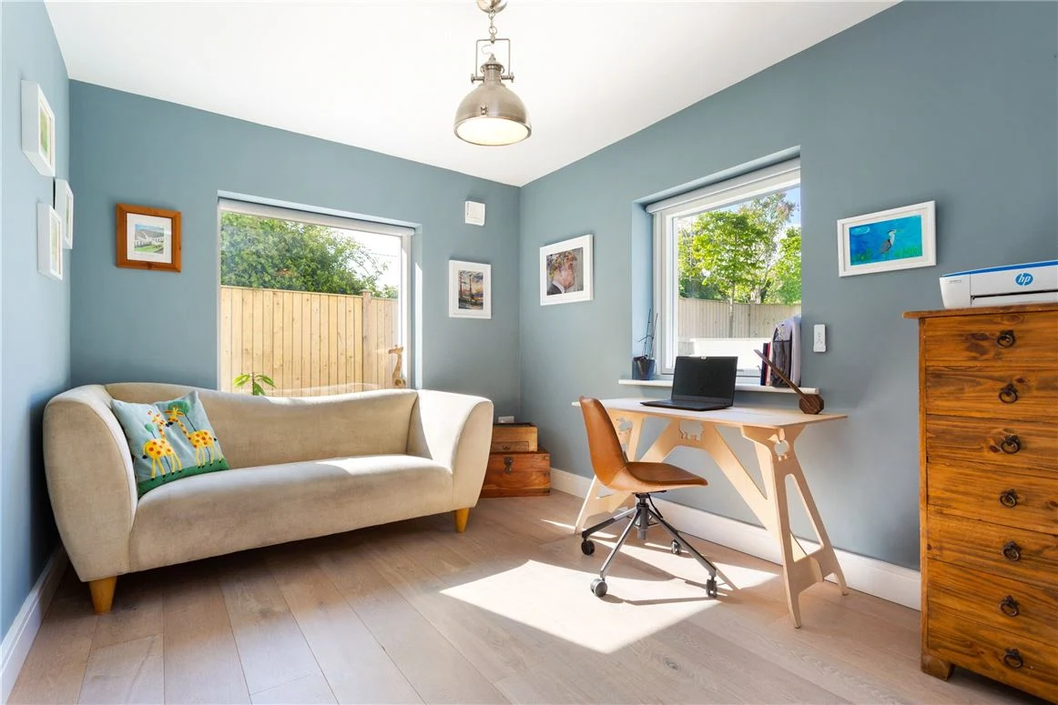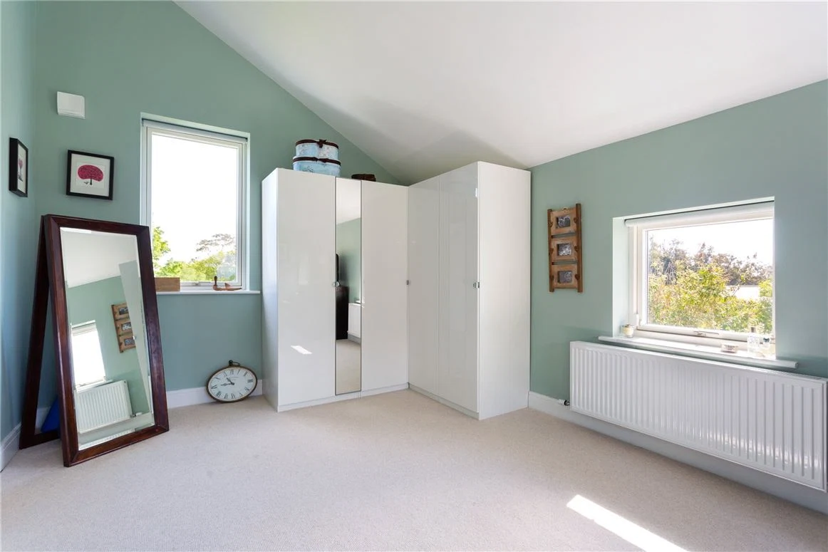 Also on the ground floor are a TV room with custom built shelving which allows for wires and devices to be hidden. A large utility room, fitted with a laundry chute, has plenty of space for a washer, dryer and there is also shelving for ironing. A boot room provides additional storage, while there is also a study and one of the four bedrooms on this level.