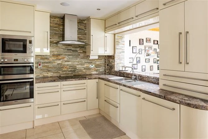 Stylishly extended with modern features and decor, the spacious accommodation extends to 184.3 sq.m. (including attic) and comprises an entrance hall, living room, kitchen-cum-dining room, sun room, second living room with kitchen, fully tiled wet room, four bedrooms and main family bathroom.